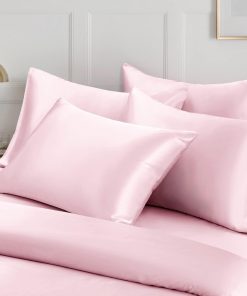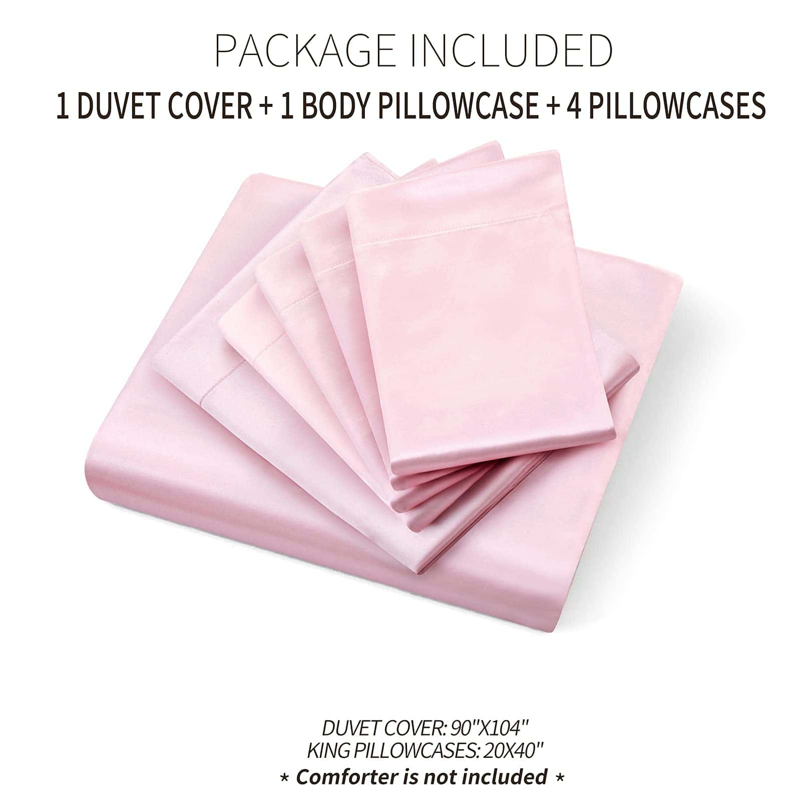Ersmak te trae este exquisito conjunto de funda de edredón de satén en tamaño King. El juego incluye una funda de edredón de 90″x104″, 4 fundas de almohada King de 20×40″ y una funda de almohada de cuerpo de 20″x54″ para proporcionarle una experiencia de dormir de lujo. La funda de edredón de satén está diseñada para ser suave y cómoda, además de ser transpirable y resistente a las arrugas. Con una apertura y cierre de cremallera oculta, esta funda de edredón mantendrá su edredón en su lugar y sin que el polvo entre. Los lazos en las esquinas y los lados medios aseguran que el edredón se mantenga fijo en su posición.