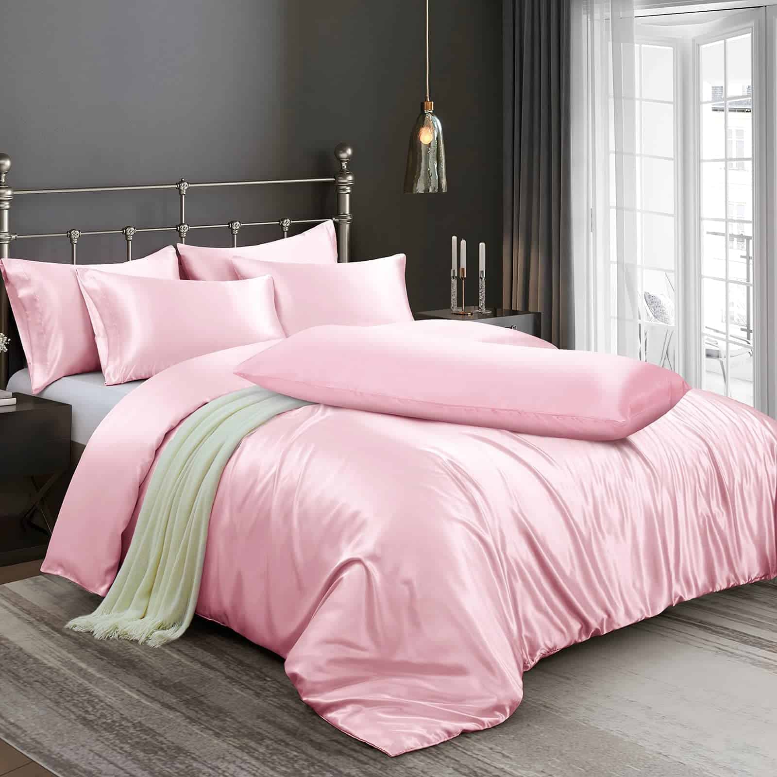 La lujosa tela de satén está hecha de 100% fibra de poliéster, que es suave y amigable con la piel, brindándole una sensación de seguridad al dormir. La ligereza de la funda de edredón le dará la sensación de estar envuelto en un tul que le permitirá dormir tranquilamente, incluso si decide dormir sin ropa. El juego incluye una funda de almohada de cuerpo para mantener la posición de sueño que prefiera, lo que le permitirá caer rápidamente dormido en una posición cómoda.