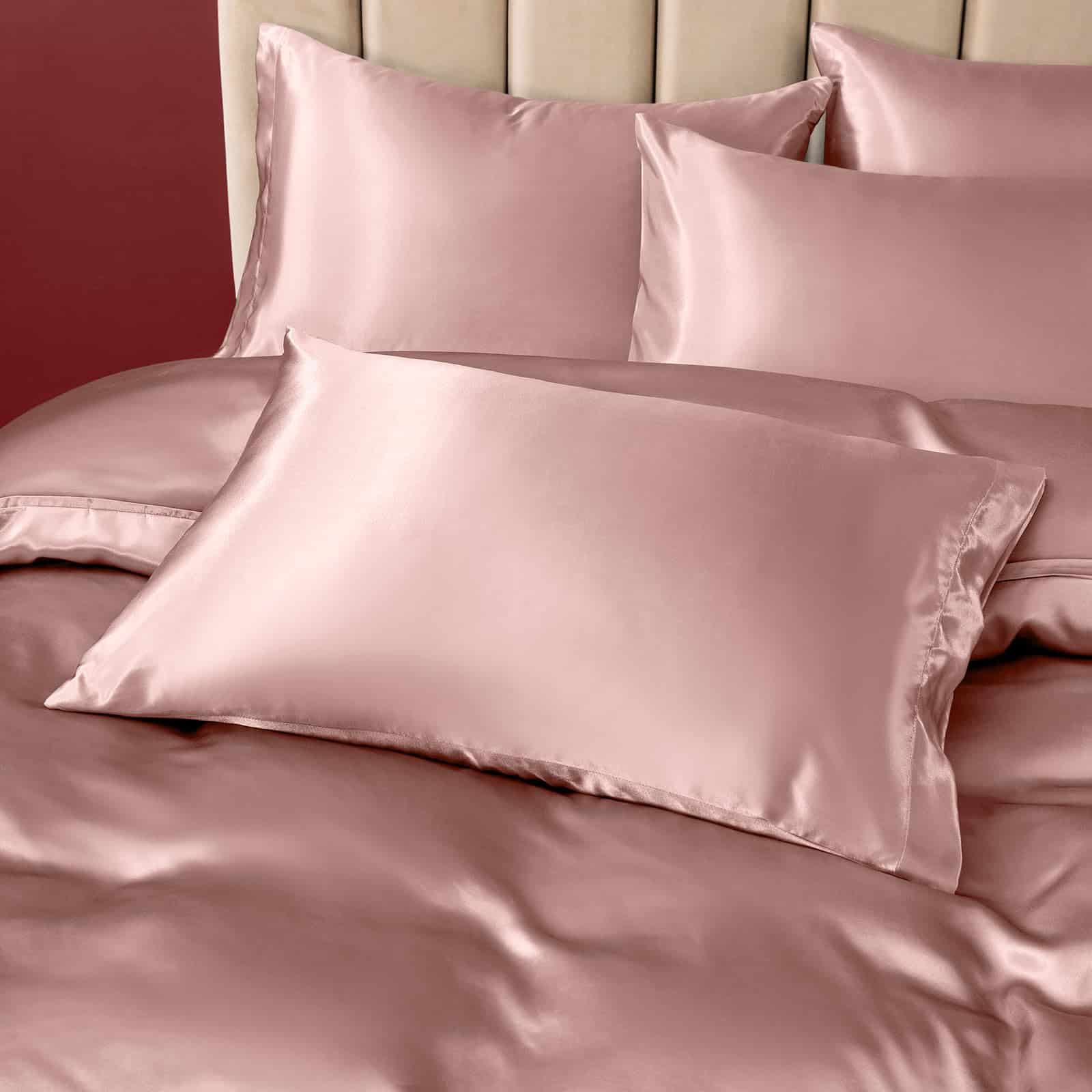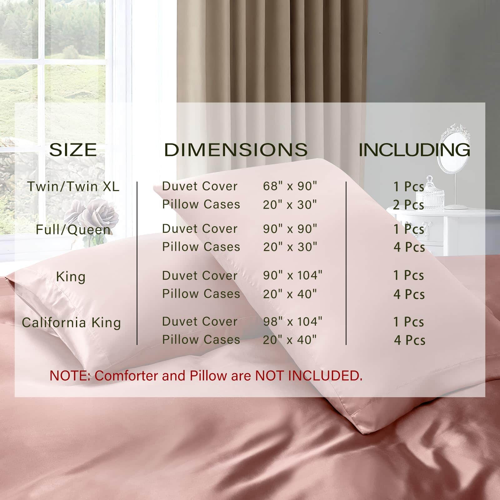 4 x Fundas de almohada (20″ x 40″), 1 x Funda de Edredón de Satín (90″ x 104″)