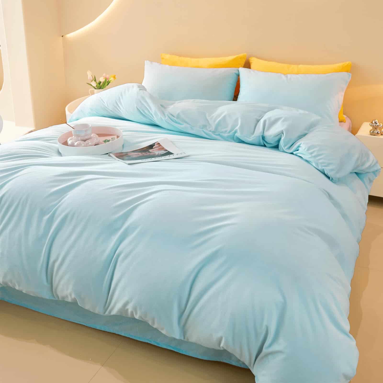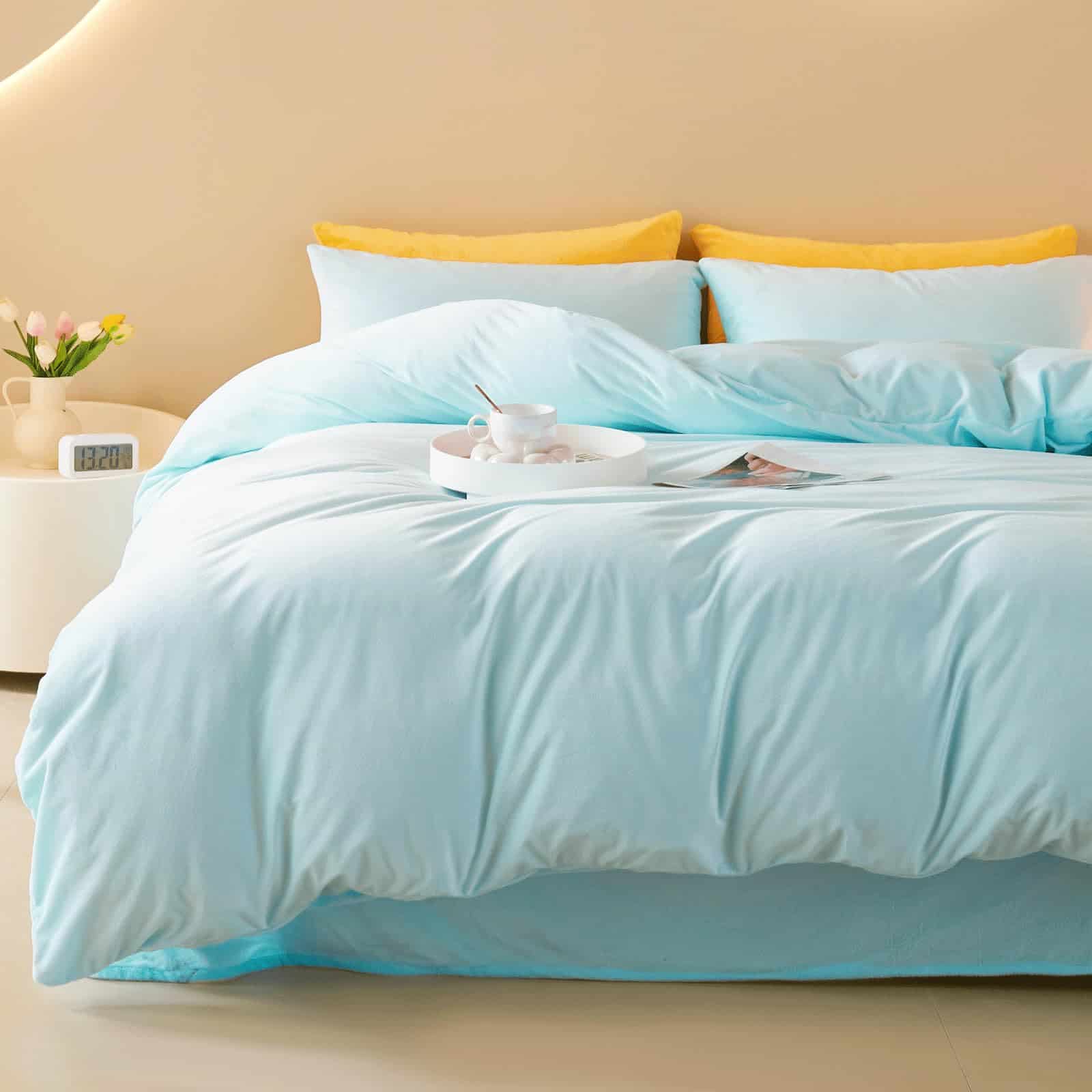 Juego de Funda de Edredón de Terciopelo Azul FOPPA Queen –