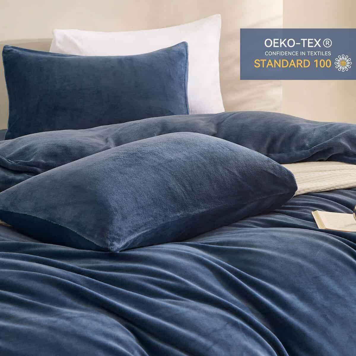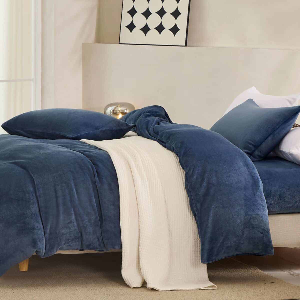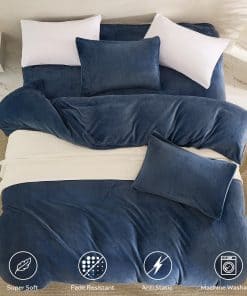 Juego de Funda de Edredón de Terciopelo Azul Jellymoni
