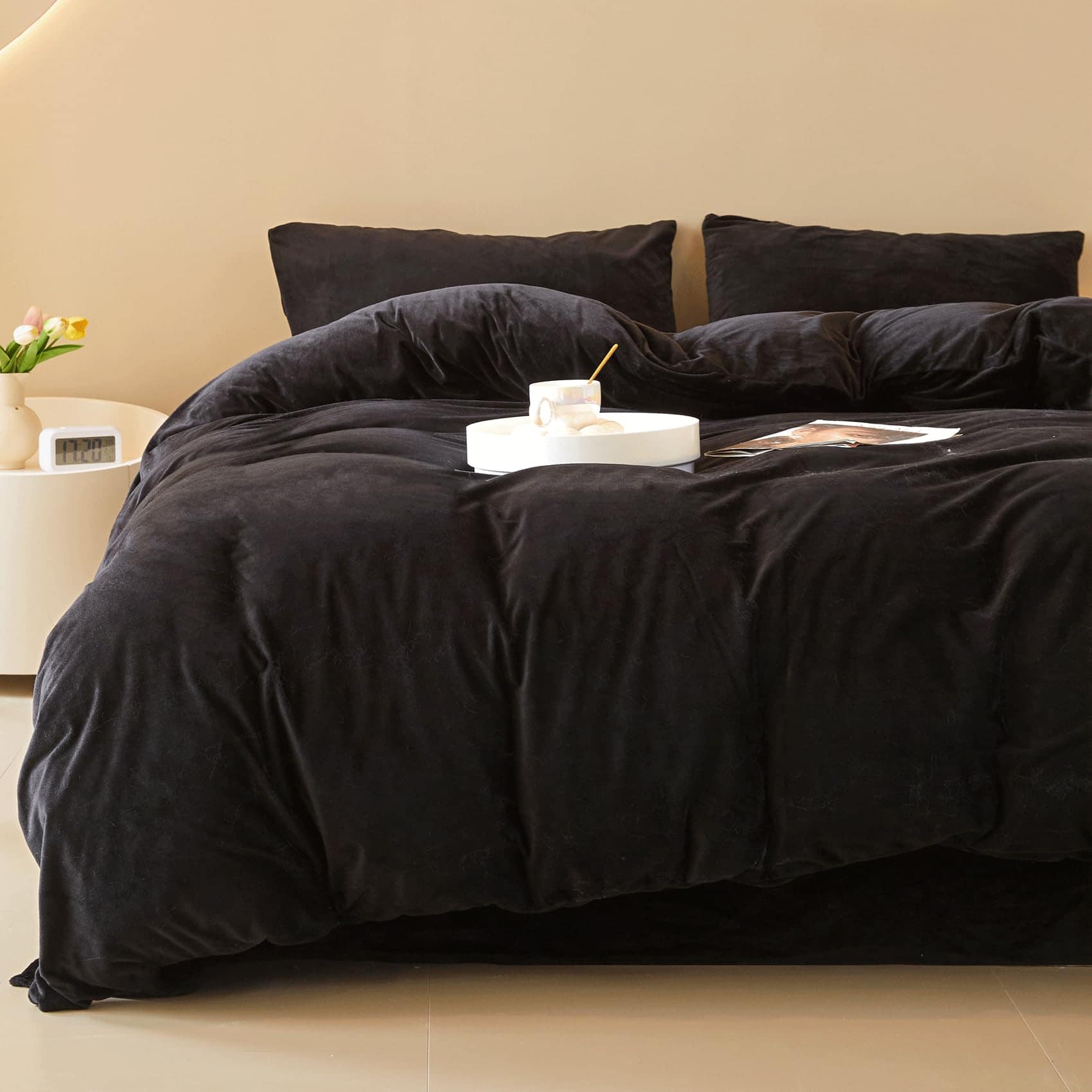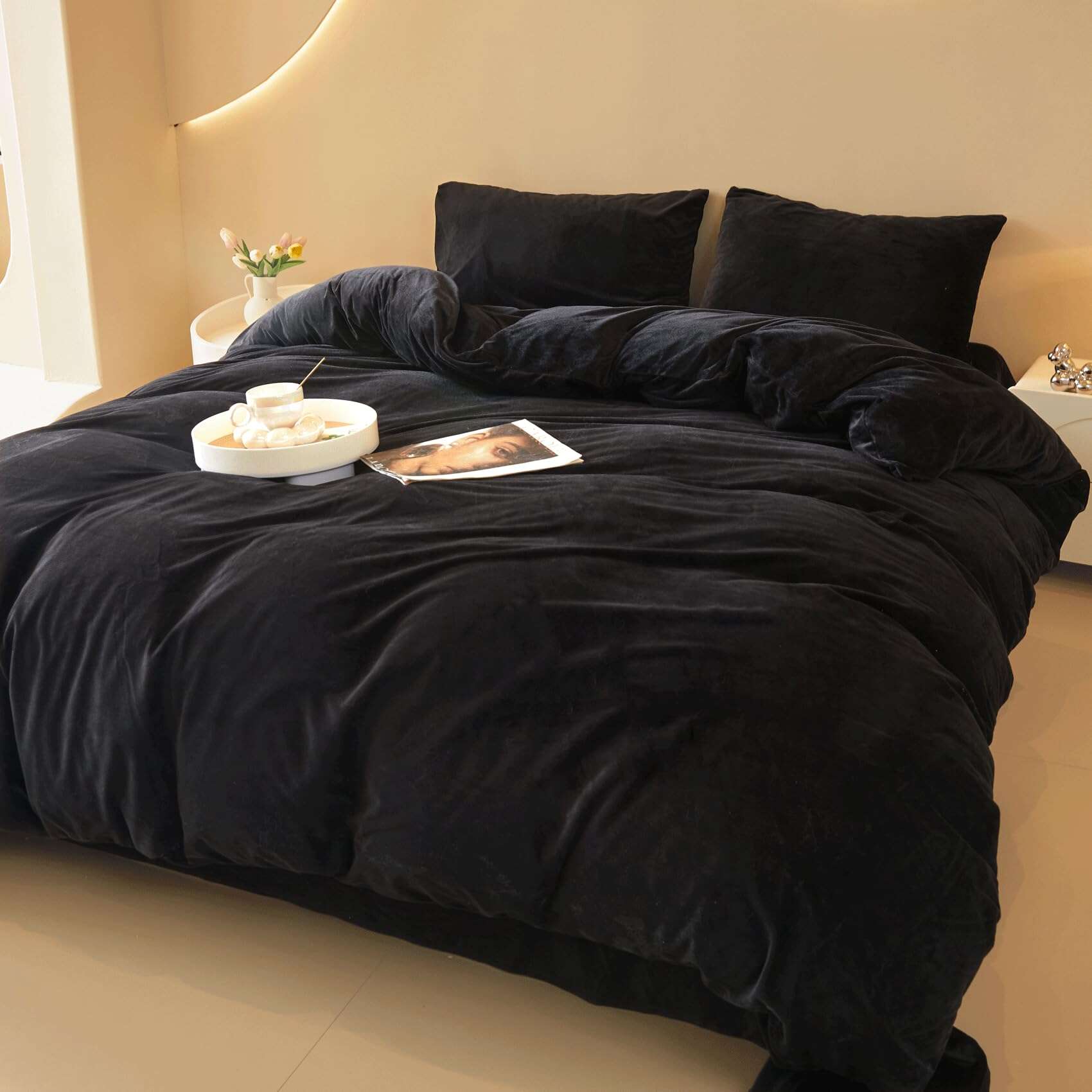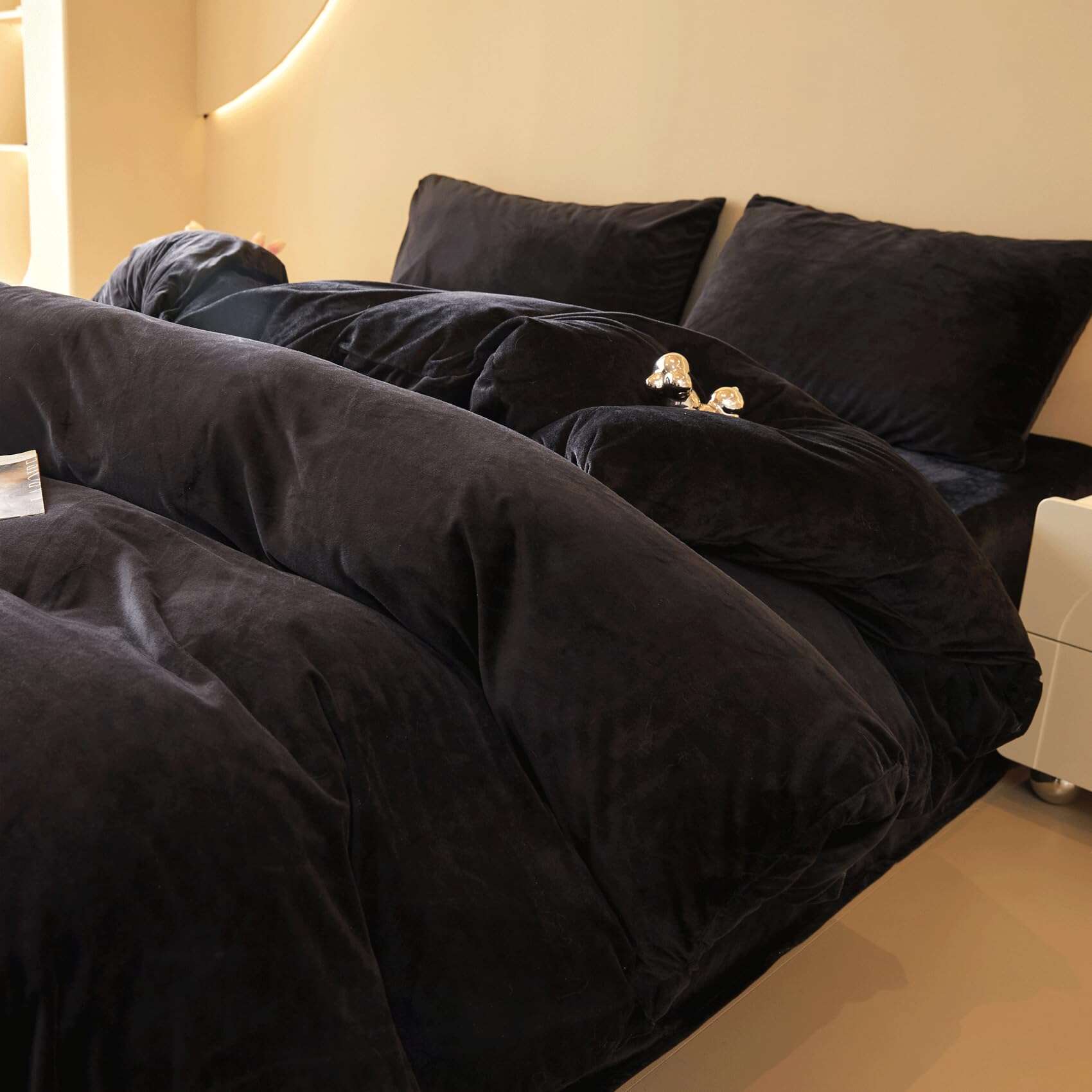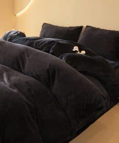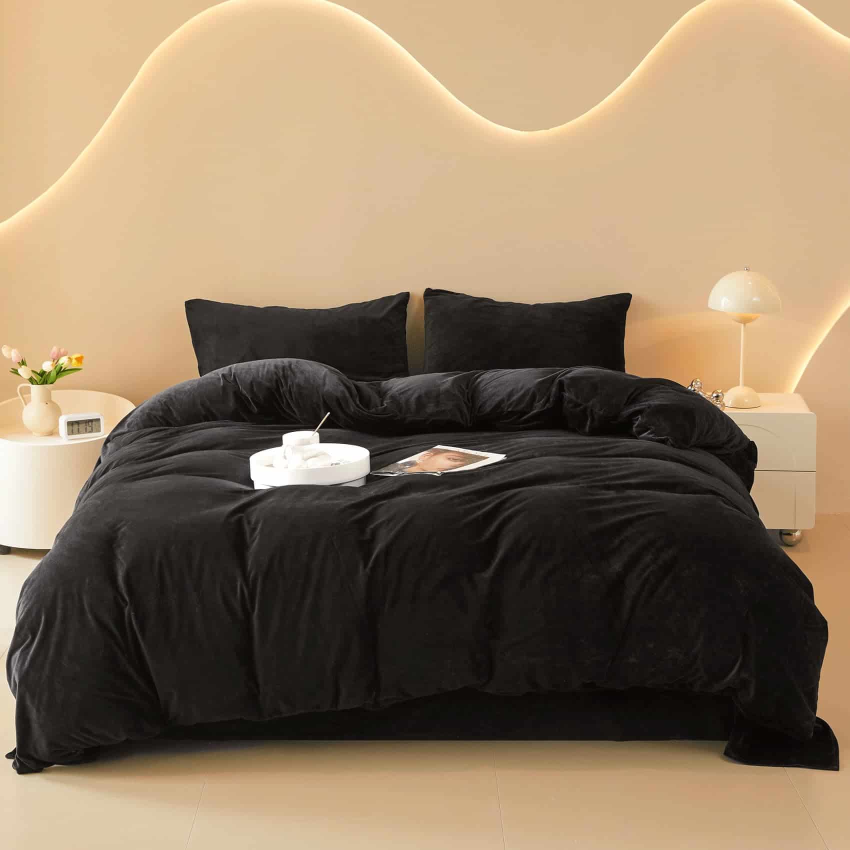 Juego de Funda de Edredón de Terciopelo Negro FOPPA Queen –