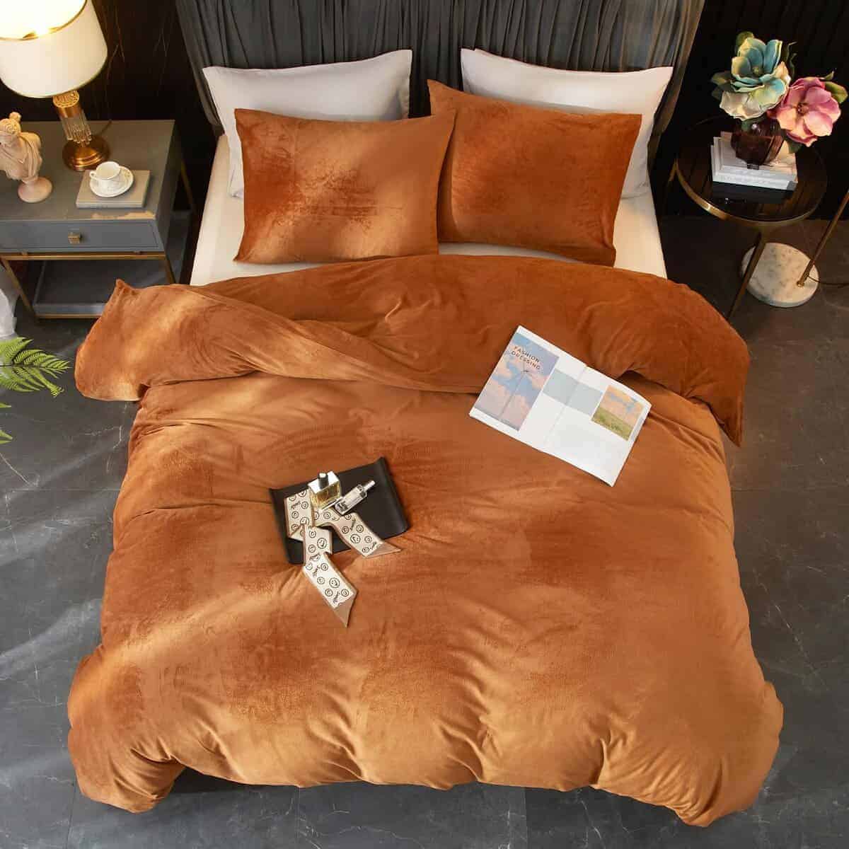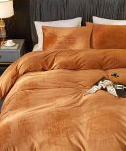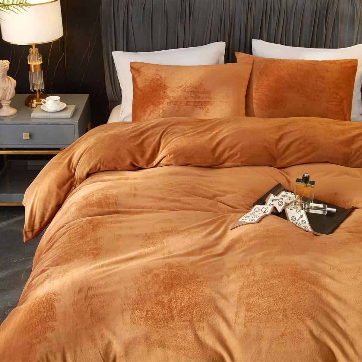 Juego de Funda de Edredón de Terciopelo Queen Naranja