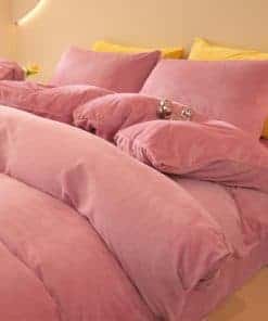 Juego de Funda de Edredón de Terciopelo Rosa Viejo FOPPA
