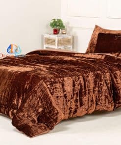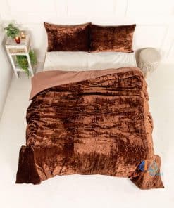 Juego de Funda de Edredón de Terciopelo Triturado -Marrón