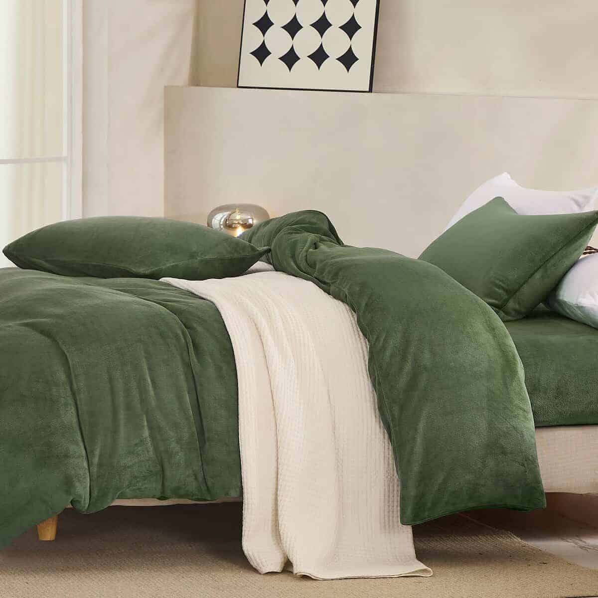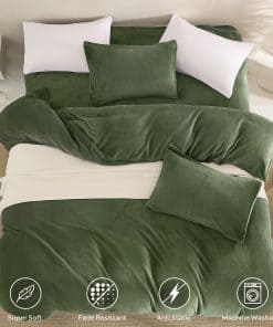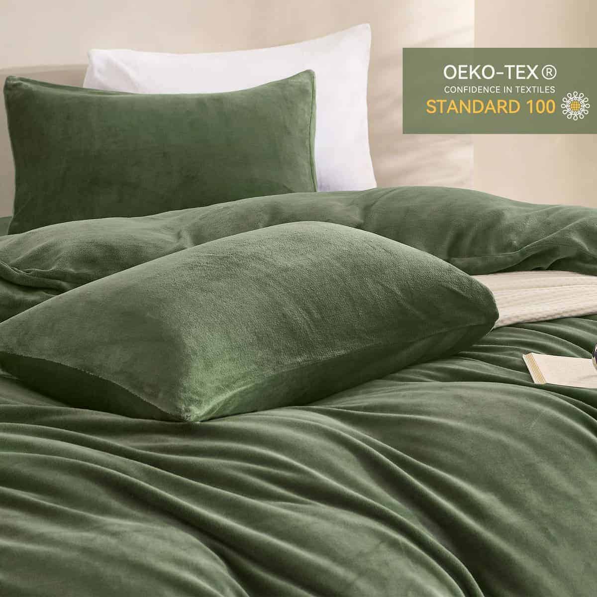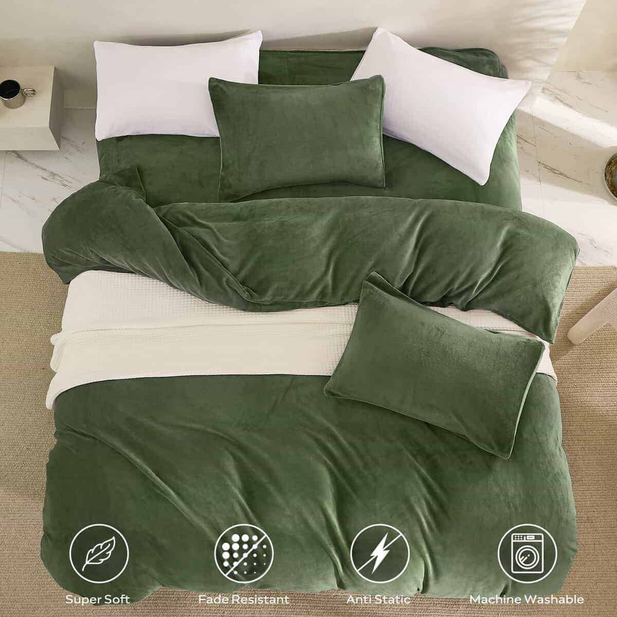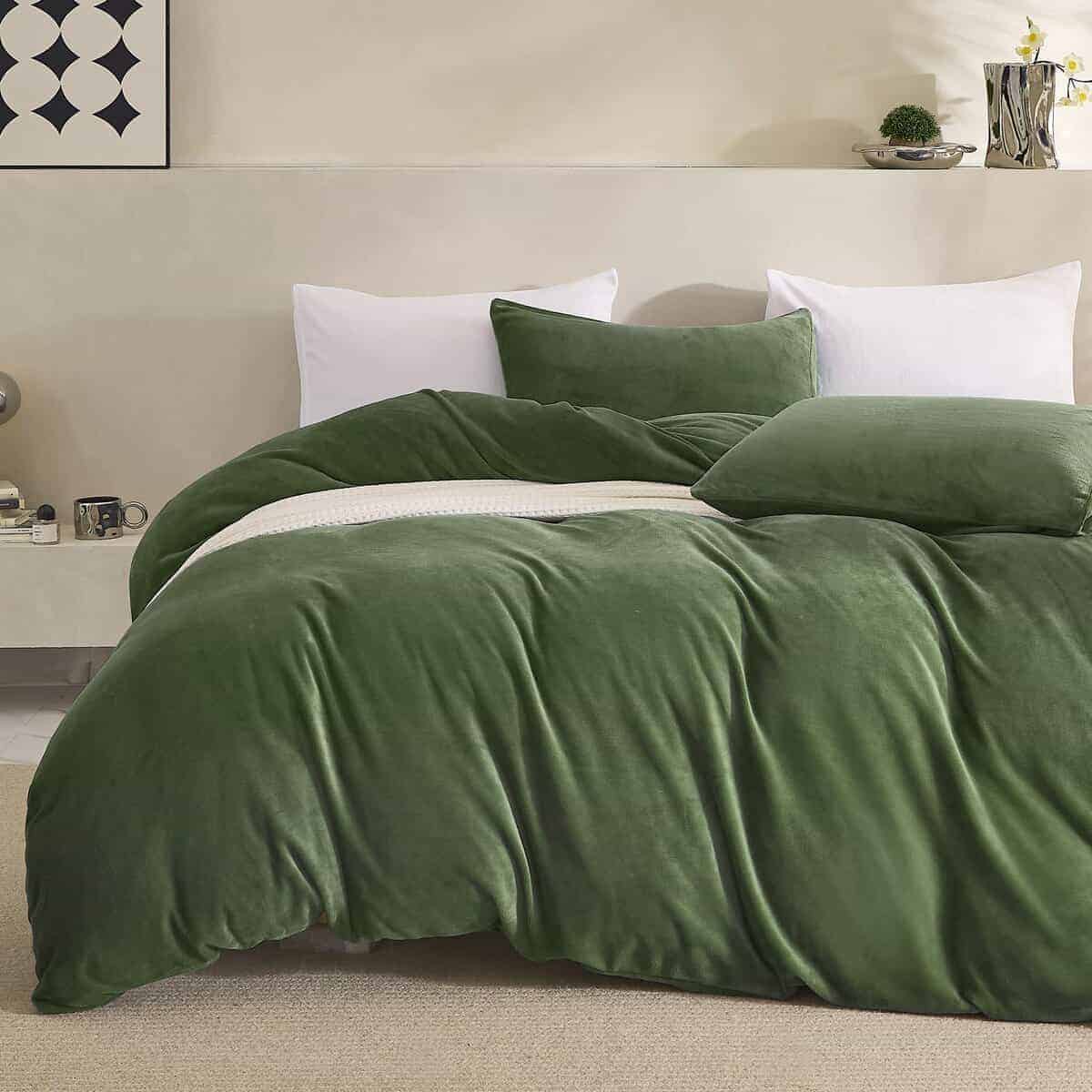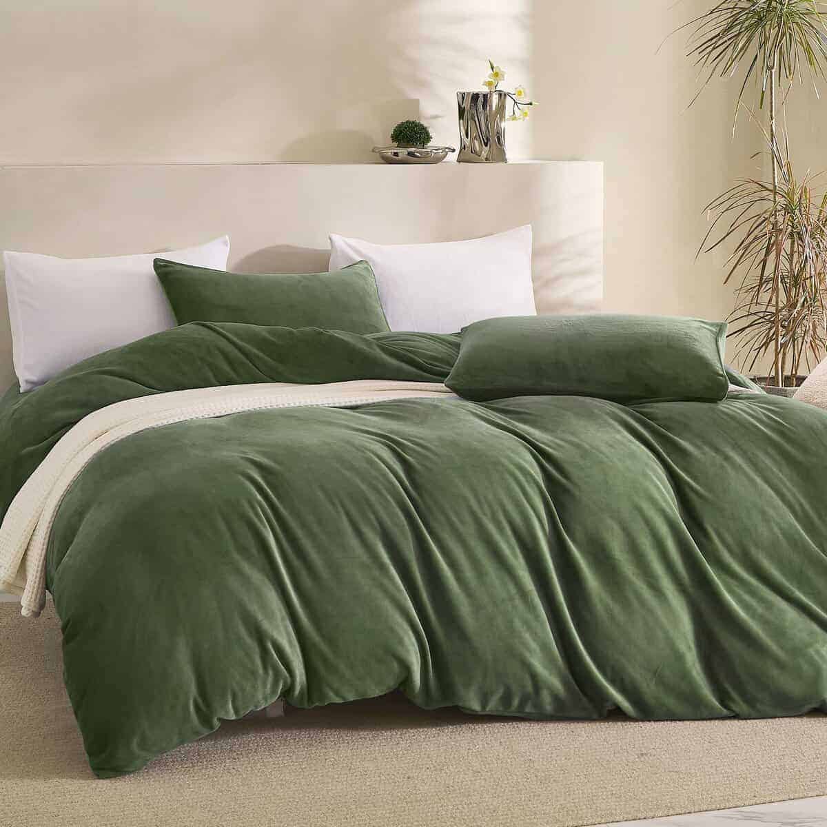 Juego de Funda de Edredón de Terciopelo -Verde Oliva