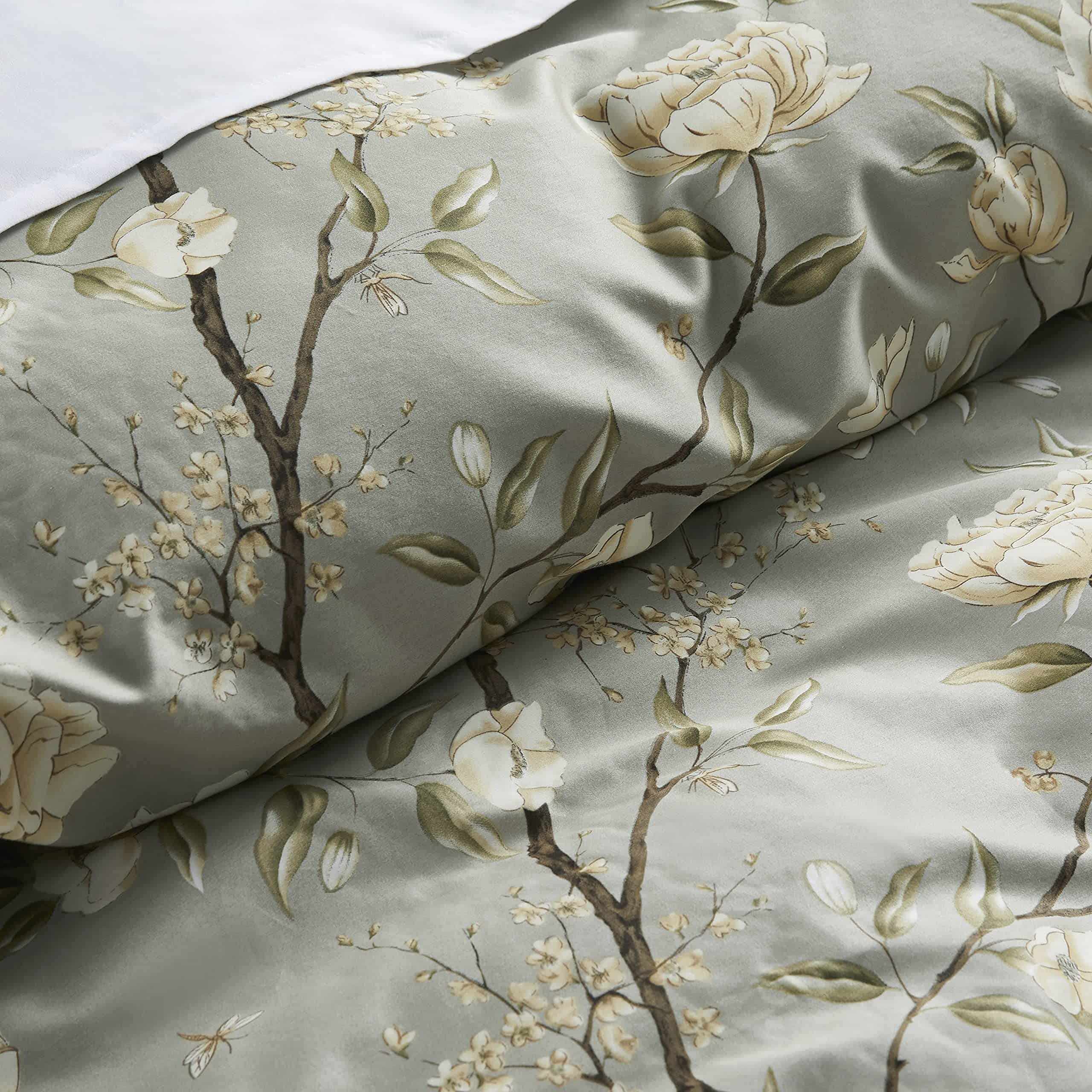 Juego de Funda de Edredón Floral inspirado en el arte chinoiserie de Eikei. Elegante estampado de flores en paletas multicolores apagadas. Una interpretación romántica de motivos orientales tradicionales, el Chinoiserie (en francés «Chinese-esque») es un estilo artístico nacido en Europa tan cautivador hoy como cuando fue introducido a finales del siglo XVII. Juego de Funda de Edredón en tamaños Super King, King, Full/Queen o Twin, generosamente dimensionados para adaptarse a los tamaños de edredón/insertos estadounidenses, incluye 1 funda de edredón y 2 fundas de almohada (1 funda de almohada para tamaño Twin) con borde de cenefa y apertura tipo francés. Funda de edredón con 4 lazos en las esquinas interiores y cierre de botón para mantener tu edredón en su lugar. Lavable en máquina. Regalo perfecto para bodas, cumpleaños, aniversarios y fiestas. Por favor, ten en cuenta que el edredón/inserto no está incluido.