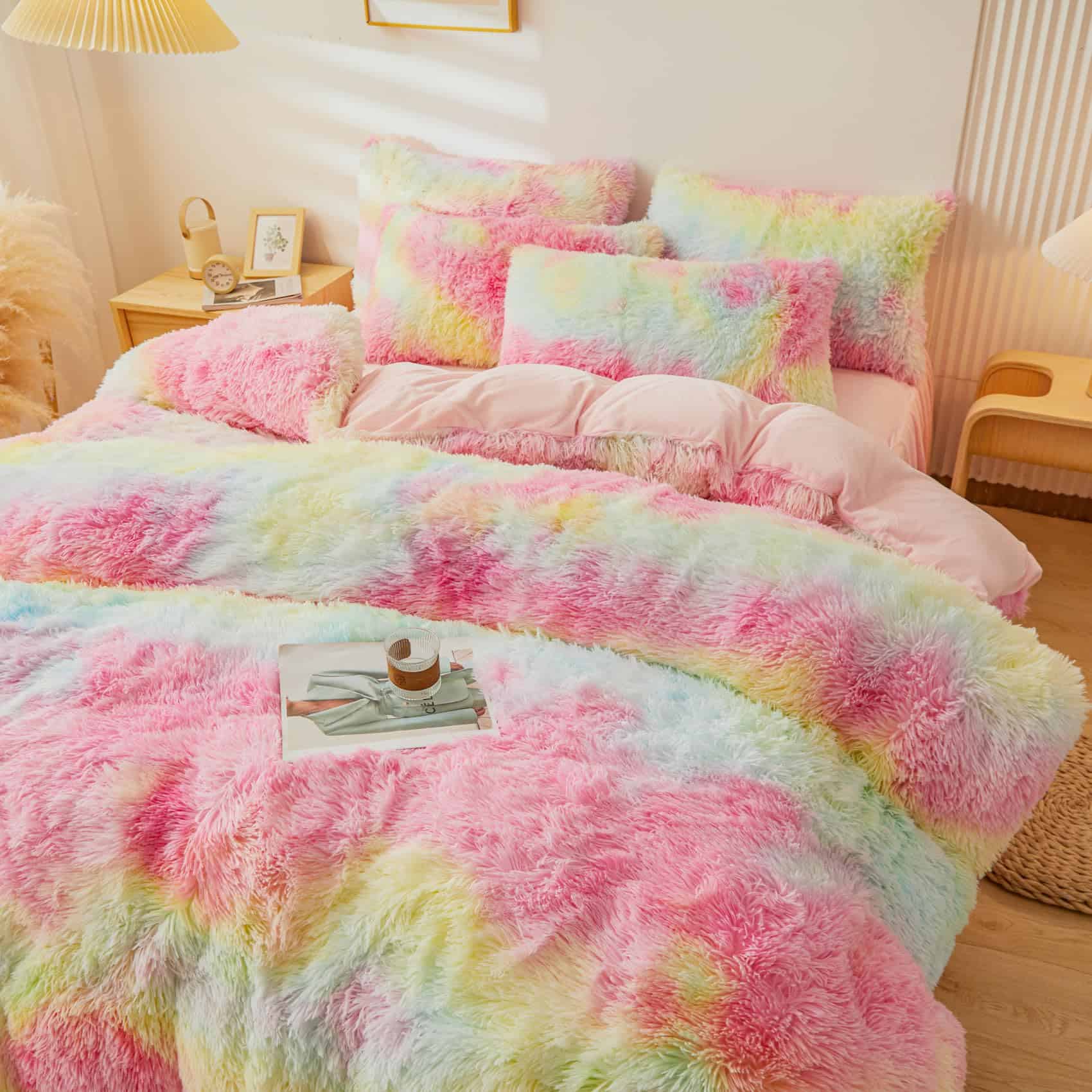 Juego de funda de edredón ERLOXO Fluffy Tie Dye para King –