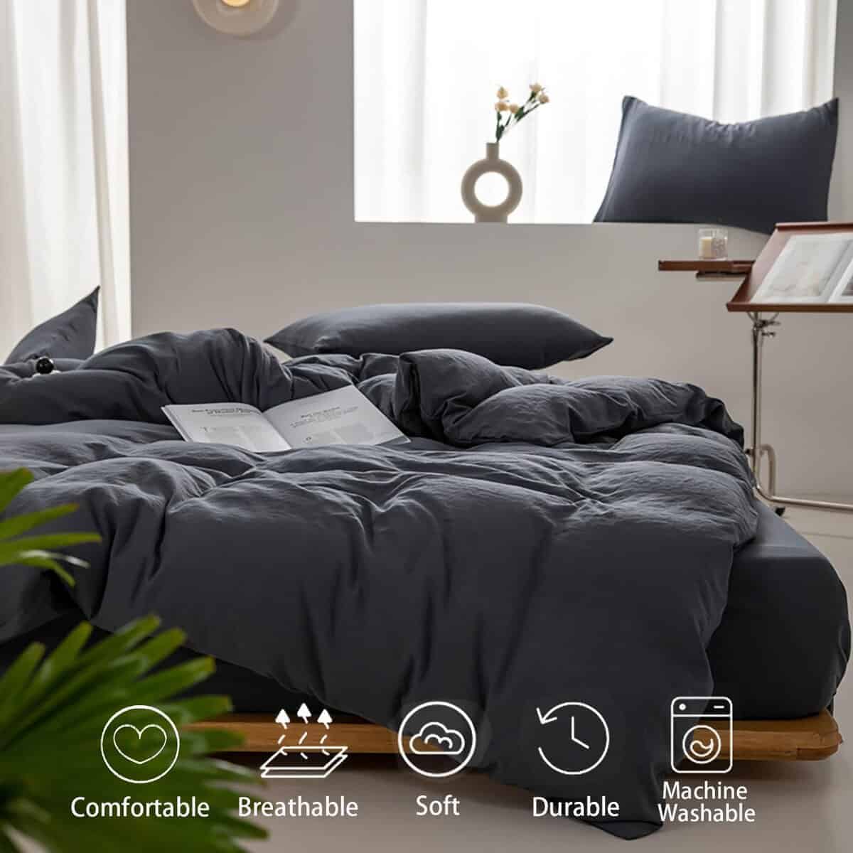 La funda de edredón está hecha de tela de algodón tejida lisa. Aspecto Texturado, Sencillo pero Elegante Un Fantástico Complemento para tu Dormitorio. Los espacios entre las líneas son consistentes en tamaño y forma. El grosor de la tela es perfecto para el verano y el invierno.