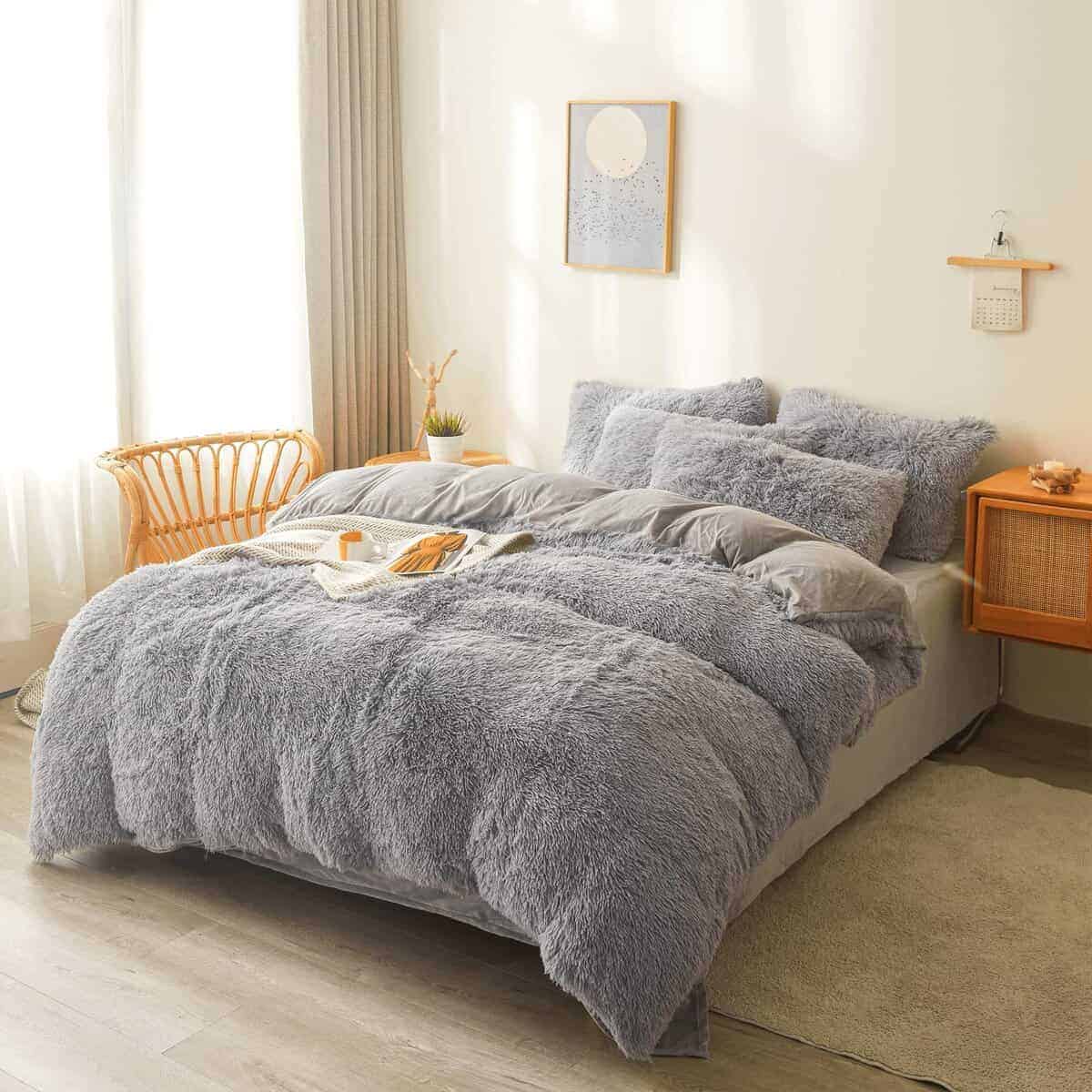 Juego de Funda de Edredón Gris Fluffy Comforter King –
