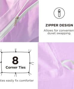 Microfibra es el material más comúnmente utilizado para las fundas de edredón, transpirable y ligero, es un material suave y cómodo que es fácil de mantener, crea una cama cómoda para tu familia y consigue un descanso de calidad. Esta funda de edredón de 3 piezas de hotel de lujo es la solución perfecta para tus noches de sueño. Fabricada con microfibra duradera y de alta calidad, esta funda de edredón de lavanda tamaño Queen es suave al tacto y ligera, ideal para todas las estaciones. Los 8 lazos en las esquinas mantienen tu edredón cómodo en su lugar y no se desplaza, junto con un práctico y duradero cierre de cremallera oculta que facilita deslizar el edredón dentro y fuera. Además, es fácil de insertar o sacar las fundas para almohada de estilo sobre cerrado. Las fundas de edredón grisáceo morado ligeras de Famanti son duraderas, resistentes al color, lavables a máquina, no se decoloran, lavar en agua fría, secar suavemente y retirar rápidamente para evitar arrugas y garantizar un uso duradero. Este juego de funda de edredón Queen grisáceo morado con funda de edredón (90 x 90) y 2 fundas para almohada (20 x 30) es el regalo perfecto para familia/amigos/niños para Navidad, cumpleaños, Día de San Valentín y Día de Acción de Gracias.