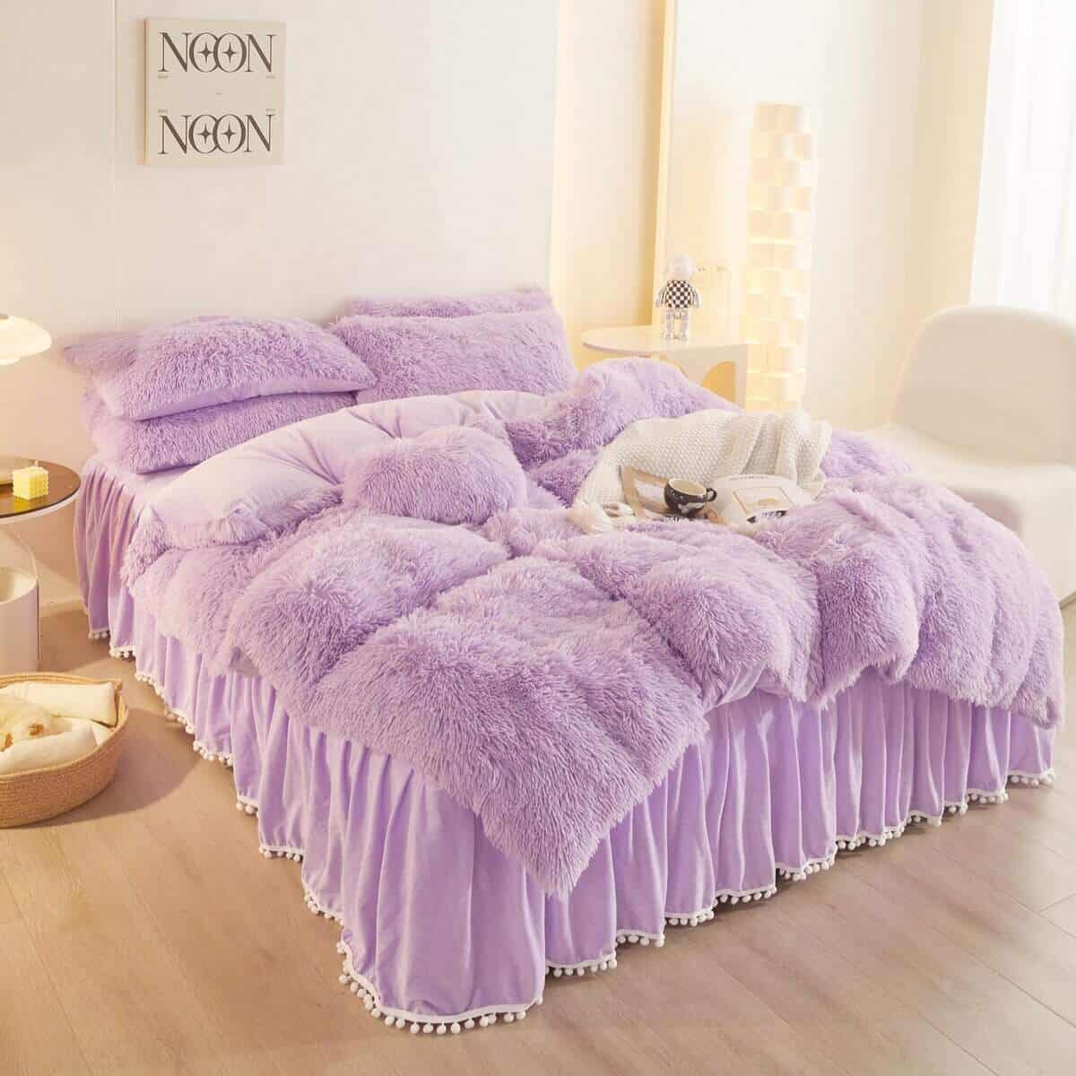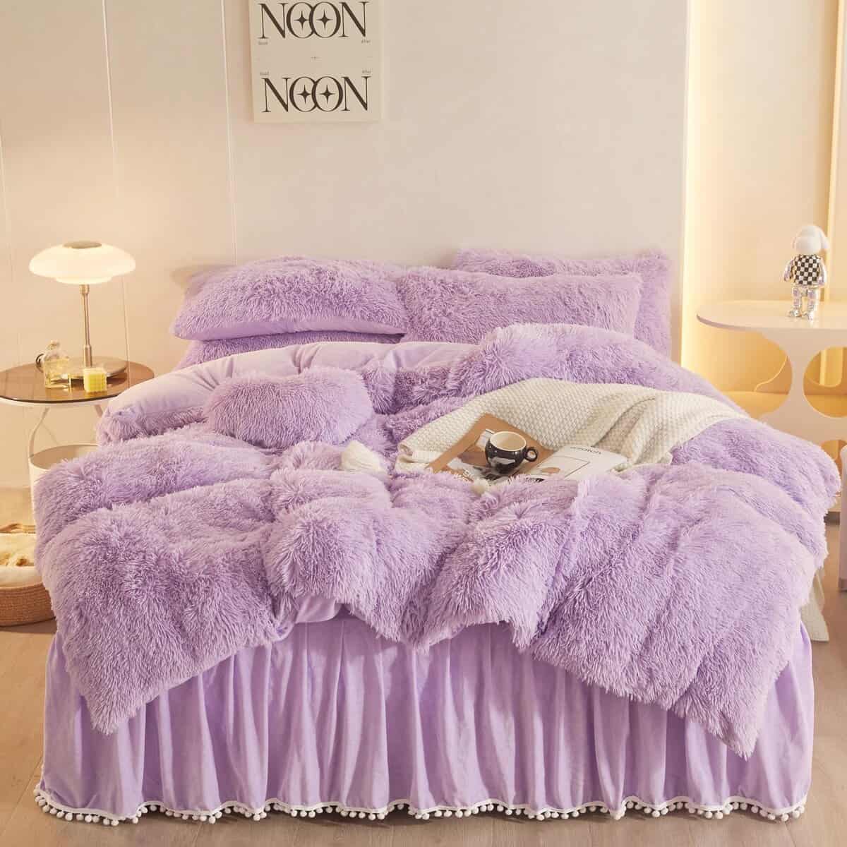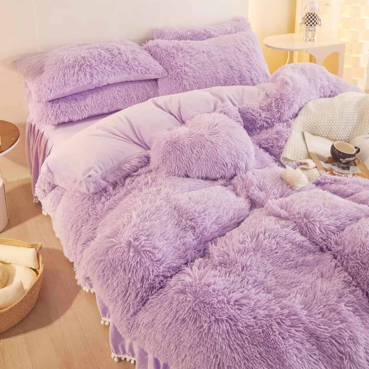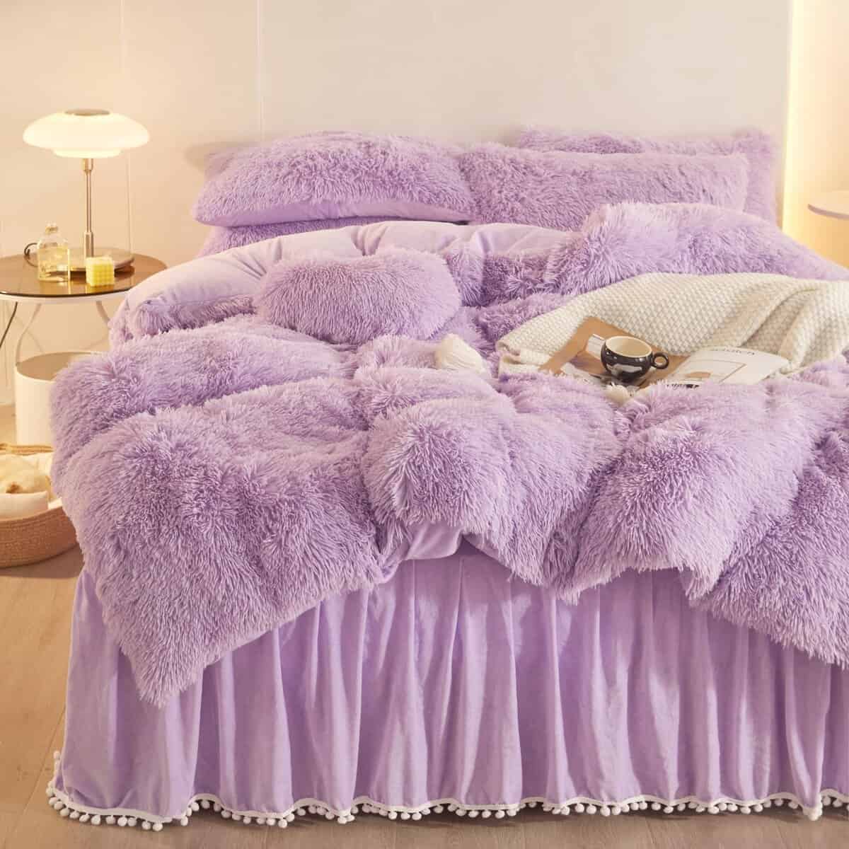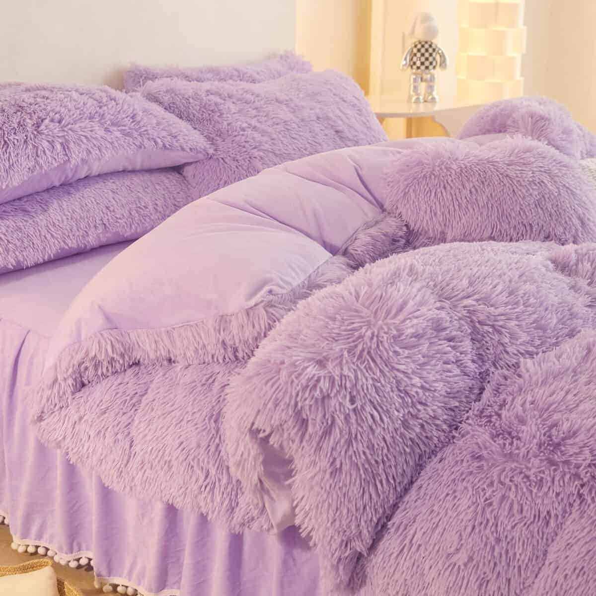 Juego de funda de edredón HAIHUA Fluffy Lavender Queen –