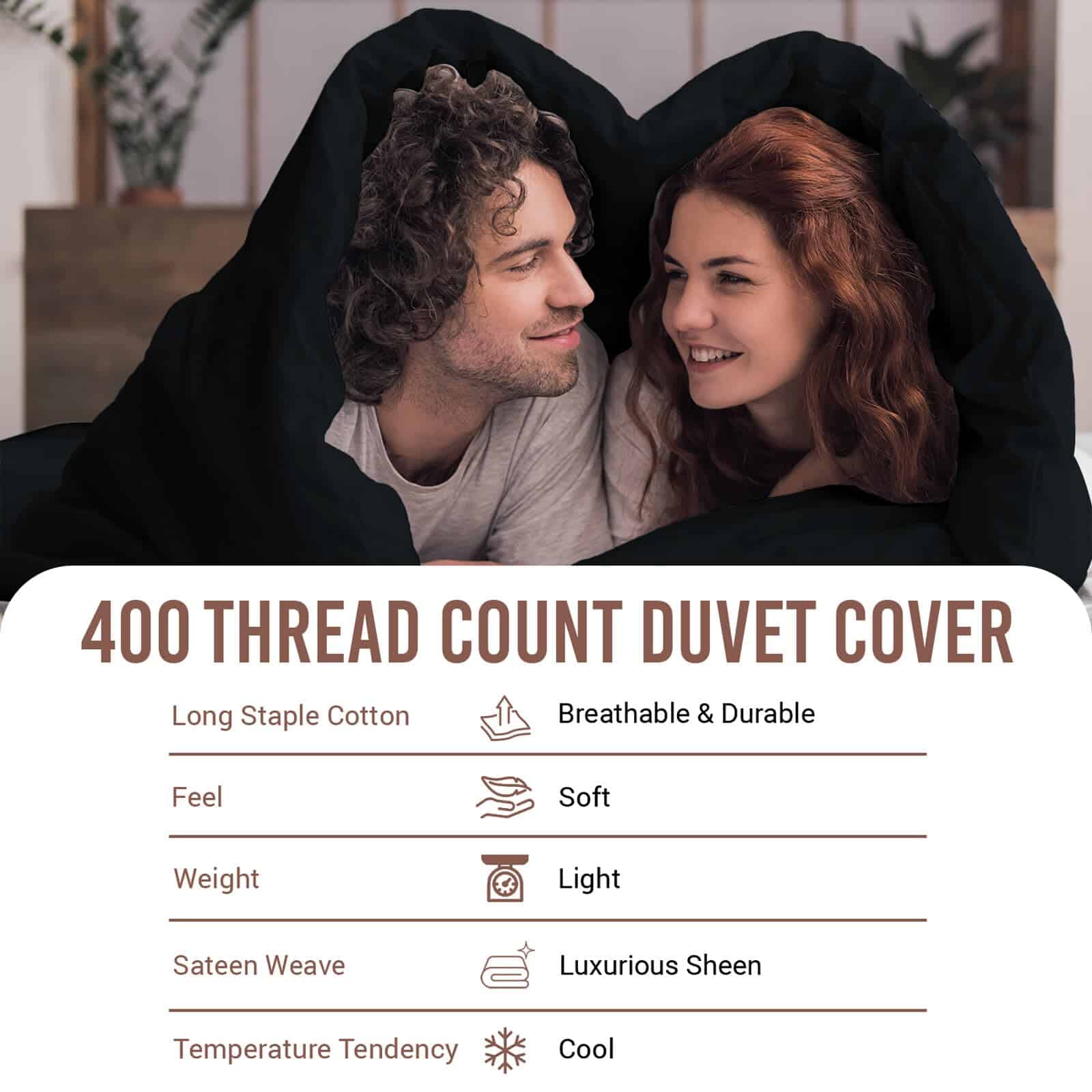 1. Cool, Breathable & Smooth: Crafted from 100% Long-Staple Combed Cotton Sateen Weave, this 400 Thread Count duvet cover king size with its lighweight texture is made with specially compacted yarn. Minimal artificial processing makes this king size duvet cover gentle on all skin types, prevents night sweats, absorbs moisture and regulates body temperature to sleep cool while maintaining the elegant hotel look. 2. Smart Fit Ties: The hidden-button closure and 4 corner ties give a secure & smart fit, preventing the comforter or duvet to bunch up inside. The set includes 1 duvet cover (104 x 90 ) and 2 pillow shams with elegant flanges and convenient envelope closure (20 x 36 ). 3. 100% Pure & Natural Mercerised Combed Cotton: With Pizuna’s fine yarn technique, this 400 Thread Count combed cotton duvet cover king features a single dent (4 up-1 down) sateen weave. Usage of mercerised combed cotton makes this king size duvet cover set smooth & sturdy. Pure & natural cotton bedding wrinkles but it is distinctively cooler & breathable. Further, it softens and the wrinkling reduces with every wash. 4. Pizuna Quality Standard: Pizuna products are individually tailored, measured and checked (piece by piece) by our Quality Assurance team. The fabric in king duvet cover cotton is OEKO-TEX & AZO-Free Certified (2024), free from synthetic substances and planet-friendly, making it soothing even for the most delicate skin. 5. Indulge Responsibly: This cotton duvet cover king is BSCI compliant, socially responsible and environment friendly. Use of recycled materials for packaging may add an unpleasant odour which vanishes after the 1st wash in warm water. Made from Fade Resistant Dye, it is machine washable on a gentle cycle, tumble dry low. Using bleach may affect colours. 6. Designed for Better Sleep: Our in-house sleep experts study the user’s sleep behaviour and patterns, resulting in product enhancement and compact packaging. Available globally in multiple colours and sizes, make this luxurious duvet cover king size the perfect gifting option for your loved ones. 7. Pizuna Cares: Thousands of happy families and media outlets have praised our king cotton duvet cover. However, if you’re unhappy with the product, you can return it within 30 days as per the policy, beyond that our customer care team will be there to assist you as well.