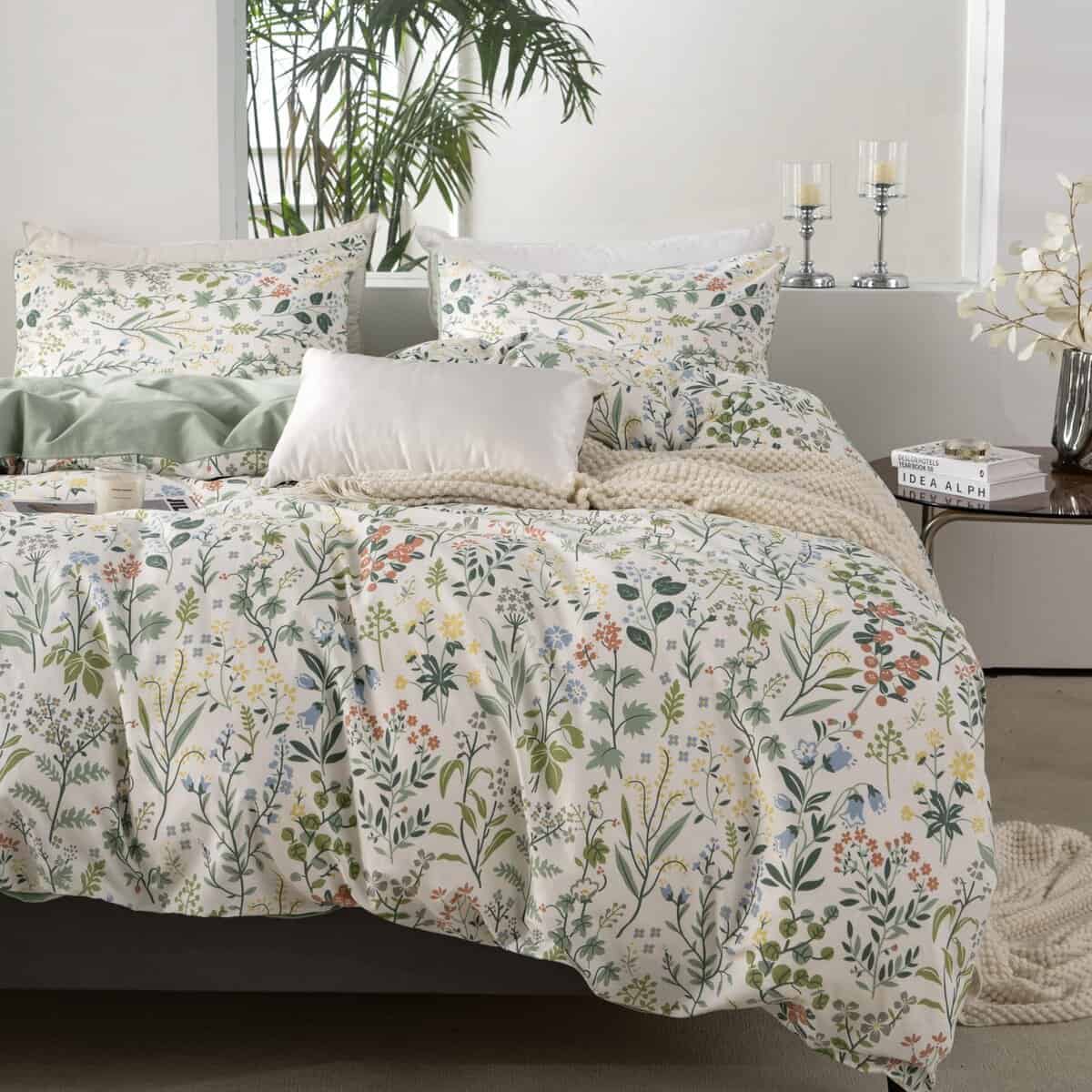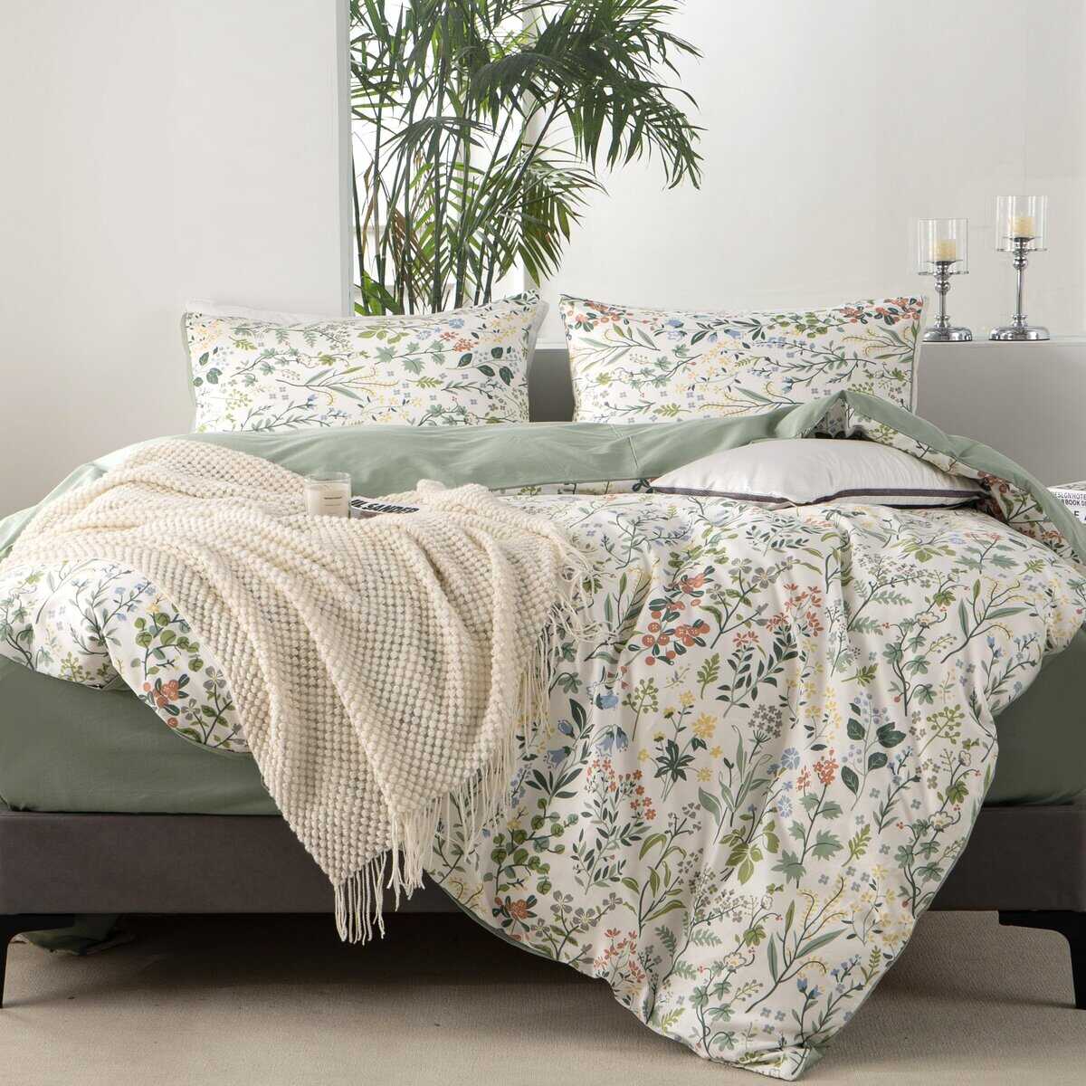 Conjunto de Funda de Edredón de alta calidad fabricado con tejido de algodón natural que es suave, transpirable y fácil de cuidar. Diseño floral chic y fresco que le dará un toque elegante a tu habitación. El juego incluye una funda de edredón king size y dos fundas de almohada bohemias con un cierre de cremallera oculto de alta calidad y lazos en las esquinas para asegurar el edredón en su lugar. Lavar a máquina en agua fría, ciclo suave, secar en secadora a baja temperatura, no usar blanqueador. Garantía de calidad de Jane yre: ofrecemos devolución en 30 días y servicio al cliente las 24 horas, ¡contáctenos si tiene alguna pregunta!