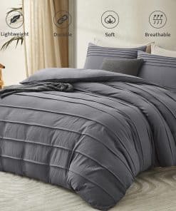 La funda de edredón gris de Oli Anderson en tamaño king es la elección perfecta para aquellos que buscan una decoración elegante y acogedora en su dormitorio. Con un diseño plisado que agrega textura y estilo, esta funda de edredón no solo es hermosa, sino también funcional. Hecha de microfibra de alta calidad, esta ropa de cama es suave al tacto y ofrece una experiencia de sueño cómoda y cálida durante todo el año. Con 8 lazos para mantener el edredón en su lugar y una cremallera oculta que facilita la inserción del edredón, esta funda de edredón es conveniente y práctica. Además, el juego incluye 2 fundas de almohada a juego para completar el look. Lave la funda de edredón a máquina en agua fría y séquela a baja temperatura para mantenerla en óptimas condiciones. Añada este elegante juego de ropa de cama a su colección y disfrute de un descanso reparador y confortable cada noche.
