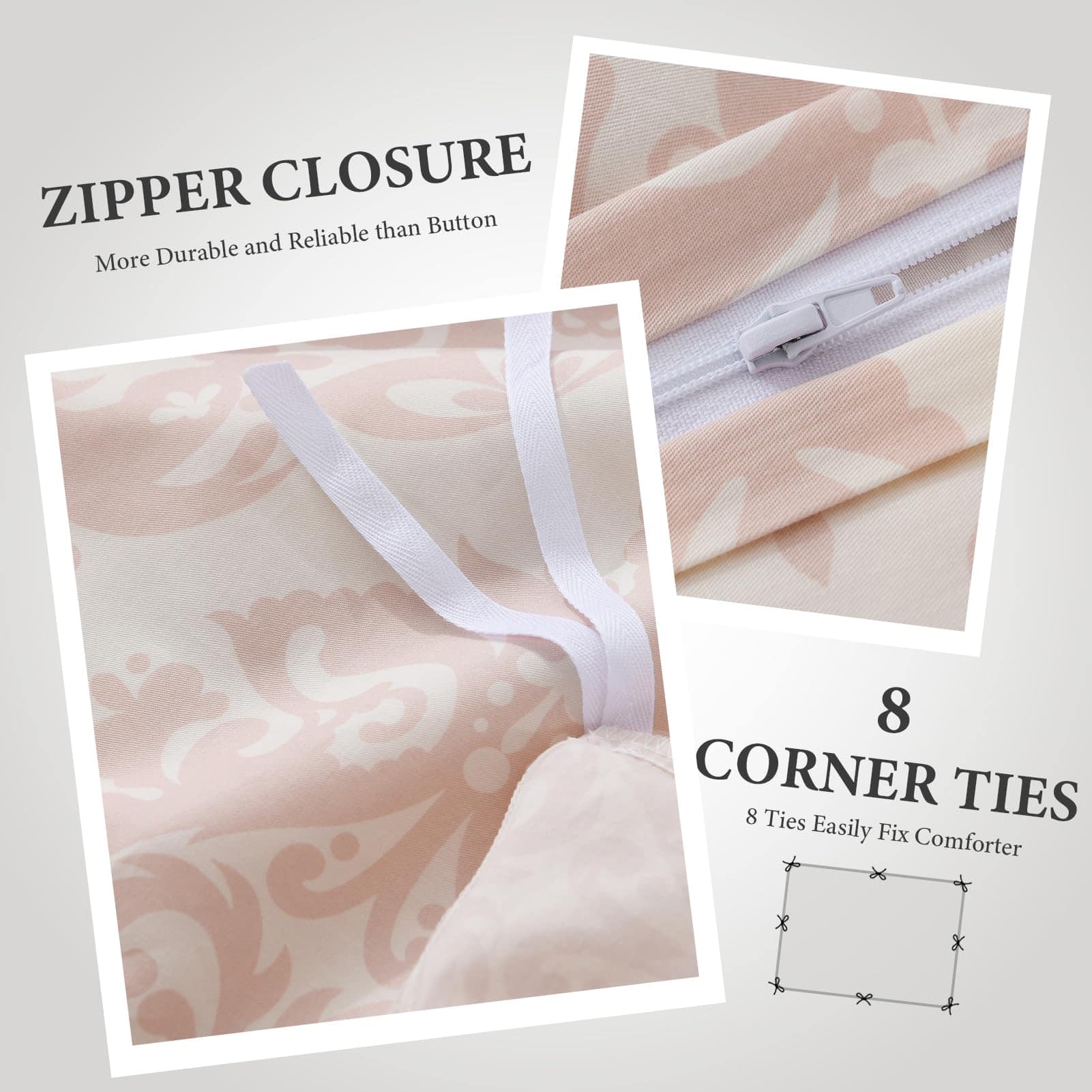 El juego de funda de edredón de tamaño king viene con 1 funda de edredón (90″ x 104″) y 2 fundas de almohada (20″ x 26″). ¡NO incluye edredón! Este set está decorado con un lujoso diseño floral geométrico intrincado. La funda de edredón está hecha de 100% algodón, lo que la hace suave, antiestática y resistente a la decoloración. Es ideal para quienes tienen alergias o tienden a sudar mientras duermen. La cremallera oculta facilita insertar el edredón y mantiene todo en su lugar. Además, cuenta con 8 lazos que mantienen el edredón en su sitio. Lavable a máquina en agua fría, ciclo suave, secar a baja temperatura, no usar lejía. Perfecto como regalo para cualquier ocasión.