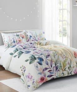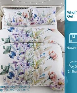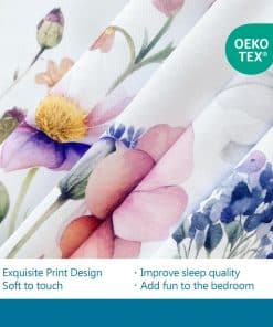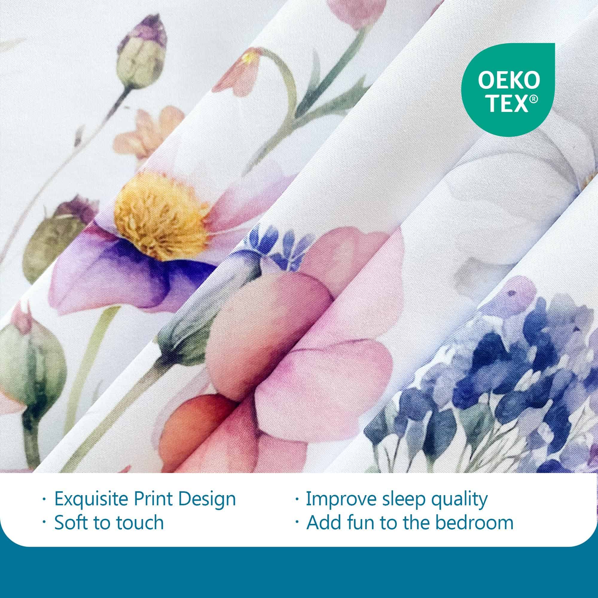 1. Materiales Premium: Esta funda de edredón tamaño king está hecha de 100% microfibra suave lavada, telas de alta calidad que proporcionan un tacto ligero como una pluma y un brillo elegante, al mismo tiempo, esta funda de edredón floral de prado es suave al tacto, cómoda, amigable con la piel, transpirable y sostenible, lo que te brinda una experiencia de sueño cómoda y cálida, sin hacer ruido de roces.