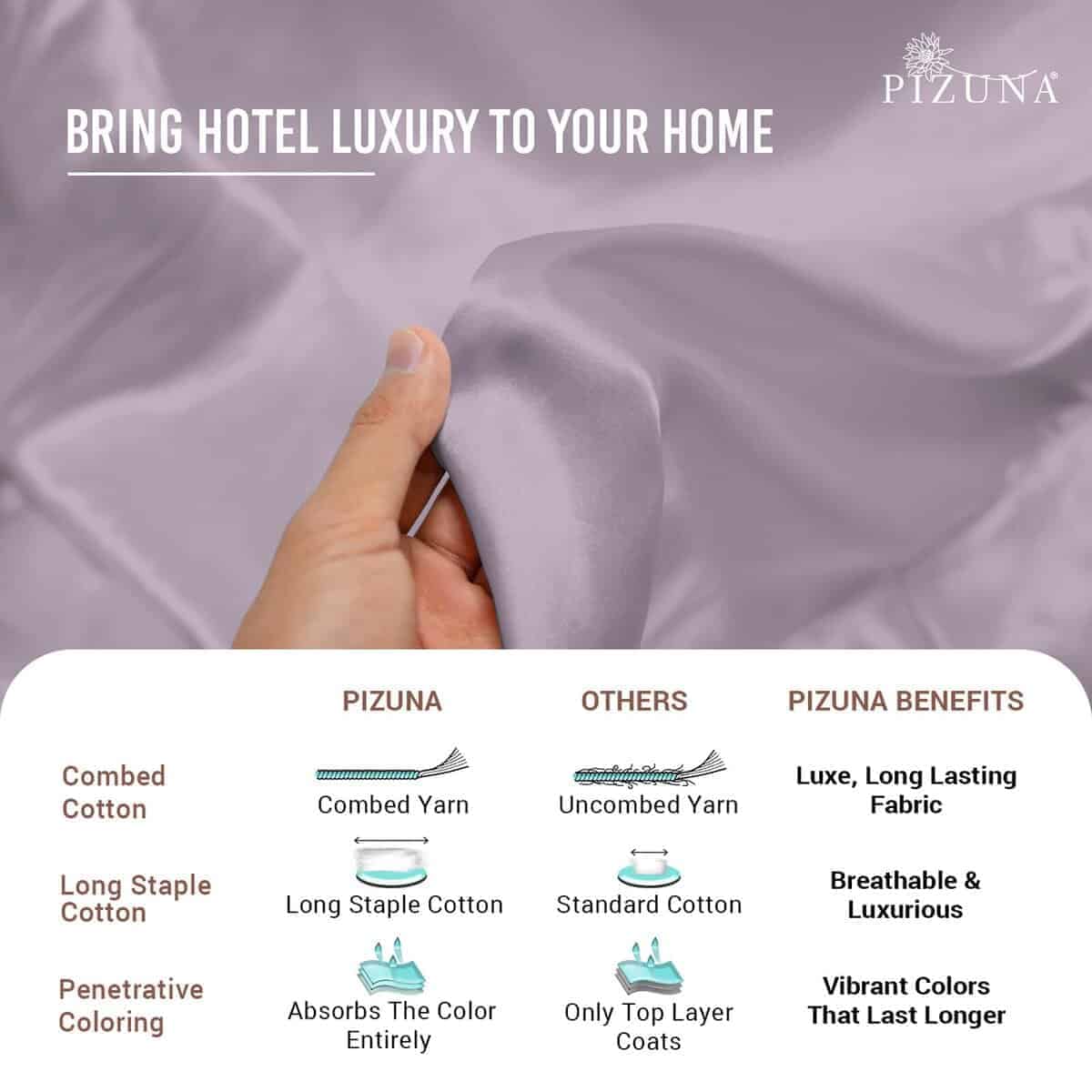 1. Fresco, Transpirable y Suave: Elaborado en 100% Algodón Largo de Fibra de Sábana Satinada, esta funda de edredón tamaño twin de 400 hilos con su textura ligera está fabricada con hilo especialmente compactado. El procesamiento mínimo artificial hace que esta funda de edredón twin sea suave para todo tipo de piel, previene los sudores nocturnos, absorbe la humedad y regula la temperatura corporal para dormir fresco mientras mantiene el elegante aspecto de hotel. 2. Lazos de Ajuste Inteligentes: El cierre de botón oculto y los 4 lazos en las esquinas proporcionan un ajuste seguro e inteligente, evitando que el edredón se agrupe por dentro. El set incluye 1 funda de edredón (66″ x 86″) y 2 fundas de almohada con elegantes volantes y cierre de sobre conveniente (20 x 26 ). 3. 100% Algodón Combed Mercerizado Puro y Natural: Con la técnica de hilo fino de Pizuna, esta funda de edredón twin de algodón con 400 hilos cuenta con un tejido satén de malla simple (4 arriba-1 abajo). El uso de algodón combed mercerizado hace que este juego de funda de edredón sea suave y resistente. La ropa de cama de algodón puro y natural se arruga pero es distintivamente más fresca y transpirable. Además, se suaviza y las arrugas se reducen con cada lavado. 4. Estándar de Calidad Pizuna: Los productos de Pizuna son confeccionados, medidos y revisados (pieza por pieza) por nuestro equipo de Control de Calidad. El tejido de la funda de edredón twin de algodón cuenta con la certificación OEKO-TEX & AZO-Free (2024), libre de sustancias sintéticas y respetuoso con el planeta, lo que lo hace reconfortante incluso para la piel más delicada. 5. Indulgencia Responsable: Esta funda de edredón de algodón es conforme a BSCI, socialmente responsable y respetuosa con el medio ambiente. El uso de materiales reciclados para el embalaje puede añadir un olor desagradable que desaparece después del primer lavado en agua tibia. Fabricado con tintes resistentes a la decoloración, es apto para lavar a máquina en ciclo suave, secar a baja temperatura. El uso de lejía puede afectar los colores. 6. Diseñado para un Mejor Sueño: Nuestros expertos en sueño internos estudian el comportamiento y los patrones de sueño del usuario, lo que resulta en una mejora del producto y un embalaje compacto. Disponible a nivel mundial en varios colores y tamaños, convierte esta lujosa funda de edredón twin de algodón en la opción perfecta para regalar a tus seres queridos. 7. Pizuna Cuida: Miles de familias felices y medios de comunicación han elogiado nuestras fundas de edredón. Sin embargo, si no estás satisfecho con el producto, puedes devolverlo dentro de los 30 días según la política, más allá de ese plazo nuestro equipo de atención al cliente estará allí para asistirte también.