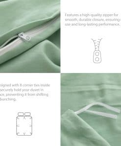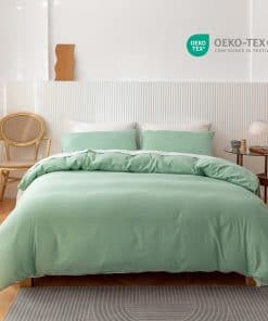 Indulge en el lujoso confort de nuestro juego de funda de edredón de algodón de 100% de larga fibra. Confeccionado con cuidado, el tejido de alta calidad garantiza transpirabilidad, durabilidad y un tacto irresistiblemente suave. Experimenta una noche de sueño blissful con nuestra ropa de cama de algodón premium. Nuestro juego de funda de edredón Queen incluye 1 funda de edredón Queen de 90″ W x 90″ L y 2 fundas de almohada de sobre estándar de 20″ W x 26″ L. Crea un look elegante y coordinado para tu dormitorio con este set cuidadosamente diseñado. Atención: el inserto de edredón / conforter no está incluido y debe ser comprado por separado. Disfruta del confort eterno de nuestro set de funda de edredón de algodón egipcio. El proceso de lavado único garantiza la solidez del color y la contracción mínima, al tiempo que proporciona una suavidad excepcional. Eleva tu experiencia de sueño con el lujo asequible de una funda de edredón de hotel de 5 estrellas. Confeccionado meticulosamente con atención al detalle, nuestro juego de funda de edredón de 600 hilos ofrece calidad superior. El diseño de cremallera oculta garantiza un cierre sin esfuerzo, mientras que las 8 correas interiores de esquina mantienen tu inserto de edredón firmemente en su lugar. Con una durabilidad mejorada y un 30% más de puntadas por pulgada, nuestro producto está construido para resistir la prueba del tiempo. Nuestra funda de edredón de algodón orgánico es fácil de cuidar. Simplemente lava a máquina en agua tibia y seca a baja temperatura. Nos enorgullecemos de nuestro excepcional servicio al cliente y estamos dedicados a garantizar tu satisfacción. Si tienes alguna pregunta o inquietud, no dudes en contactarnos. Experimenta el confort y el estilo de nuestro juego de funda de edredón, perfecto para regalar en ocasiones especiales. Experimenta el encanto refrescante de nuestro juego de funda de edredón Verde Salvia. Con su tono verde claro, añade un toque de tranquilidad a tu dormitorio. El color suave y acogedor promueve un ambiente relajante para una relajación definitiva. Fabricado con cuidado, nuestro set de funda de edredón Verde Salvia ofrece confort y calidad superiores. Sumérgete en su abrazo suave y transforma tu espacio de dormir en un santuario sereno. Eleva el estilo de tu dormitorio con nuestro encantador set de funda de edredón Verde Salvia.