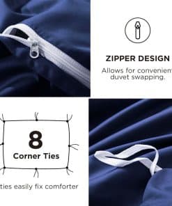 3. DETALLES DE DISEÑO: 8 lazos en las esquinas mantienen su edredón cómodo por dentro y no se desplaza, además de un cierre de cremallera oculto conveniente y duradero que facilita deslizar el edredón dentro y fuera Siempre mantenga su edredón limpio. Cree un aspecto perfecto. Fácil de insertar o quitar la funda de almohada de estilo sobres.