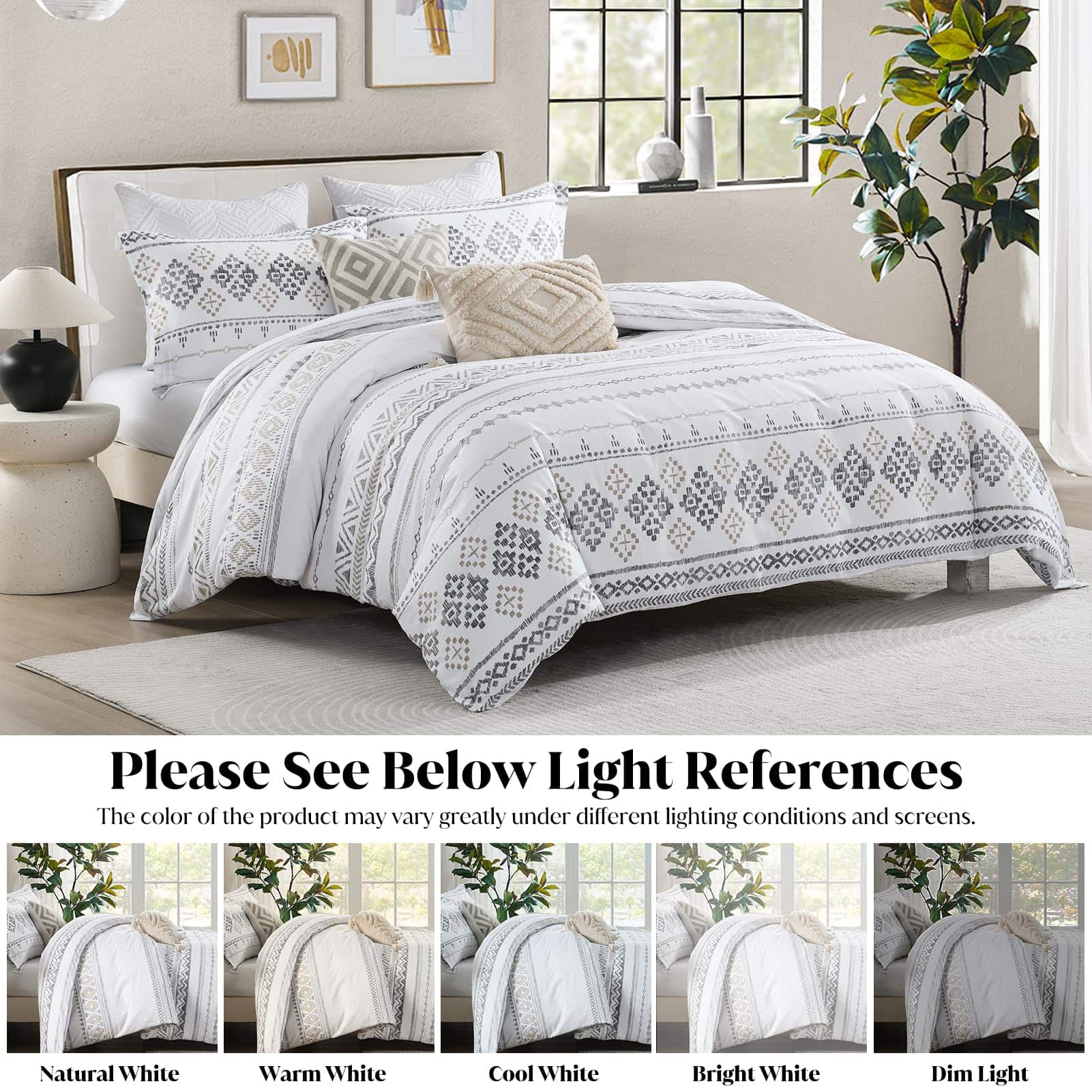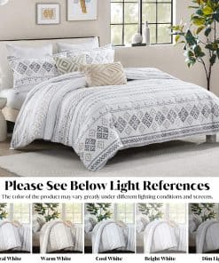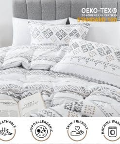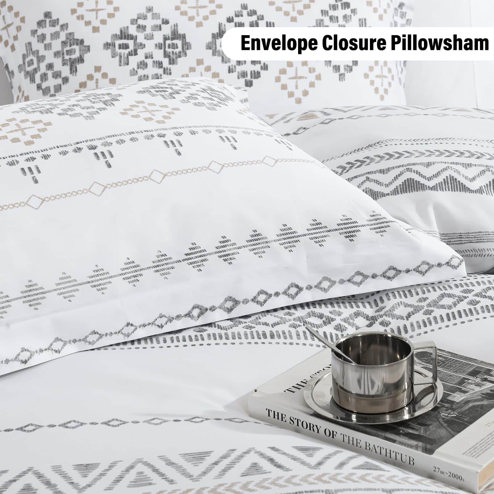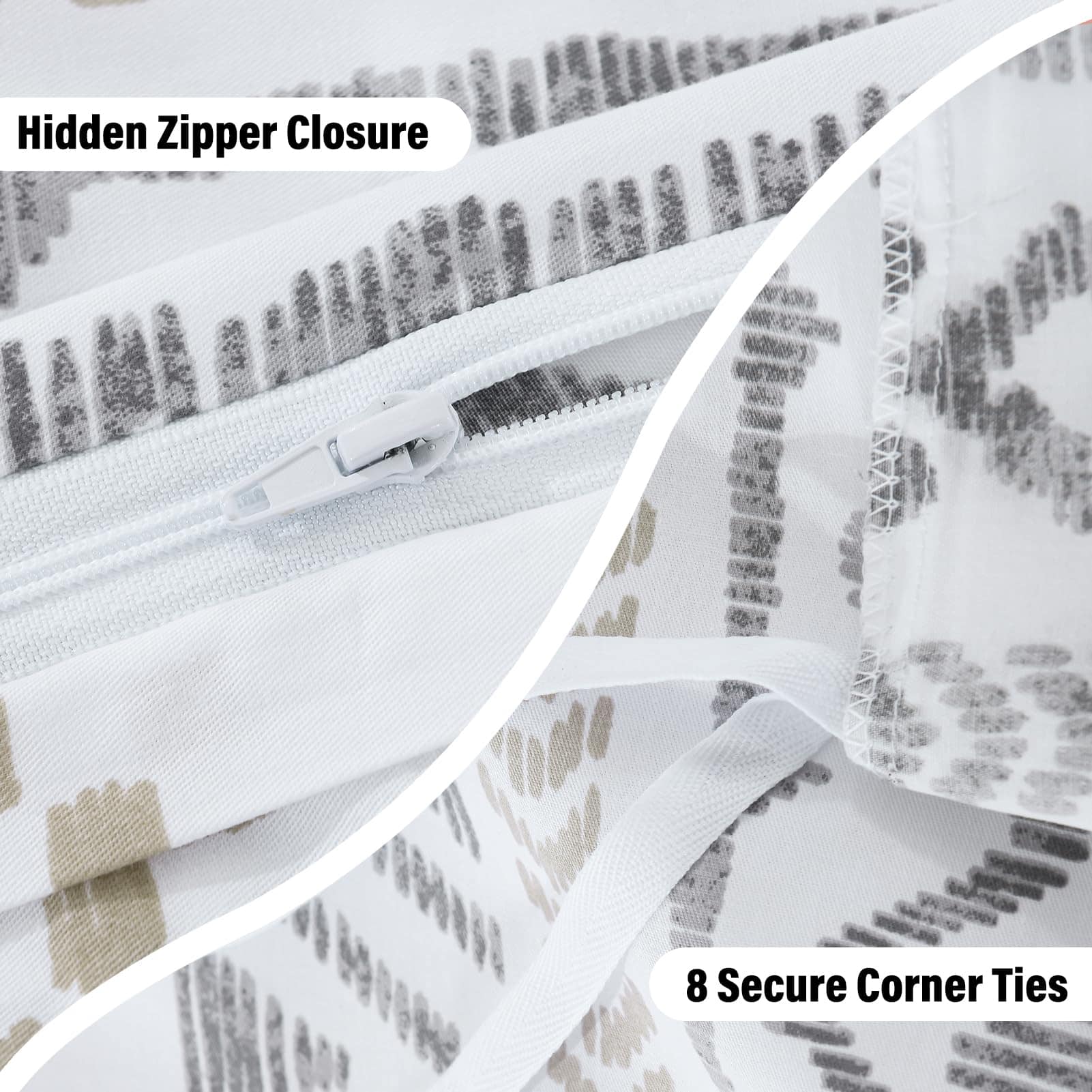1. Funda de edredón boho queen estilo bohemio y estampado azteca en funda de edredón geométrico queen, funda de edredón blanca y gris, añade color y belleza a la habitación, la funda de edredón azteca queen conjunto de funda de edredón queen de estilo granja ilumina tu habitación. Elección perfecta para propietarios con gustos sofisticados en decoración del hogar. 2. Algodón ultra suave y mejor sueño Material certificado según Oeko-Tex Standard 100. La funda de edredón queen está hecha de 100% algodón. El acabado prelavado hace que la tela tenga una excelente suavidad, no se desvanezca fácilmente, sin olor. El juego de funda de edredón queen es adecuado para todo el año, es suave, cómodo y transpirable. 3. Diseño y regalo La funda de edredón de algodón tiene un exquisito patrón de rayas geométricas en la funda de edredón y las fundas de almohada, ideal para un aspecto de granja. Funcionará fabulosamente con cualquier decoración interior, adecuado para cualquier tema de habitación, haciendo que su habitación se vea elegante y limpia. Es una buena opción para sus amigos y familiares. 4. Cierre con cremallera y 8 lazos en las esquinas La cómoda y sin complicaciones cremallera oculta hace que sea fácil insertar y quitar su edredón en la funda de edredón, Los ocho lazos en las esquinas mantienen el edredón en su sitio. Permítete dormir pacífica y cómodamente toda la noche. 5. Instrucciones de cuidado La colección de fundas de edredón azteca king es fácil de cuidar, por favor no lave con alta frecuencia. Lavable a máquina a menos de 60 °C. No usar lejía. Secar en secadora con ciclo suave y sin calor. CONSEJOS: Lavar del revés, Es mejor secar al natural