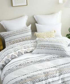 1. El juego de funda de edredón queen incluye fundas de edredón Y-PLWOMEN que incluye 1 funda de edredón con patrón geométrico (90″ x 90″) y 2 fundas de almohada (20″ x 28″). (Sin Relleno de Edredón y Almohada Incluidos). 2. Diseño y Regalo: La exquisita funda de edredón a rayas azteca hace eco con tu cálida habitación, hermosa y generosa, dándote una experiencia visual diferente, disfruta de tu vida. Es una buena elección para tus amigos y familiares. 3. Algodón Ultrasuave y Mejor Sueño: Material certificado Oeko-Tex Standard 100. La funda de edredón queen está hecha de 100% algodón. La artesanía prelavada hace que la tela tenga una excelente suavidad, no se desvanece fácilmente, no tiene olor. El juego de funda de edredón queen es adecuado para todo el año, es suave, cómodo y transpirable. 4. 8 Lazos de Esquina y Cierre de Cremallera: El cierre de cremallera de la funda de edredón tiene un cierre de cremallera oculto para colocar fácilmente el inserto de edredón, prevenir que las mascotas lo muerdan y 8 lazos de esquina ocultos para mantenerlo en su lugar y evitar que se resbale, permitiendo que pongas y saques tu edredón fácilmente. 5. Instrucciones de Cuidado: La colección de fundas de edredón king de Y-PLWOMEN es fácil de cuidar, por favor no laves con alta frecuencia. Lavable a máquina bajo 60 . No usar lejía. Secar en secadora con ciclo suave y sin calor. CONSEJOS: Lavar del revés, es mejor secar al aire natural.