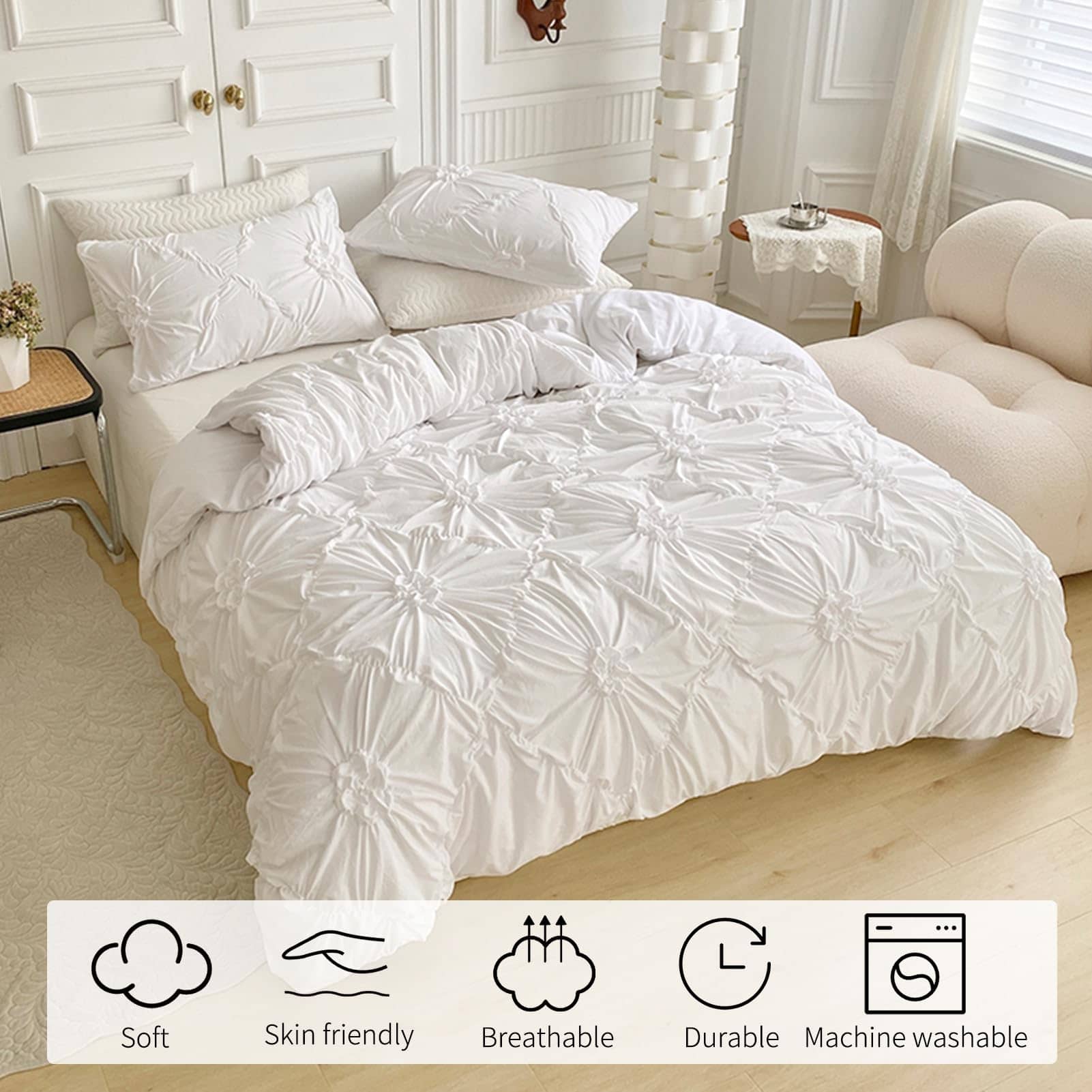 ¿Estás buscando una manera de darle vida a tu habitación? La funda de edredón Rvciby con estampado de flor blanca es la solución perfecta. El diseño de patrón impresionante no solo te permite vestir la habitación en ocasiones especiales, sino también en el día a día. Confeccionada con material de fibra de poliéster de alta calidad, esta funda de edredón es suave al tacto y seguro para personas con piel sensible. Además, la funda de edredón cuenta con lazos en las esquinas para mantener el edredón en su lugar y una cremallera que facilita la inserción o extracción del edredón, lo que la hace conveniente y duradera. Además, el estampado de la funda de edredón utiliza tecnología avanzada para garantizar que los colores sean claros y no se desvanezcan. Este juego de funda de edredón es fácil de limpiar, solo tienes que lavarlo a máquina en frío, secar a fuego lento y no usar lejía. Con este increíble juego de 2 piezas, podrás transformar tu habitación en un espacio relajante y feliz, y también tendrás un regalo perfecto para tus amigos y familiares.