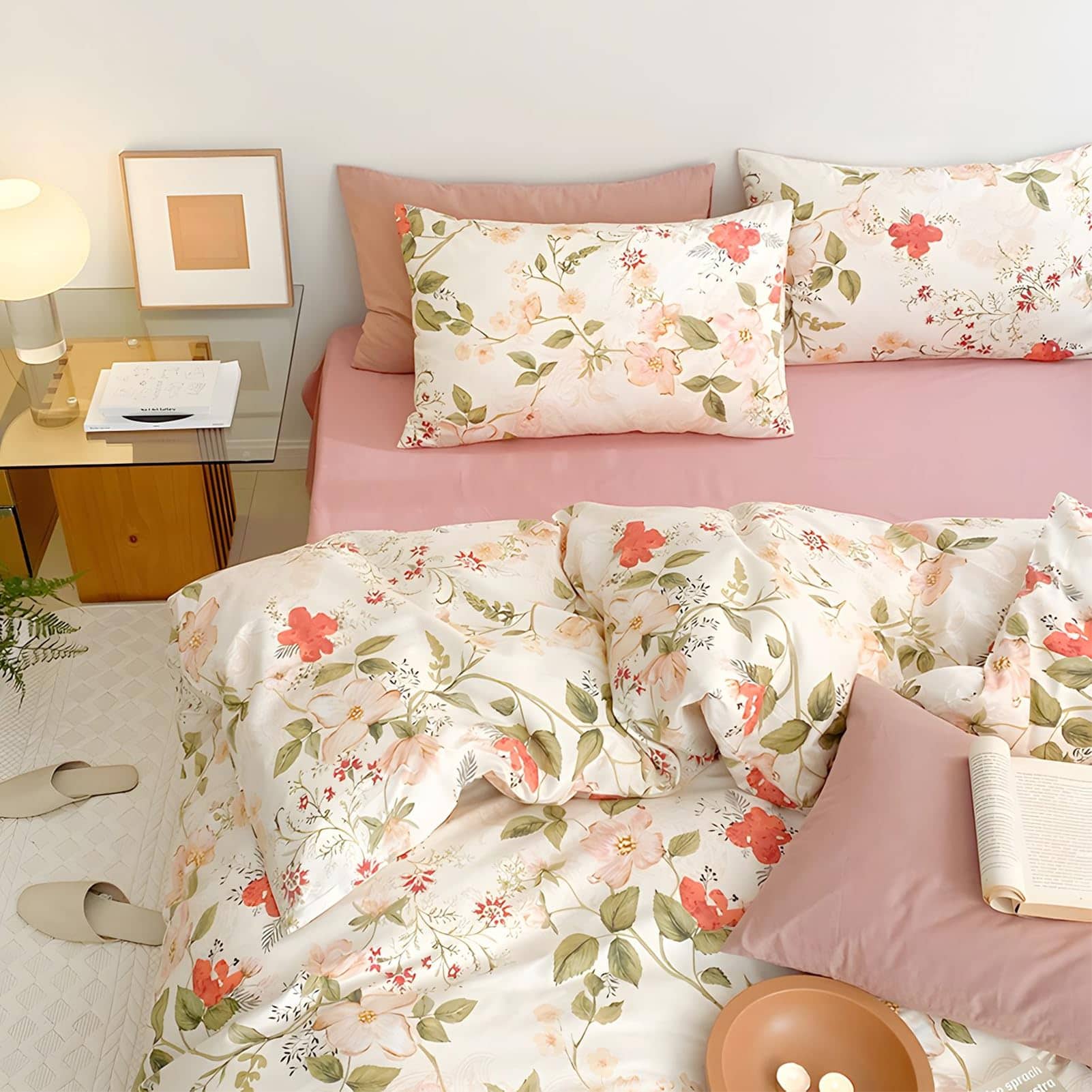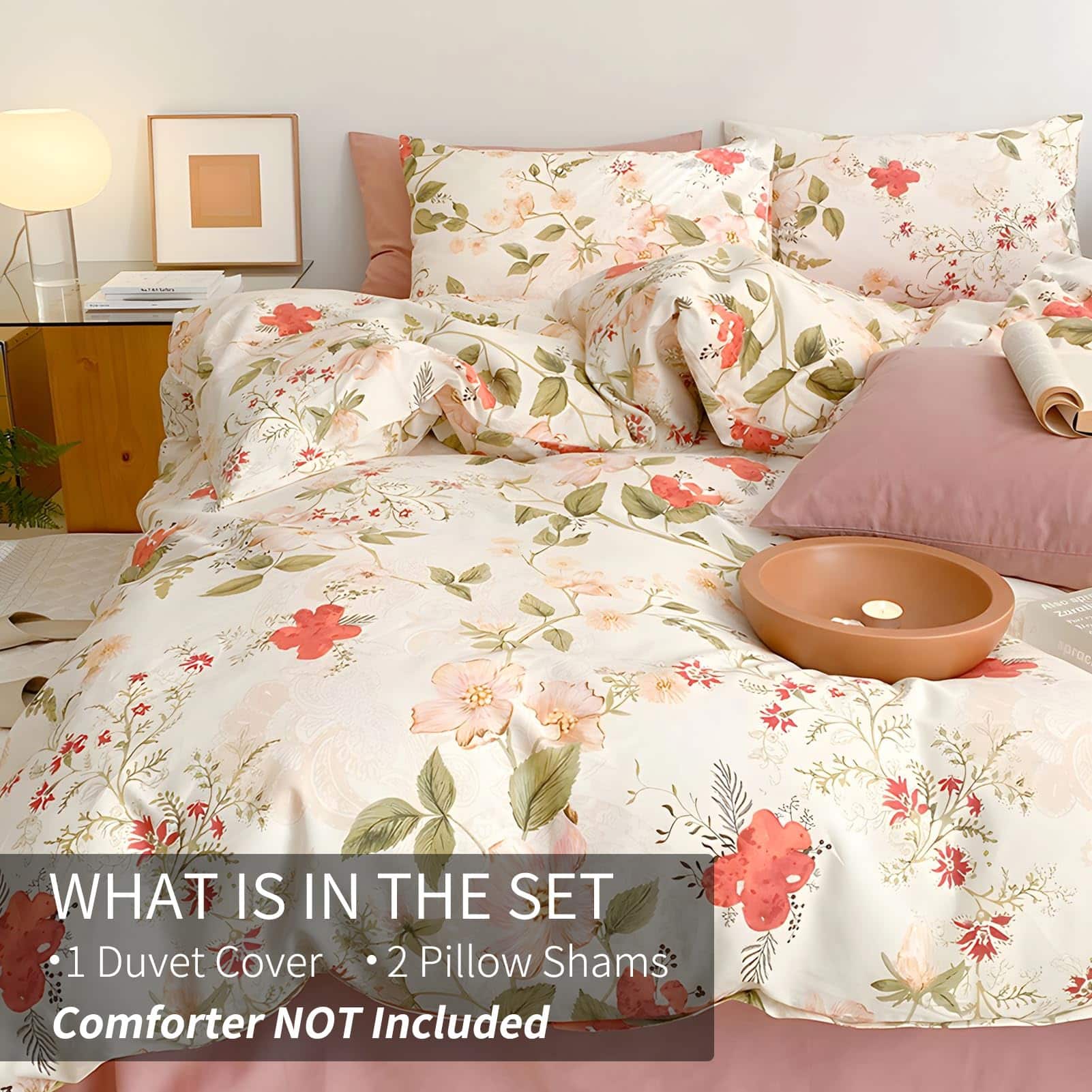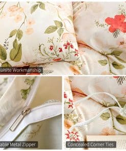 Especificación: Nombre: Juego de Funda de Edredón de Estampado de Hojas Florales Material: 100% algodón