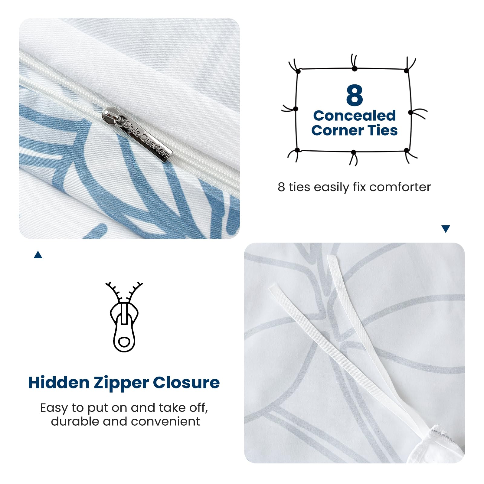 3. Colores Vívidos e Impresión de Calidad Presenta colores claros y vibrantes gracias a la tecnología de impresión digital avanzada. El juego está diseñado para ser resistente a la decoloración e incluye ocho lazos en las esquinas para una colocación segura del edredón. La cremallera de marca personalizada asegura un acabado elegante y facilidad de uso.