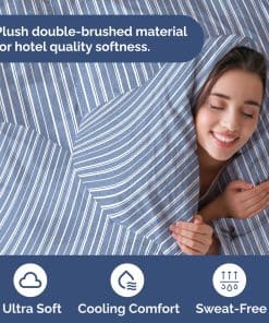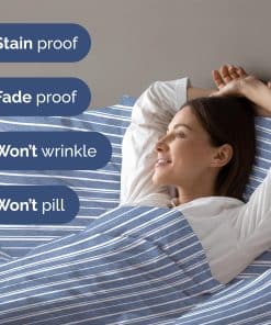 4. LIGERO Y TRANSPIRABLE: Nuestras fundas de edredón y fundas de almohada ligeras son frescas y transpirables, garantizando una experiencia de sueño fresca y cómoda durante todo el año. ¡Nuestros juegos de fundas de edredón certificados por OEKO Tex te permiten despertarte sintiéndote renovado sabiendo que tus sábanas son tan suaves con el planeta como contigo!