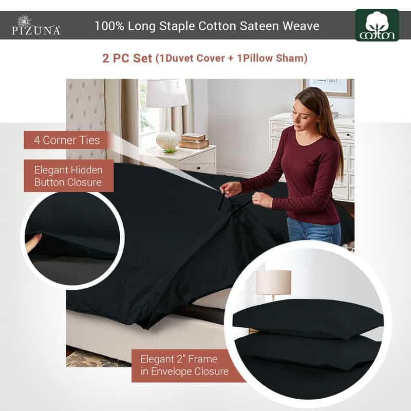 Juego de Funda de Edredón Twin de Algodón Puro Pizuna,