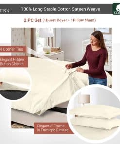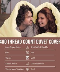 1. Fresco, Transpirable y Suave: Elaborado con 100% Algodón peinado de calidad premium y tejido de satén de 400 hilos, esta funda de edredón twin ofrece una textura ligera gracias a su hilo especialmente compactado. El procesamiento mínimo lo hace suave en todo tipo de piel, evita la sudoración nocturna, absorbe la humedad y regula la temperatura corporal para dormir fresco mientras mantiene el aspecto elegante de hotel.