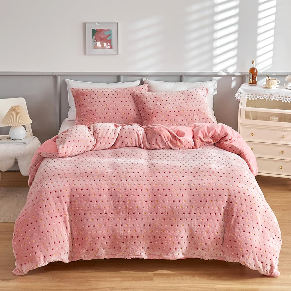 1. Juego de 3 Piezas: El juego de funda de edredón glow in the dark de Vicimi viene con 1 funda de edredón rosa y 2 fundas de almohada. Y este juego de funda de edredón es de tres tamaños: individual, matrimonial y queen.