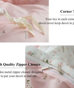 1. Tela de algodón suave: La funda de edredón estilo vintage floral está hecha de 100% algodón, que es ultra suave, transpirable, liviano, agradable a la piel y resistente a la decoloración, brindándote un buen y cómodo sueño toda la noche, la funda de edredón de algodón tamaño king floral es adecuada para todas las estaciones. 2. Juego de funda de edredón floral estético: 3 piezas conjunto de ropa de cama king boho floral > 1 funda de edredón king 104″x90″ + 2 fundas de almohada 20″x36″ (Nota: Edredón, relleno, almohada y sábana no incluidos). Si desea comprar una sábana bajera king a juego, busque el ASIN B0CKMW8PY5 en nuestra tienda. 3. Diseño conveniente: La funda de edredón de flores cottagecore está diseñada con cierre de cremallera oculto de metal, fácil de poner y sacar tu edredón, cuatro lazos en cada esquina de la funda de edredón mantienen el edredón en su lugar, las fundas de almohada están cerradas de forma envolvente, fácil de meter y sacar las almohadas. 4. Patrón único: El juego de funda de edredón blanco boho con elegante diseño de patrón de hojas florales rosadas impreso, diseño completamente reversible, agrega belleza, color y elegancia a la habitación, el juego de funda de edredón botánico ilumina tu dormitorio, juego de ropa de cama perfecto para propietarios con gustos sofisticados en la decoración de habitaciones de estilo cottage core. La funda de edredón king con patrón floral es adecuada para dormitorio, habitación de invitados, dormitorio escolar, etc. 5. Juego de ropa de cama cottagecore: El juego de funda de edredón king de algodón floral está empaquetado en una bolsa ecológica de forma ordenada y hermosa, no solo para su propio uso, sino también la mejor opción de regalo de ropa de cama para niños, niños, niñas, mujeres, hombres, adolescentes, adultos, estudiantes, amigos, familiares. 6. CERTIFICADO OEKO-TEX: Con la tela de algodón premium, el conjunto de ropa de cama de flores rosa del jardín ofrece una suavidad excepcional, Su tela ligera y transpirable proporciona la máxima comodidad sin hacer ruido. El juego de funda de edredón con patrón floral EAVD ha sido aprobado por la certificación OEKO-TEX STANDARD 100, lo que significa que no se utilizaron productos químicos nocivos y es respetuoso con el medio ambiente. 7. Lavado y Cuidado: El juego de ropa de cama de algodón king con funda de edredón floral es fácil de cuidar, se recomienda lavar antes del primer uso; lavar a máquina con agua fría, no usar blanqueador, secar a baja temperatura.