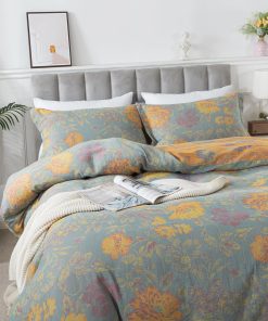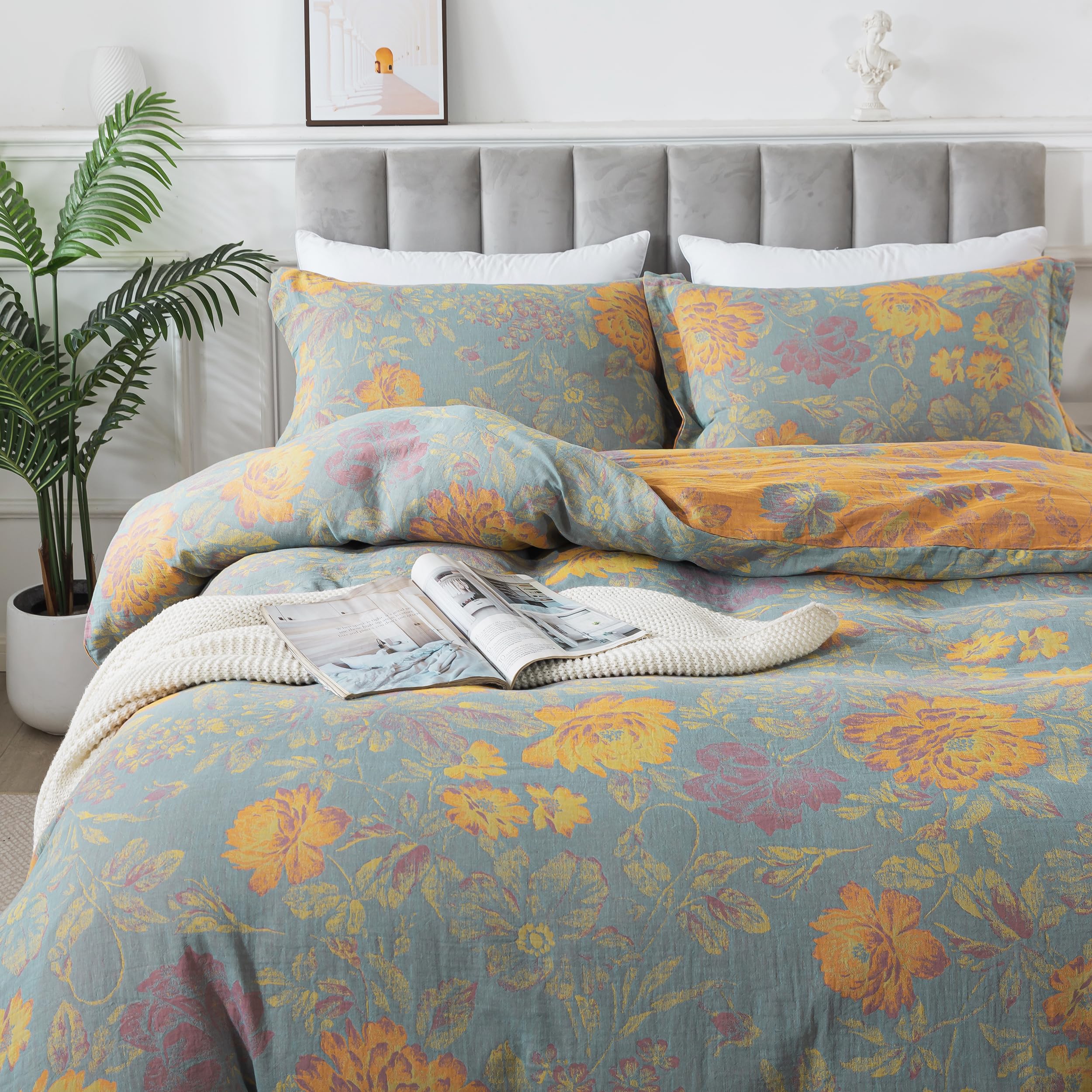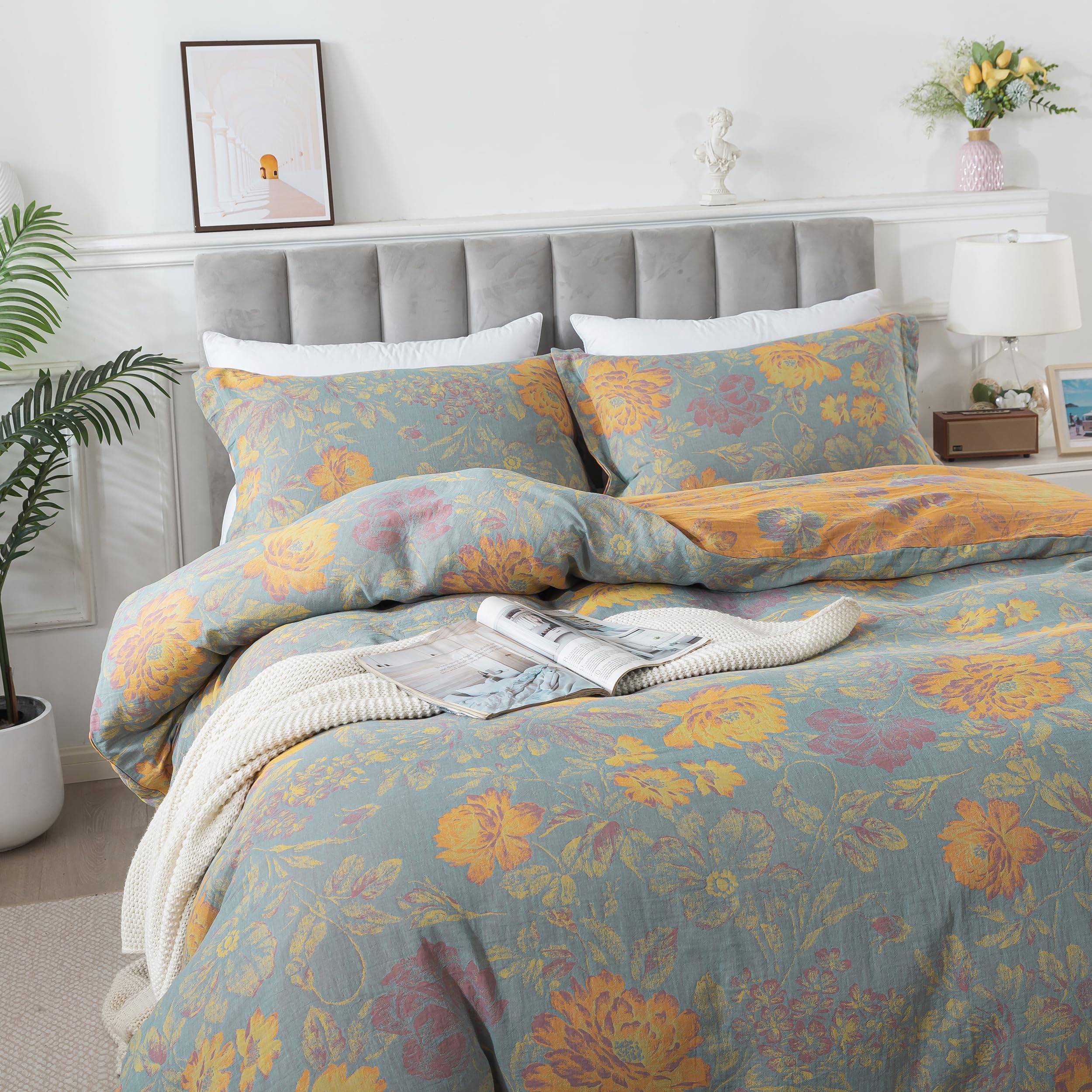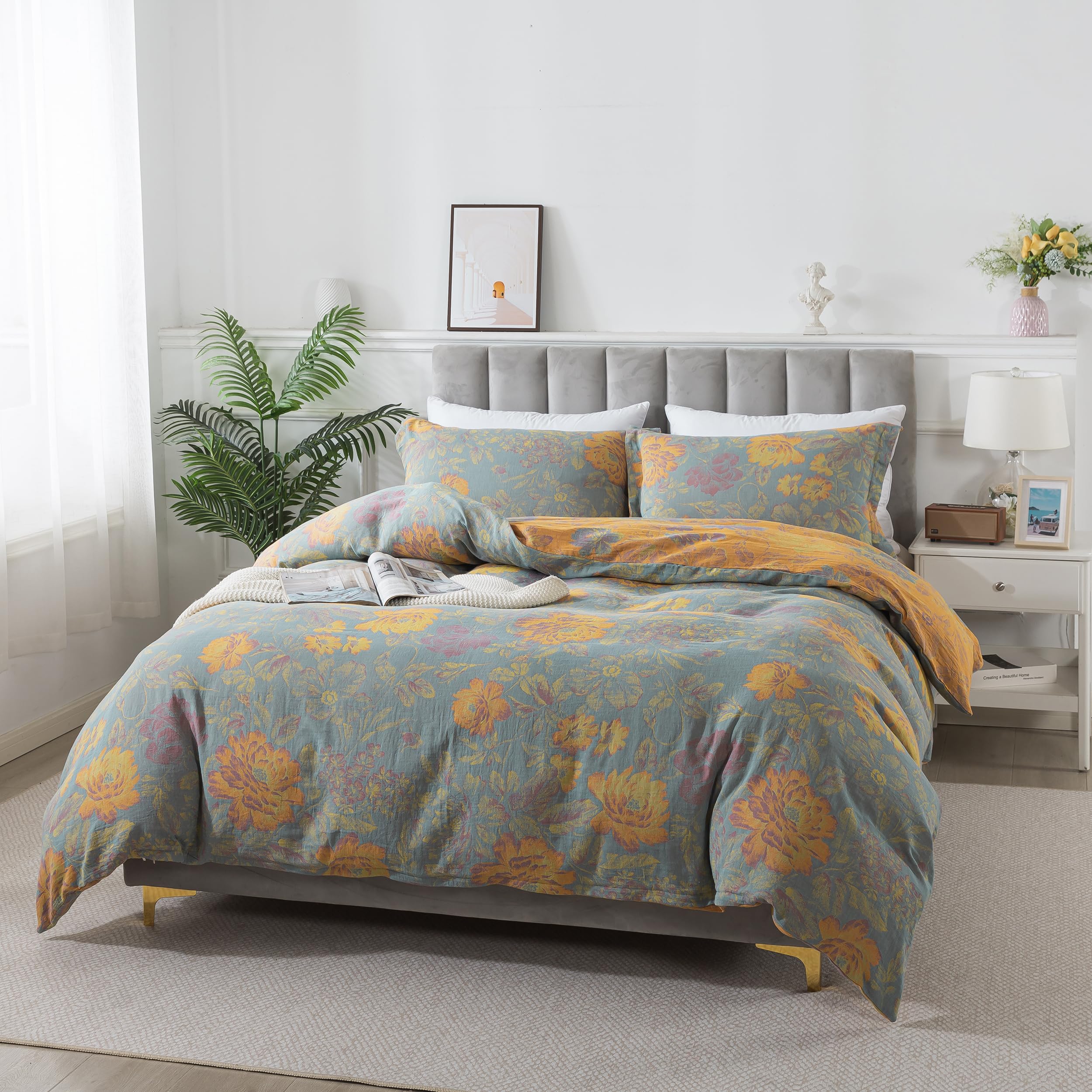 Juego de Funda de Edredón Vintage Naranja Patrón de Flores
