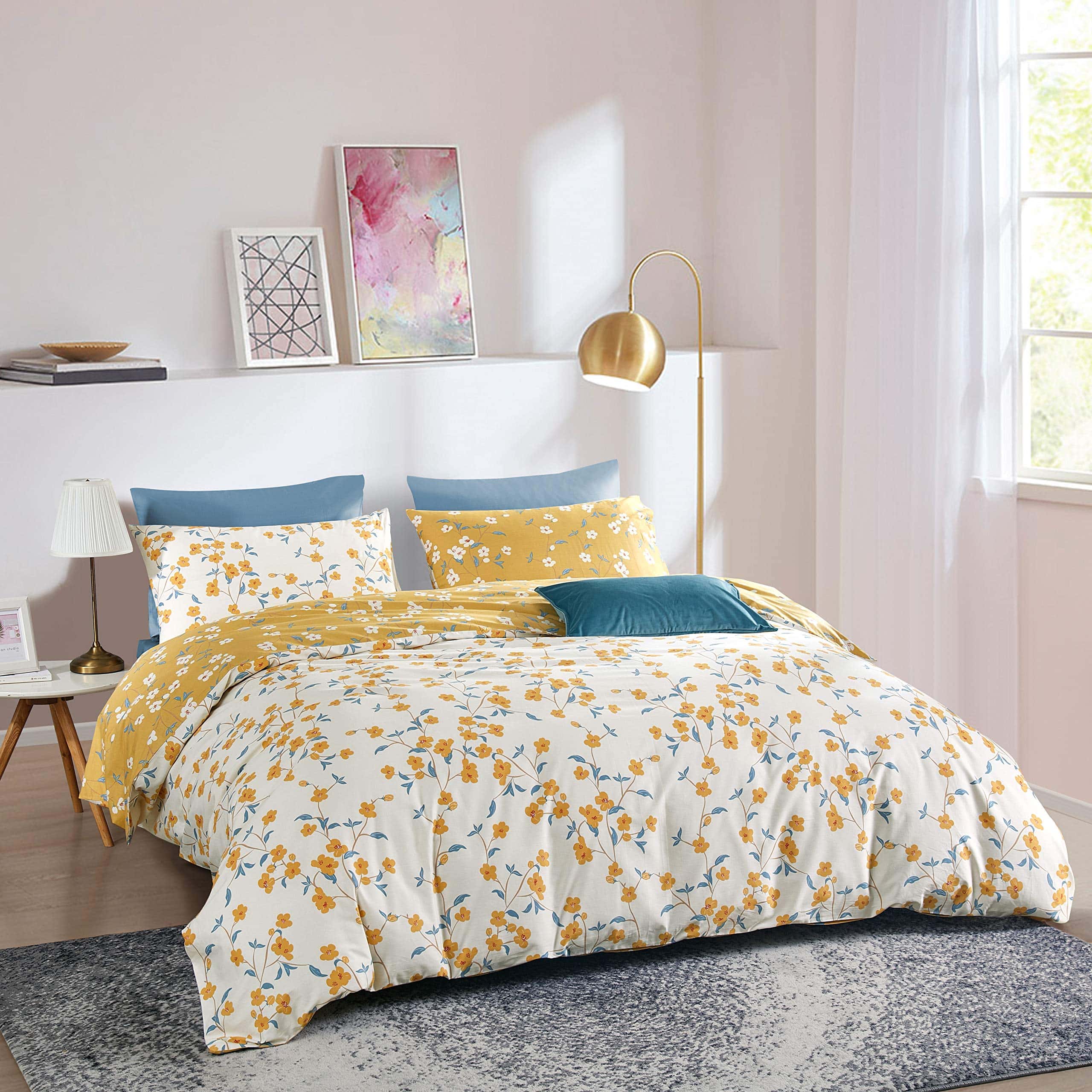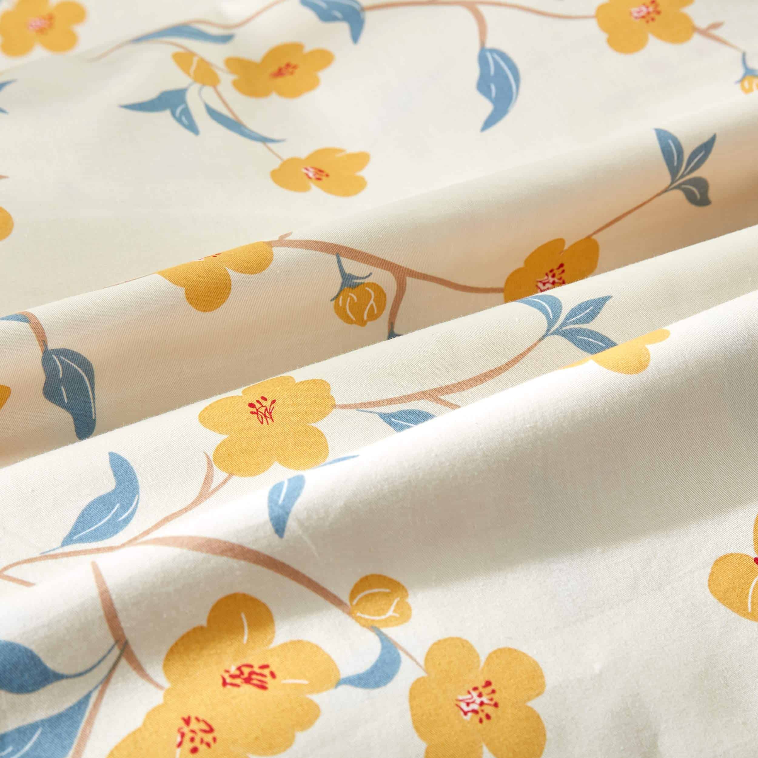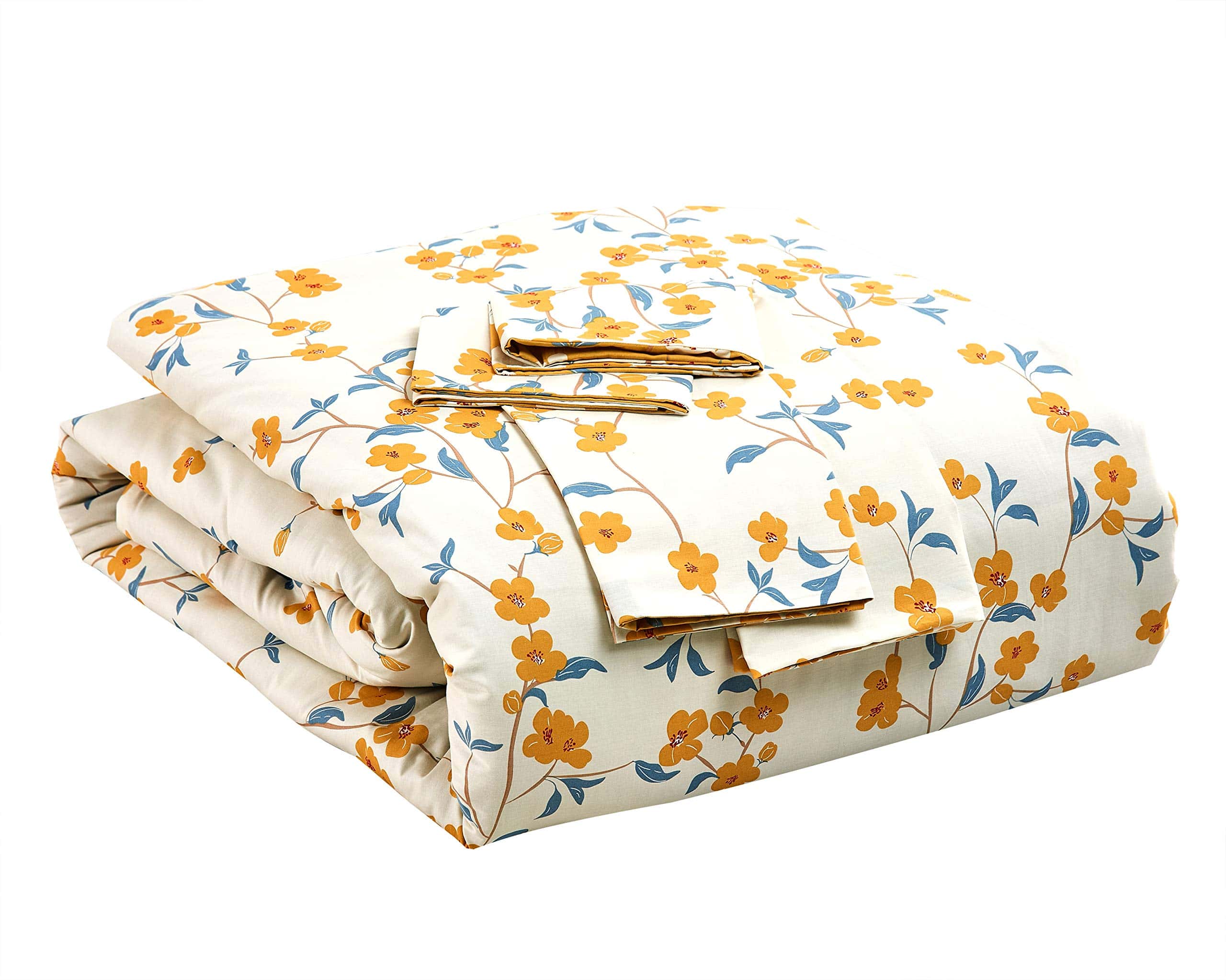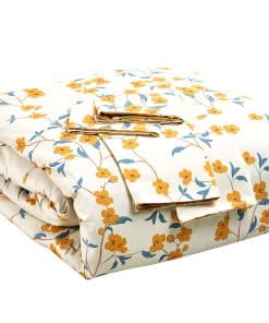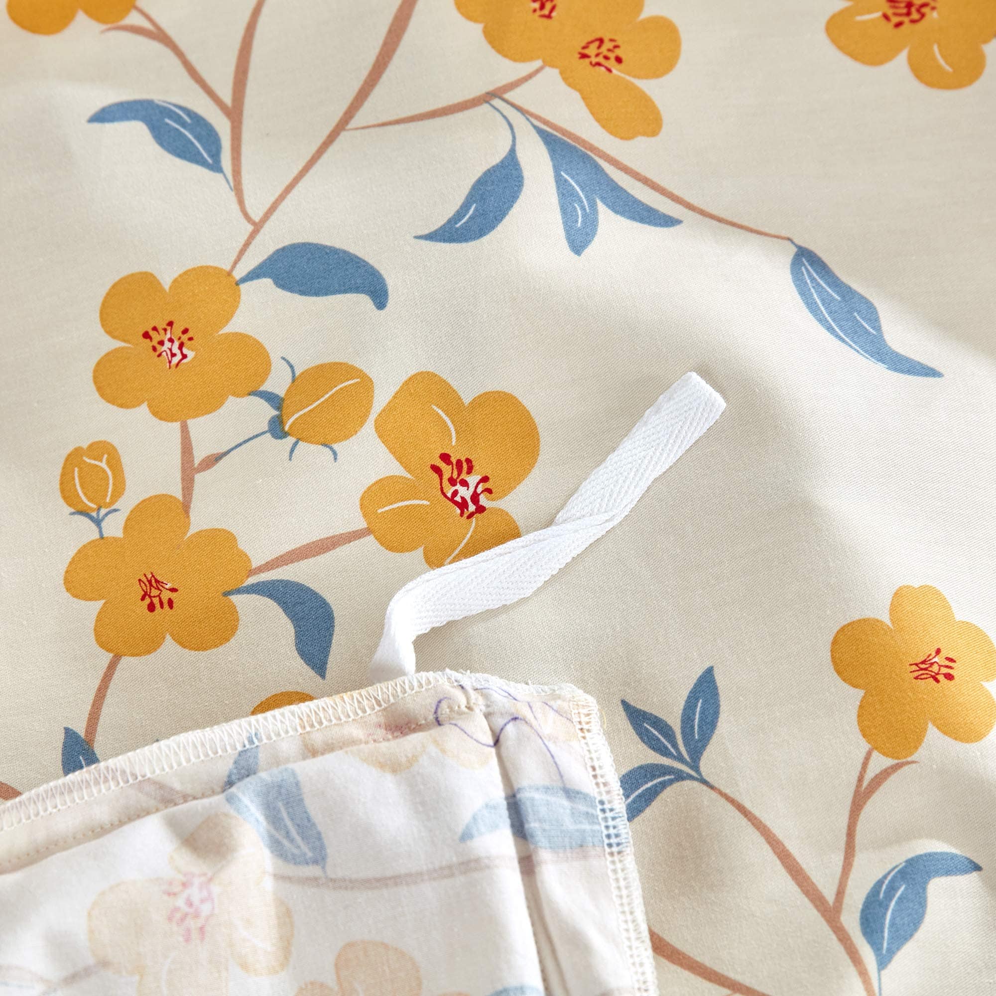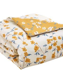 El Juego de Funda Nórdica 100% Algodón de 3 Piezas garantiza suavidad, lisura y transpirabilidad para una sensación de confort inigualable durante el descanso. Presta atención a que solo se incluye un juego de 3 piezas en este enlace, con una Funda Nórdica King Size de 92 (Largo) x 107 (Ancho) pulgadas y 2 fundas de almohada de 20 x 36 pulgadas. La Funda Nórdica cuenta con lazos en las cuatro esquinas y cierre con cremallera para asegurar que el inserto permanezca en su lugar. Además, es lavable a máquina, se puede secar y es resistente a la decoloración. El diseño presenta un fondo marfil con flores silvestres amarillas que añaden un toque de frescura y estilo a la habitación.