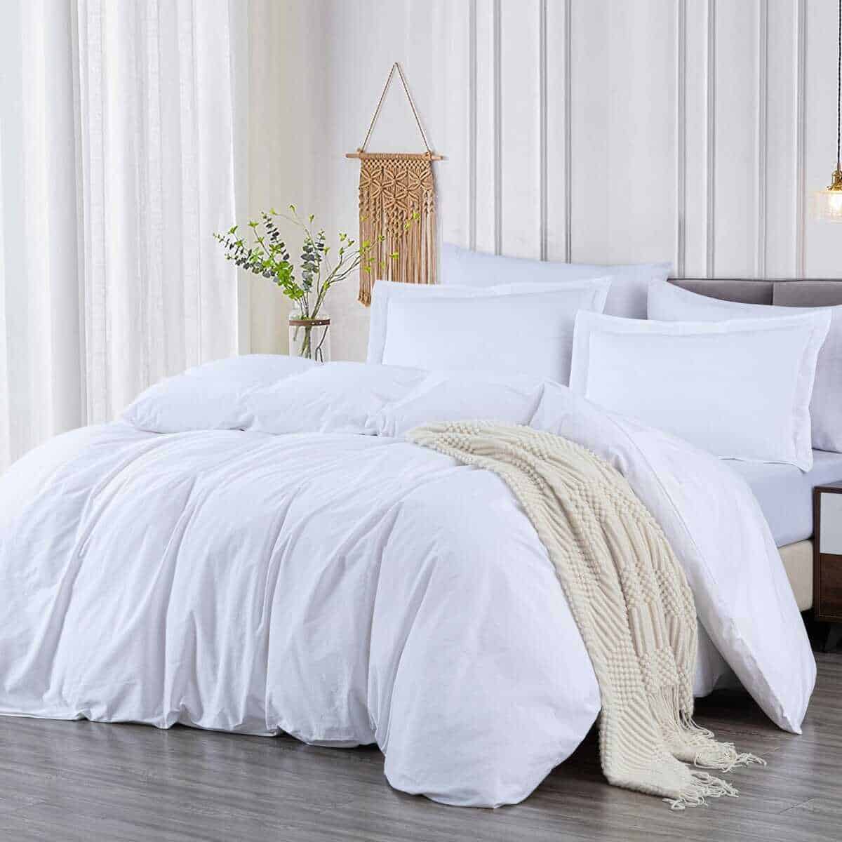 Juego de Funda Nórdica 100% Algodón Blanco Sólido Chezmoi