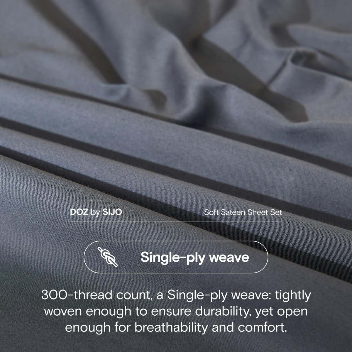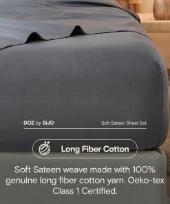 DOZ by SIJO es un juego de fundas nórdicas de satén tejido con algodón OEKO-TEX. Cuenta con un tejido de un solo hilo de algodón genuino de fibra larga al 100%. Nuestro tejido de 300 hilos es perfecto para sábanas de satén, está tejido de manera muy apretada para asegurar una durabilidad premium mientras se asegura de que las sábanas sean extremadamente transpirables y frescas al tacto para brindar un buen y fresco sueño. Las fundas nórdicas de algodón tejidas de satén de Doz by SIJO cuentan con la certificación Oeko Tex 100 Clase 1 con los requisitos más estrictos que son para la ropa de bebé. Nuestras sábanas de algodón están hechas sin toxinas en cada paso, puede dormir tranquilamente sabiendo que el 100% de nuestras sábanas están libres de productos químicos dañinos, pesticidas y organismos modificados genéticamente. Nuestra funda nórdica tiene 8 bucles en las esquinas y los laterales en lugar de los tradicionales 4 bucles. Selle su edredón fácilmente con nuestros hermosos botones de cáscara de coco. Tamaño Full/Queen 90″x90″. Rey/Cal King 106″x90″. La sensación suave del satén en las sábanas y las propiedades transpirables del algodón mantendrán la frescura incluso en noches más cálidas. Uno de los beneficios de las sábanas de satén, además de la suavidad, es que son menos abrasivas. Esto las convierte en una excelente opción para los durmientes con piel fácilmente irritada.
