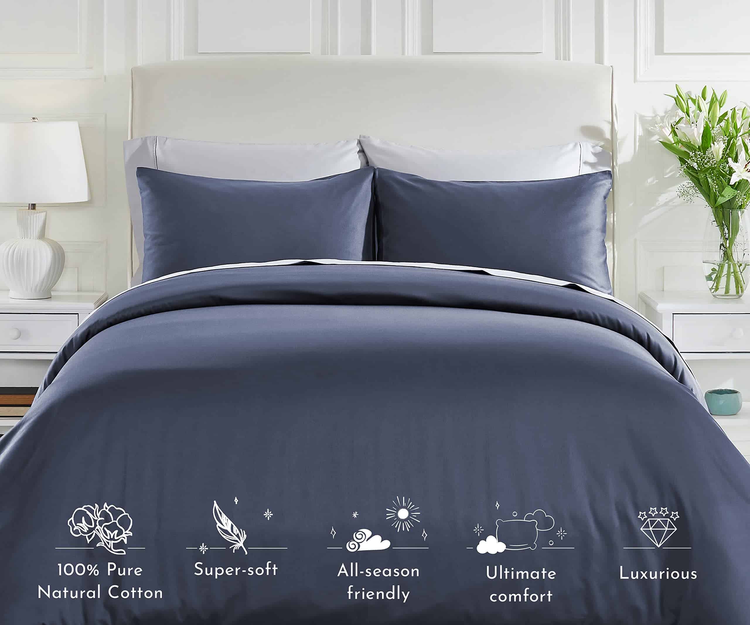 1. DESPIÉRTATE RENOVADO Y REFRESCADO: Experimenta la diferencia en comodidad y calidad con nuestro lujoso juego de funda nórdica tamaño oversized king de 400 hilos 100% algodón satinado. Siente la suavidad natural y fresca del tejido contra tu piel. Di adiós a las noches calurosas y sudorosas y dale la bienvenida a una noche de sueño tranquila y reparadora. 2. ¡MIDE ANTES DE COMPRAR, POR FAVOR!: Nuestro juego de funda nórdica tamaño oversized king de 3 piezas contiene 1 funda nórdica (120″ W x 98″ L) y 2 fundas de almohada (para almohadas king de 21″ W x 37″ L) con costuras de alta calidad para una durabilidad duradera. Por favor, mide el tamaño de tu edredón para evaluar si nuestra funda nórdica es compatible. 3. FÁCIL DE LAVAR Y USAR: Protege tu edredón o relleno nórdico sin la molestia de lavar el edredón entero. Nuestro juego de funda nórdica es fácil de lavar y secar en casa con la configuración regular. La funda nórdica tiene aberturas con botones y lazos internos para mantener el edredón en su lugar. 4. EL LOOK: Imagina que tu cama parece la habitación de un hotel de lujo con nuestro juego de funda nórdica tamaño king tamaño oversized. Nuestra tela de algodón satinado tiene un hermoso brillo y casi no tiene arrugas, lo que le da un aspecto fresco y elegante. También tenemos sábanas a juego en la misma tela y color. 5. NUESTRO COMPROMISO: En 2022 y 2023, donamos más de 22,000 piezas de ropa de cama a organizaciones benéficas locales en los EE. UU. No utilizamos plástico en nuestro embalaje y nuestras fundas nórdicas se producen en nuestra fábrica familiar en la India. Cada pieza se inspecciona para garantizar la calidad y prometemos reemplazar cualquier producto defectuoso sin costo alguno para ti. Compra con confianza con nuestra política de devolución de 30 días, incluso si has lavado o usado nuestro producto.