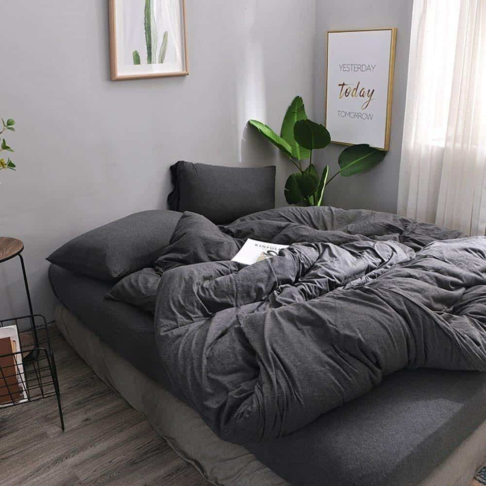 1. El juego de funda nórdica tamaño Queen incluye: 1 funda nórdica Queen (90×90 pulgadas), 2 fundas de almohada Queen (20×28 pulgadas). 2. Ultra suave y amigable con la piel: el material de algodón de punto jersey se siente como tu playera de algodón favorita y garantiza un sueño de alta calidad, brindándote suavidad y comodidad interminables toda la noche. 3. Diseño Considerado: La funda nórdica tiene un cierre de cremallera oculto en la parte inferior, lo suficientemente largo para que puedas colocar fácilmente el inserto de la funda nórdica. Cada esquina tiene lazos para asegurar el inserto. El estilo simple y los diversos colores brillantes pueden ser una buena idea de regalo para adolescentes, niños, niñas, hombres o mujeres. 4. Fácil cuidado y limpieza: Lavar a máquina en agua fría y secar a baja temperatura. No usar blanqueador. El juego de ropa de cama es resistente a las arrugas y no necesita planchado. 5. Garantía de satisfacción al 100%: Si tienes alguna necesidad o pregunta, háznoslo saber y te daremos una solución satisfactoria de manera oportuna.