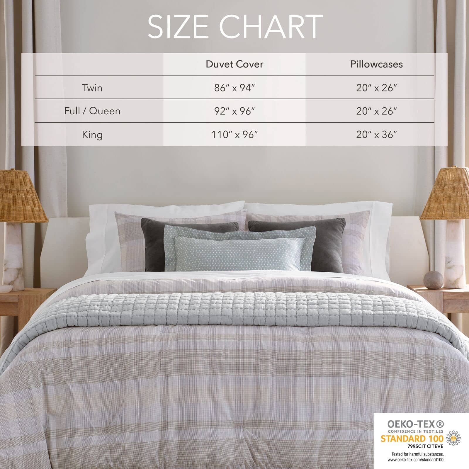 ¡Compra el look! Estos son los artículos adicionales mostrados en la foto de estilo de vida; Almohada decorativa de terciopelo de algodón en carbón (B0BQP9H243); Almohada decorativa de bloque impreso en aguamarina pálida (B0BSVVTK4V); Juego de edredón sólido en gris claro (B0BPJXNKRH); Utilice el número entre paréntesis para ir a la lista en nuestra tienda; Desplácese hacia abajo para obtener más información. Detalles finos: Set de 2 incluye 1 funda nórdica y 1 funda de almohada estándar/queen a juego; Esta funda nórdica de 100% algodón, con 250 hilos, es increíblemente suave y duradera; El set es ligero y tejido de forma ajustada para que sea fresco al tacto – perfecto para los que duermen calientes; Las cintas en las esquinas evitan que la ropa de cama se mueva; Cierres de botones ocultos que no se enganchan en mantas o ropa; Las fundas de almohada cuentan con un cierre de superposición central de 4 pulgadas que mantiene las almohadas guardadas; La funda nórdica y las fundas de almohada exhiben un acabado impecable y elegante. Crea tu historia única: La ropa de cama es una forma sencilla de añadir un toque personal a tu espacio; La paleta de colores neutros crea la base de la cama perfecta; Combina esta funda nórdica con sábanas, un edredón, mantas y almohadas de la colección Nate Home para un look elegante; Integrar tus patrones, telas e impresiones favoritas crea textura y añade un toque elegante a tu dormitorio; Explora toda la colección en nuestra Tienda de Marcas Nate Home. Material + Cuidado: Fabricado a partir de fibras de algodón premium al 100% con una textura impresa; 250 hilos; CUIDADO: Lavable a máquina; Sigue las instrucciones de la etiqueta de cuidado para obtener los mejores resultados; CERTIFICADO OEKO-TEX: Este producto está certificado según el estándar OEKO-TEX 100; Todos los textiles fabricados en una fábrica certificada por OEKO-TEX 100 cumplen con normas de seguridad y medioambientales y están libres de sustancias o químicos dañinos. Medidas: Funda Nórdica 86″ x 94″; Cada Funda de Almohada Estándar/Queen 20″ x 26″; Puede haber variaciones ligeras de color entre la imagen del producto y el producto debido a diferencias en la configuración del monitor y el dispositivo. Nos esforzamos por garantizar que nuestras imágenes muestren el producto de la forma más precisa posible.