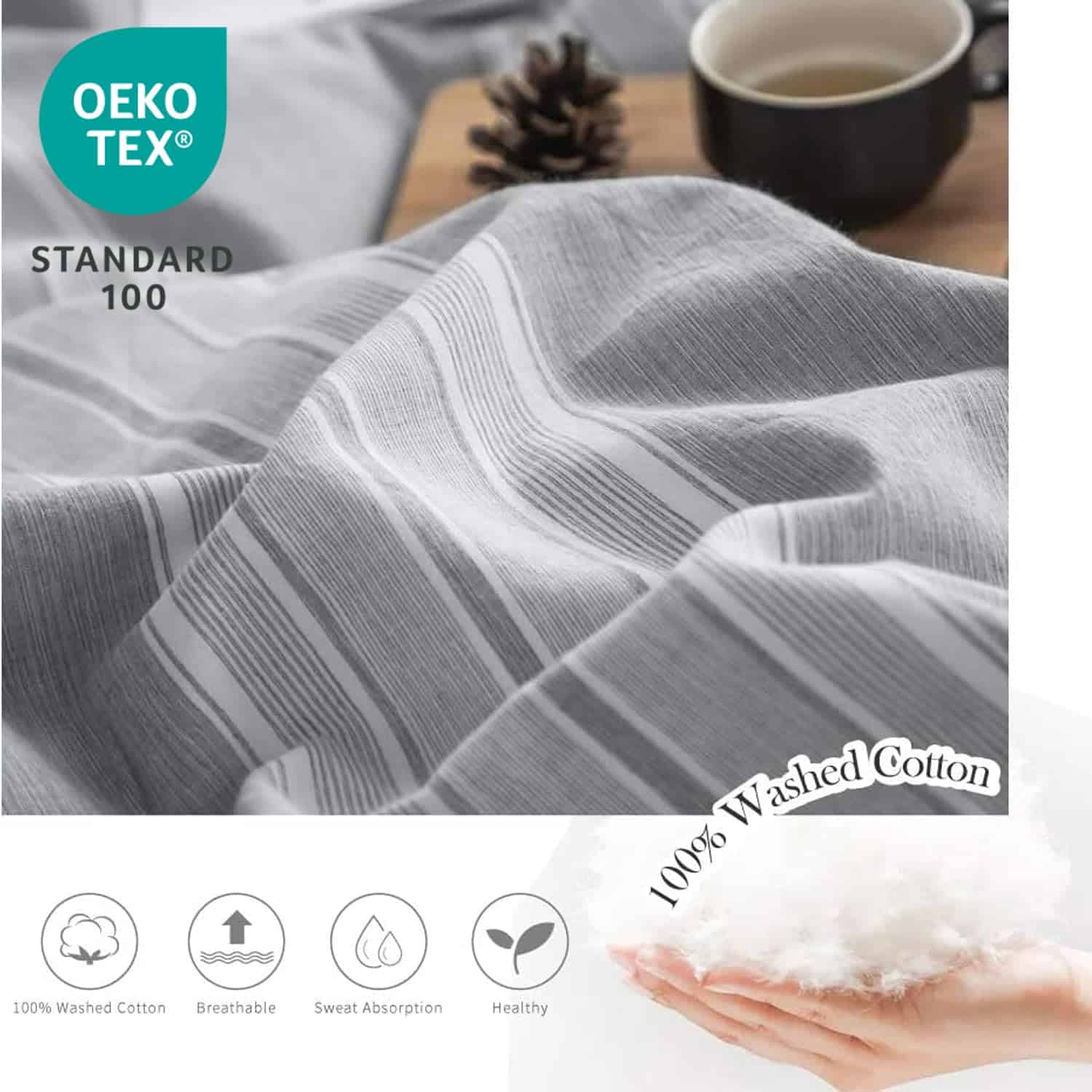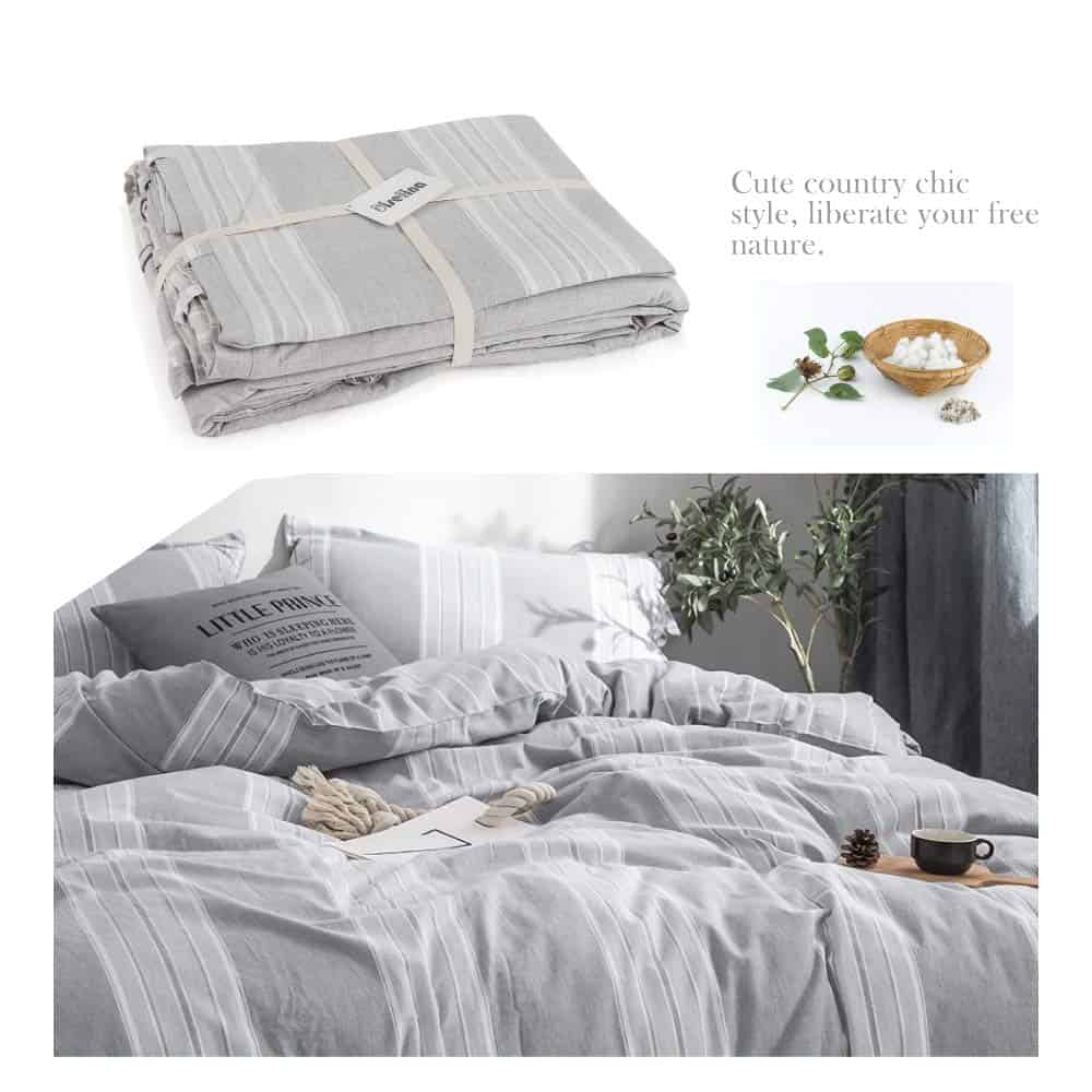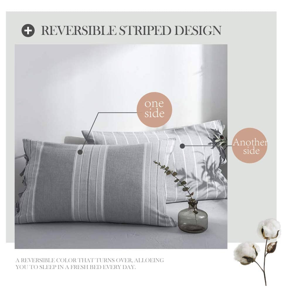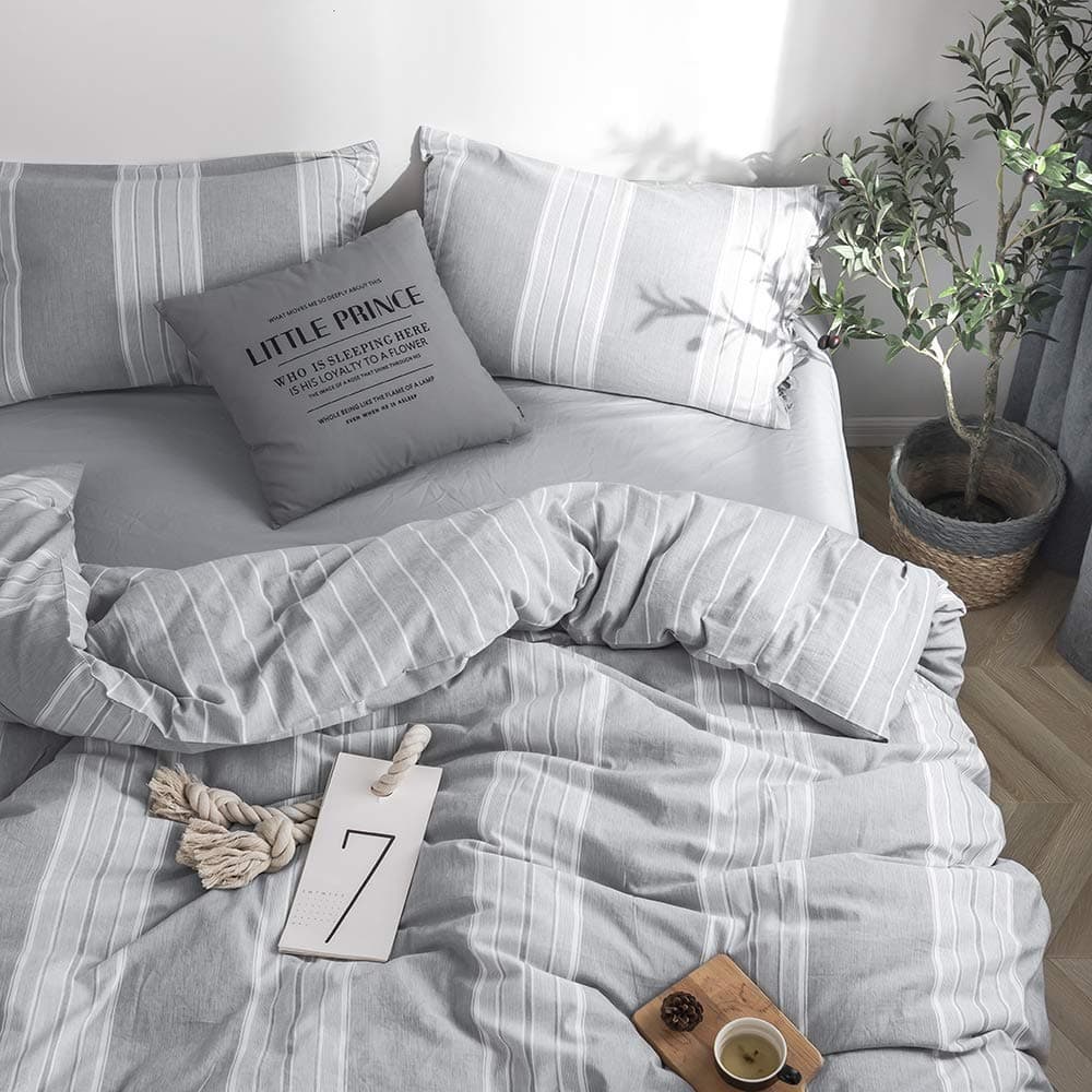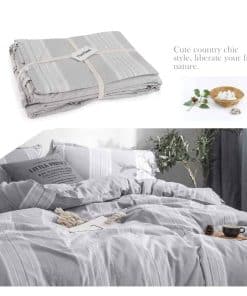 Juego de Funda Nórdica a Rayas 3 piezas 100% -Gris