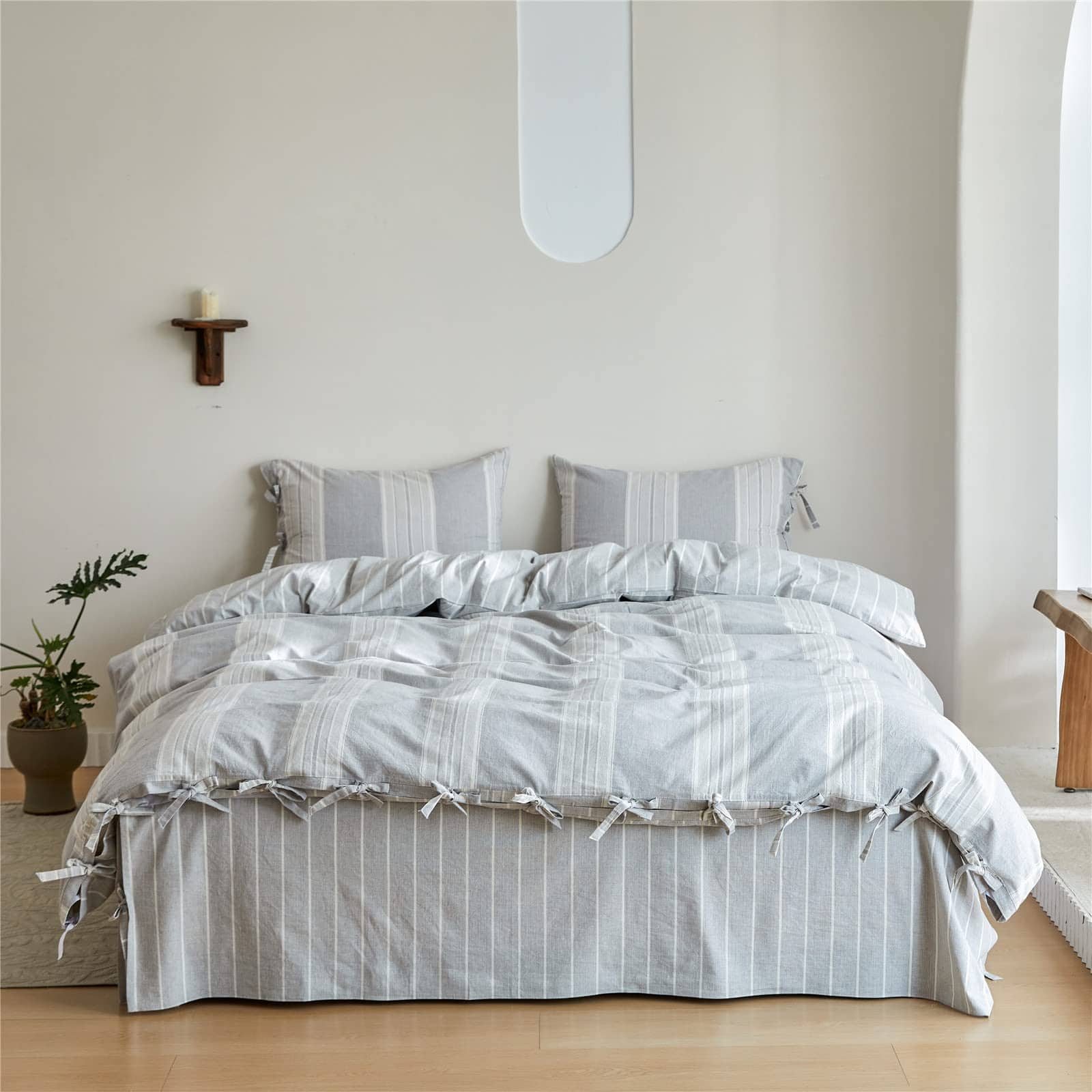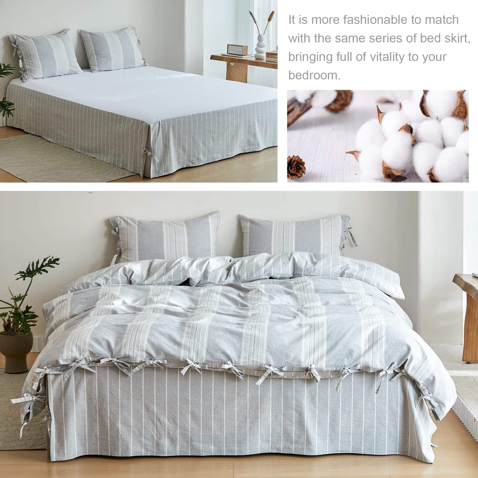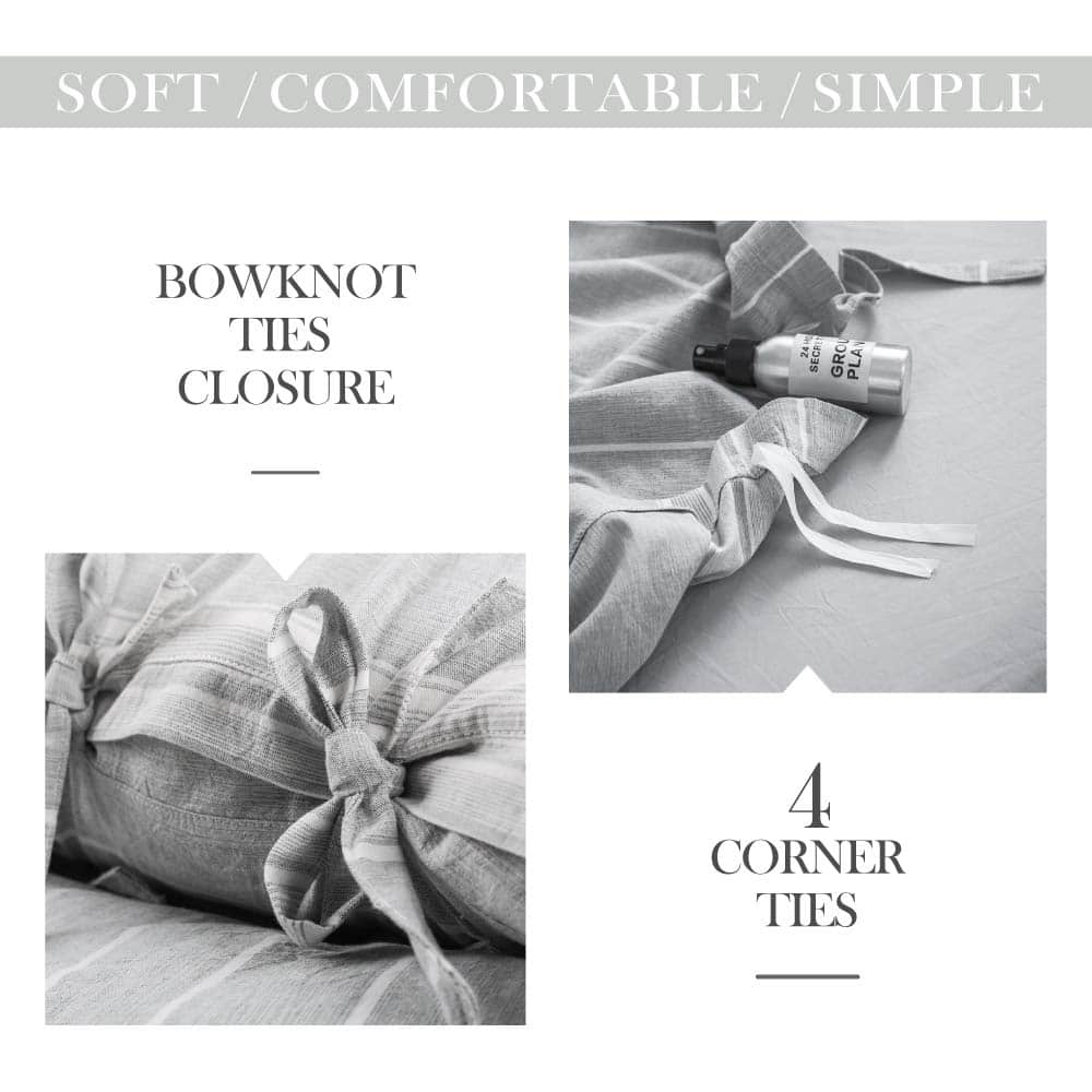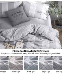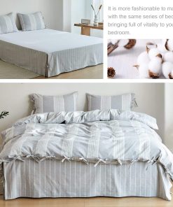 La funda nórdica a rayas de algodón lavado es la elección perfecta para tu dormitorio, con una textura suave y cómoda similar a la del lino. El conjunto de tamaño king incluye una funda nórdica y dos fundas de almohada de tamaño king, con un diseño de lazo de mariposa y un patrón de rayas de hilos teñidos que le brindan un toque de elegancia y estilo a tu cama. Certificado por OEKO-TEX STANDARD 100, garantizando que es seguro para tu salud y para el medio ambiente. Las esquinas internas con lazos mantienen tu colcha en su lugar y son fáciles de cuidar, lavables a máquina y se volverán más suaves con cada lavado. Este juego de funda nórdica es perfecto para cualquier ocasión, ya sea en tu apartamento, dormitorio universitario, habitación de niños o como regalo para tus seres queridos. ¡Completa tu conjunto con el faldón de cama de la misma serie para un look completo y elegante!