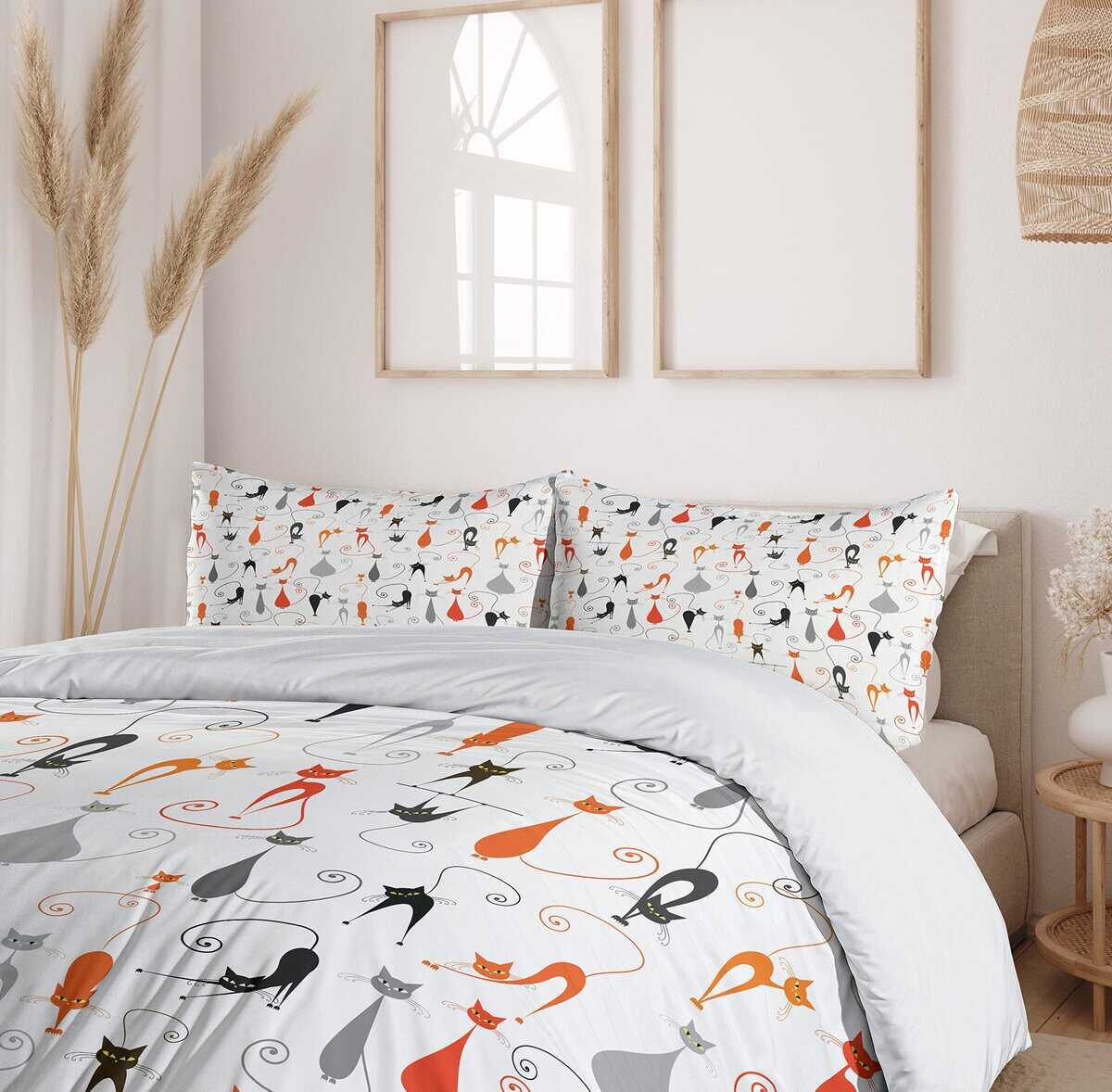 Juego de Funda Nórdica Ambesonne Cat, Gatos Coloridos en
