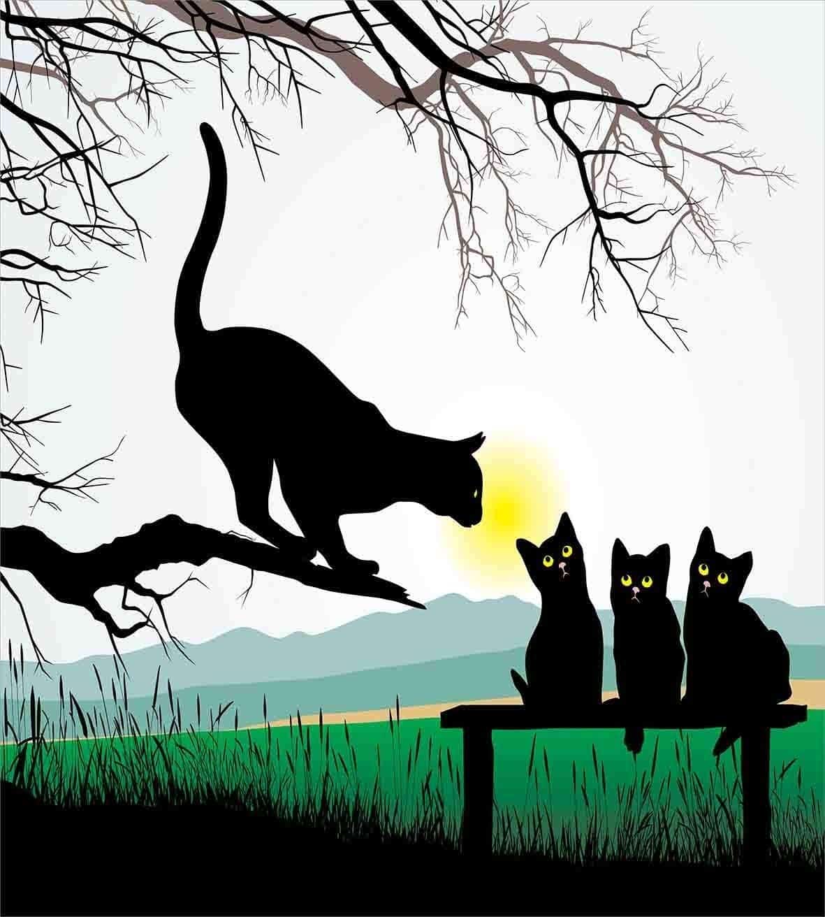Juego de funda nórdica Ambesonne Cat, Madre gato en rama de