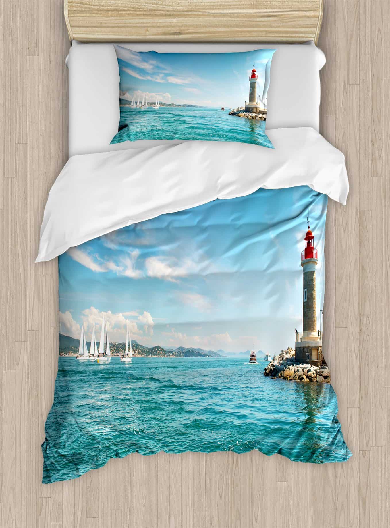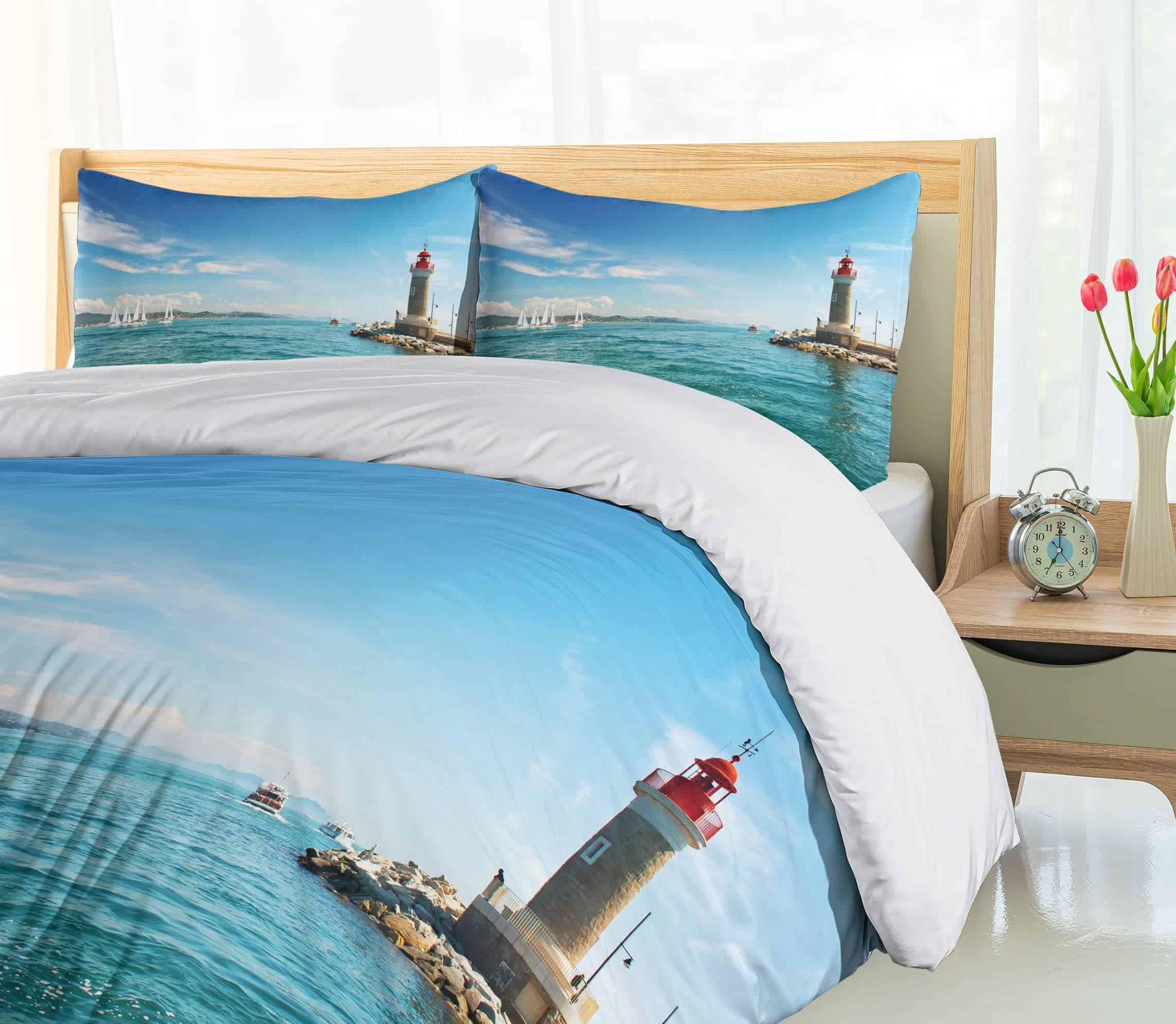 Juego de funda nórdica Ambesonne Faro, Día junto al mar