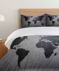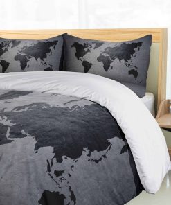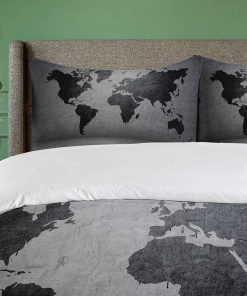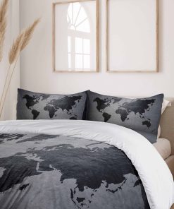 Juego de Funda Nórdica Ambesonne Gris Oscuro, Mapa Mundial
