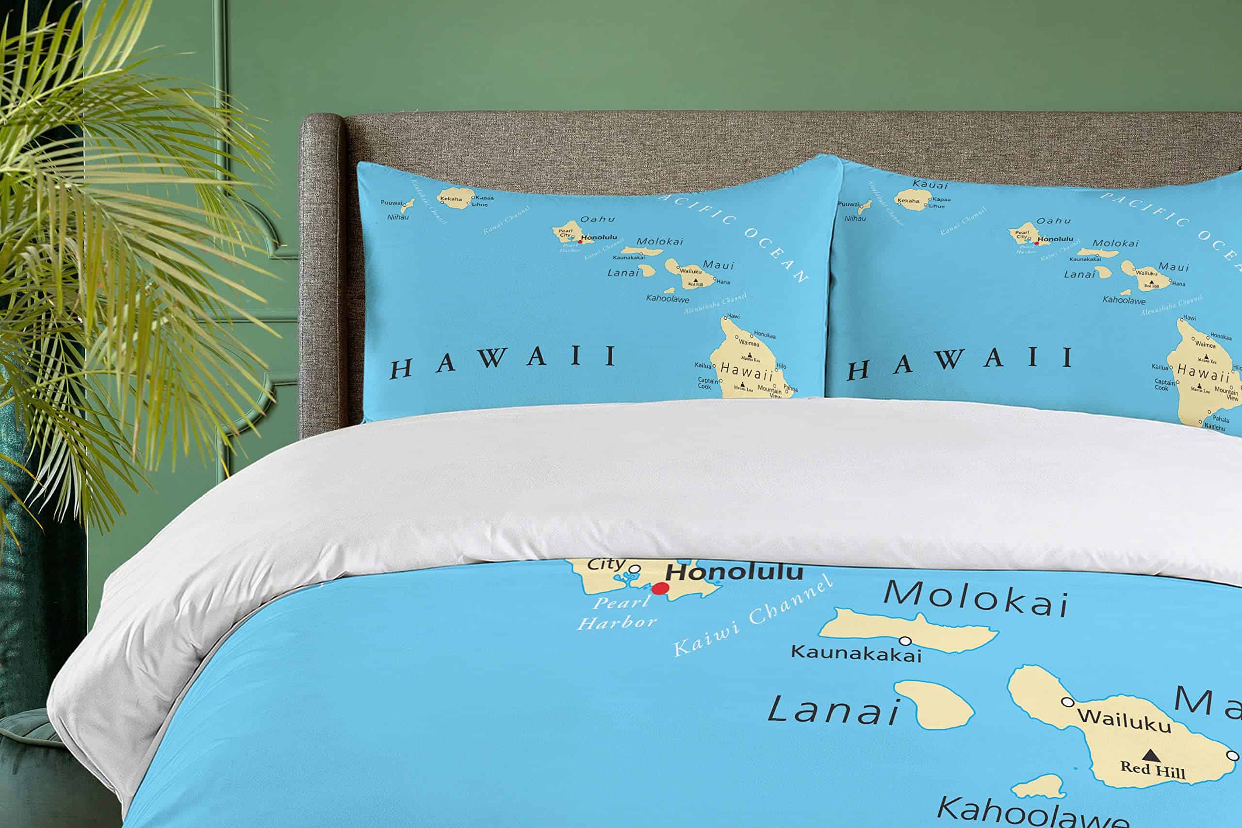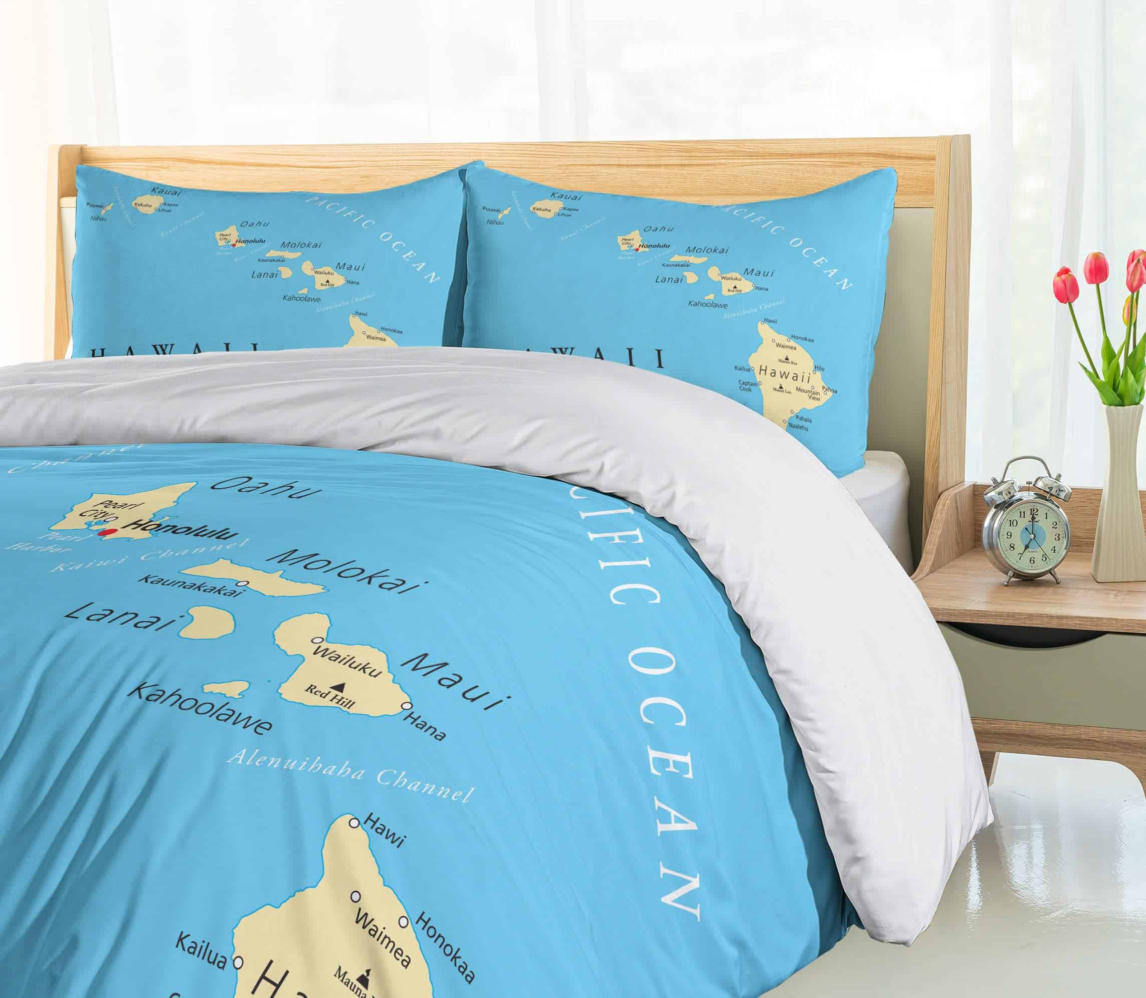 Juego de Funda Nórdica Ambesonne Hawaiana, Mapa de las