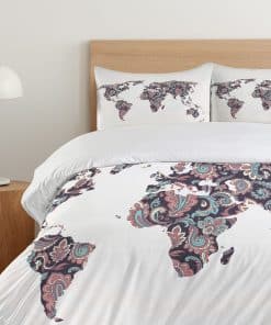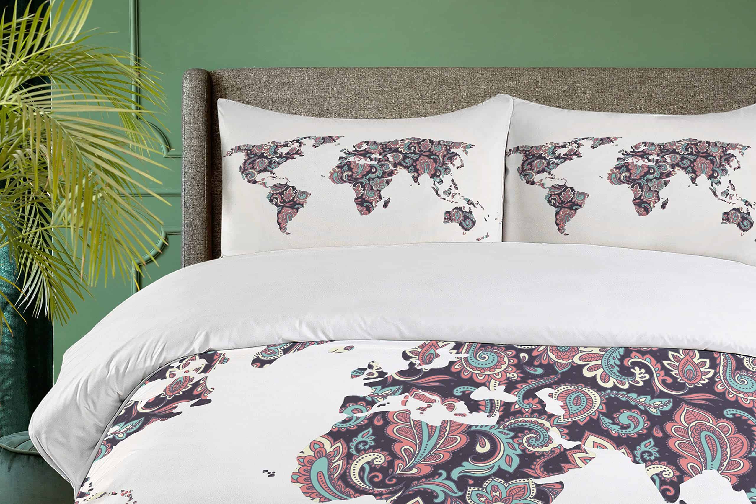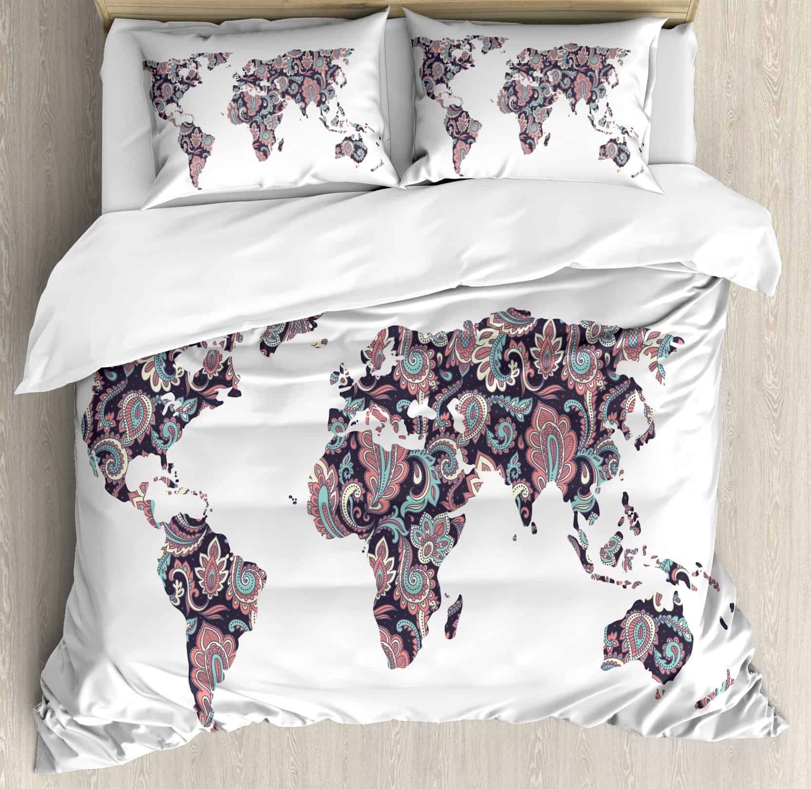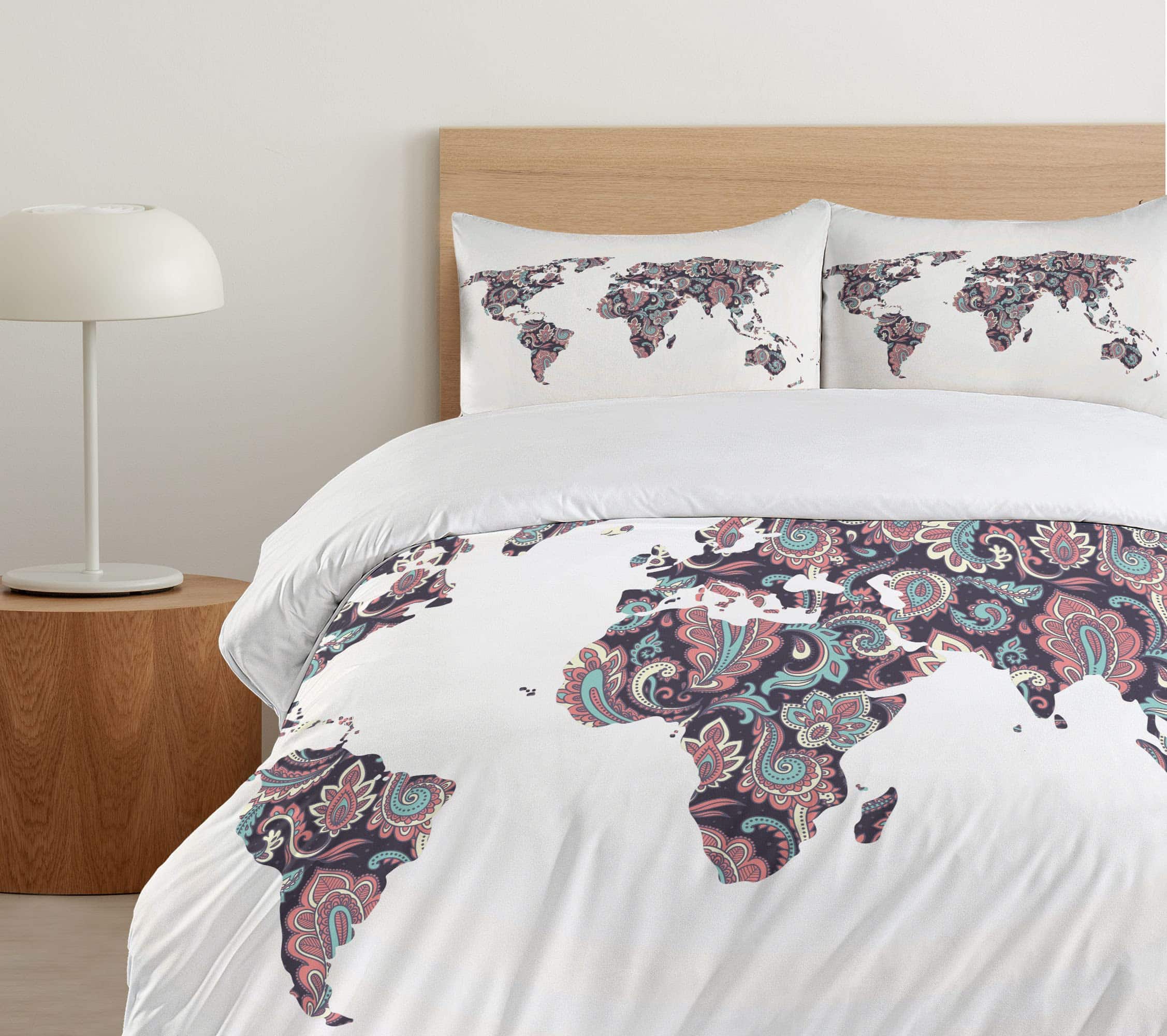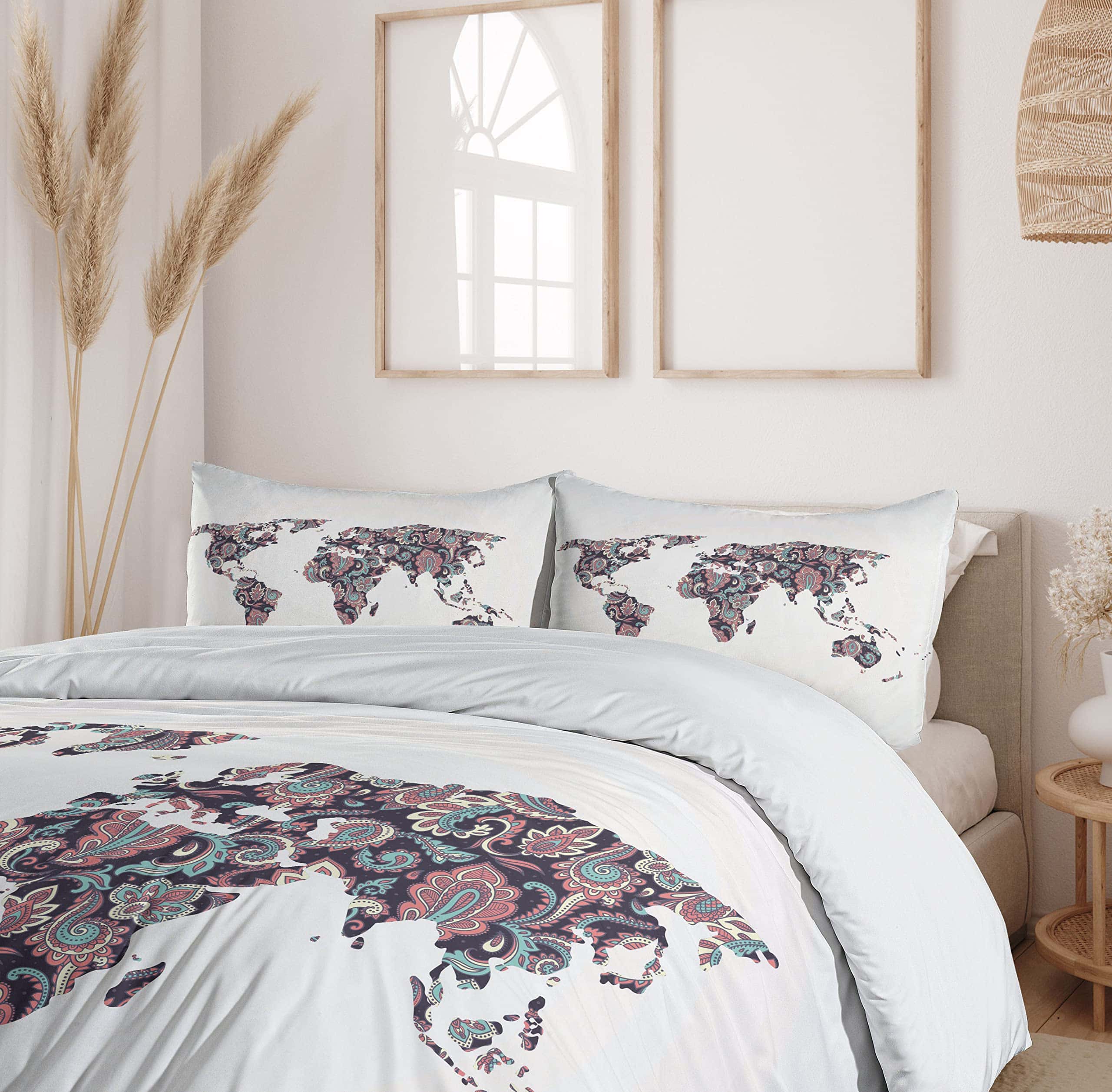 Juego de Funda Nórdica Ambesonne Mapa Mundial Floral, Hojas