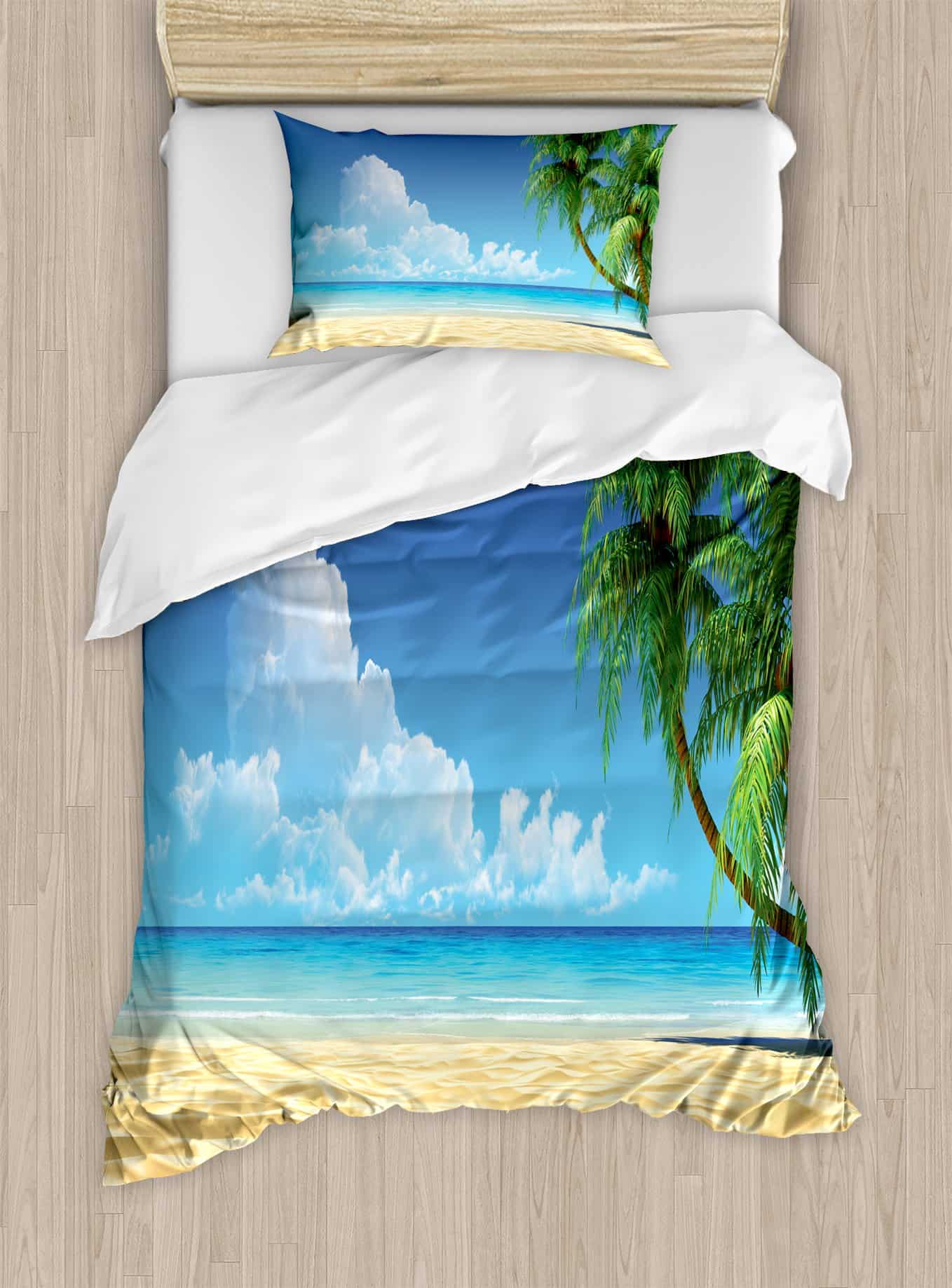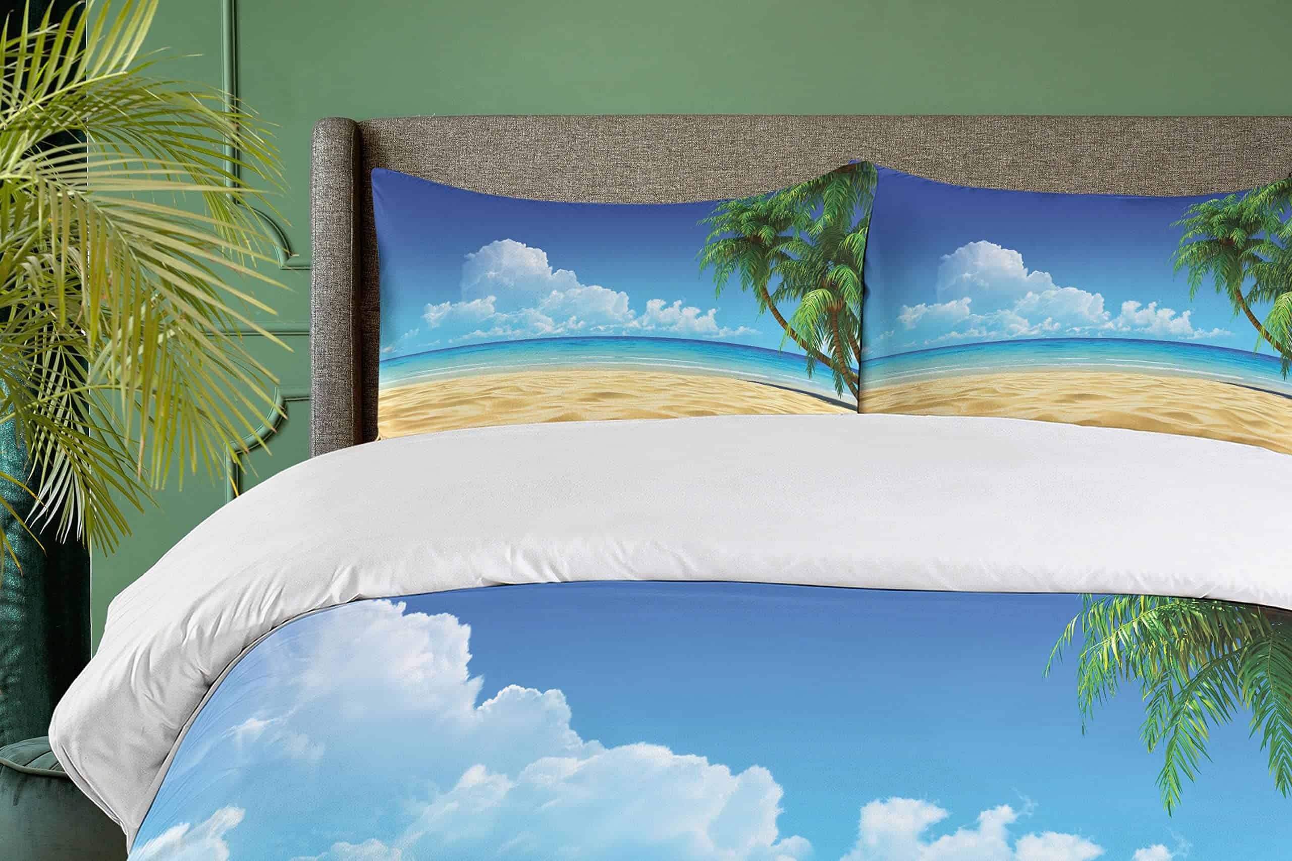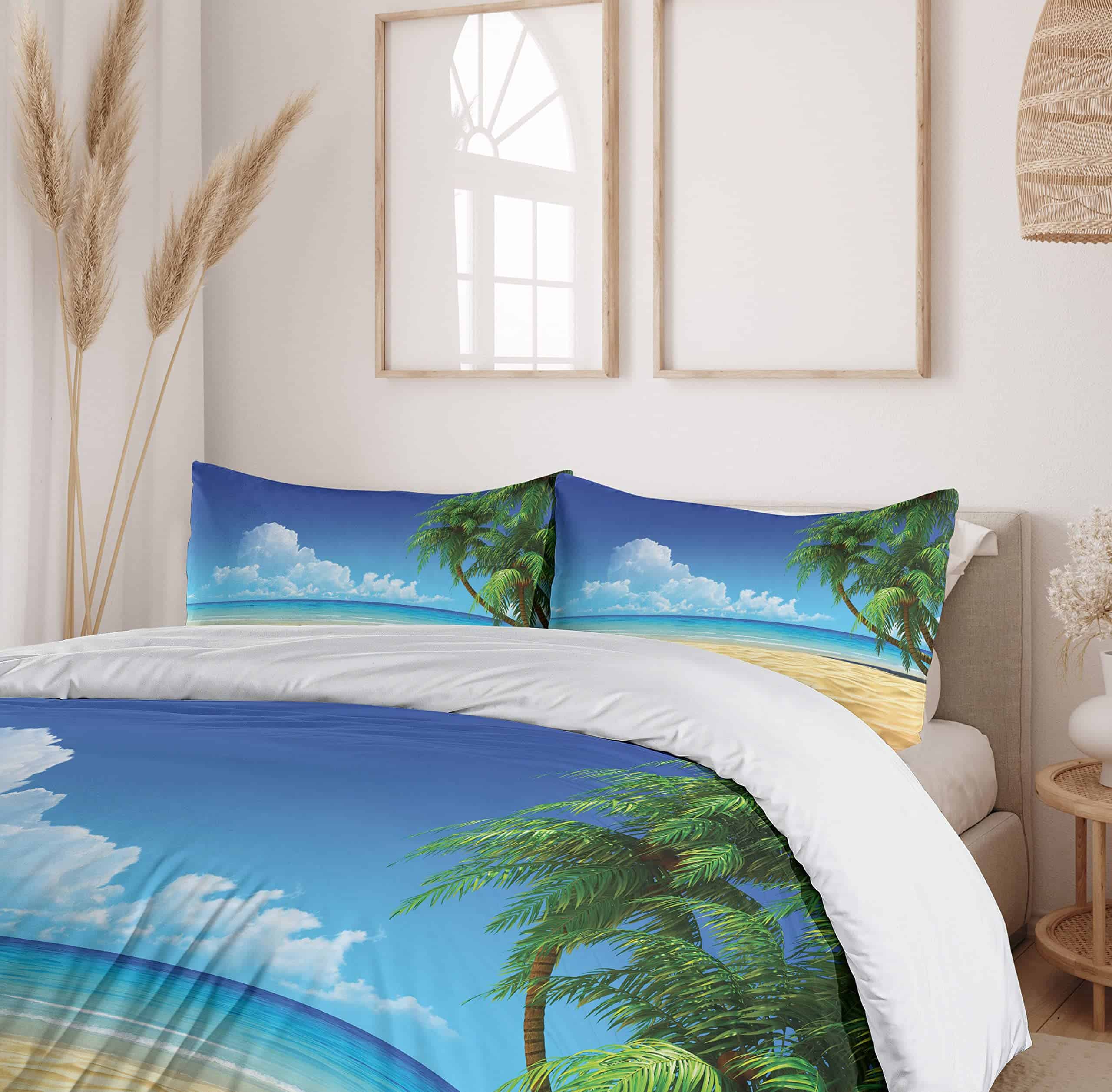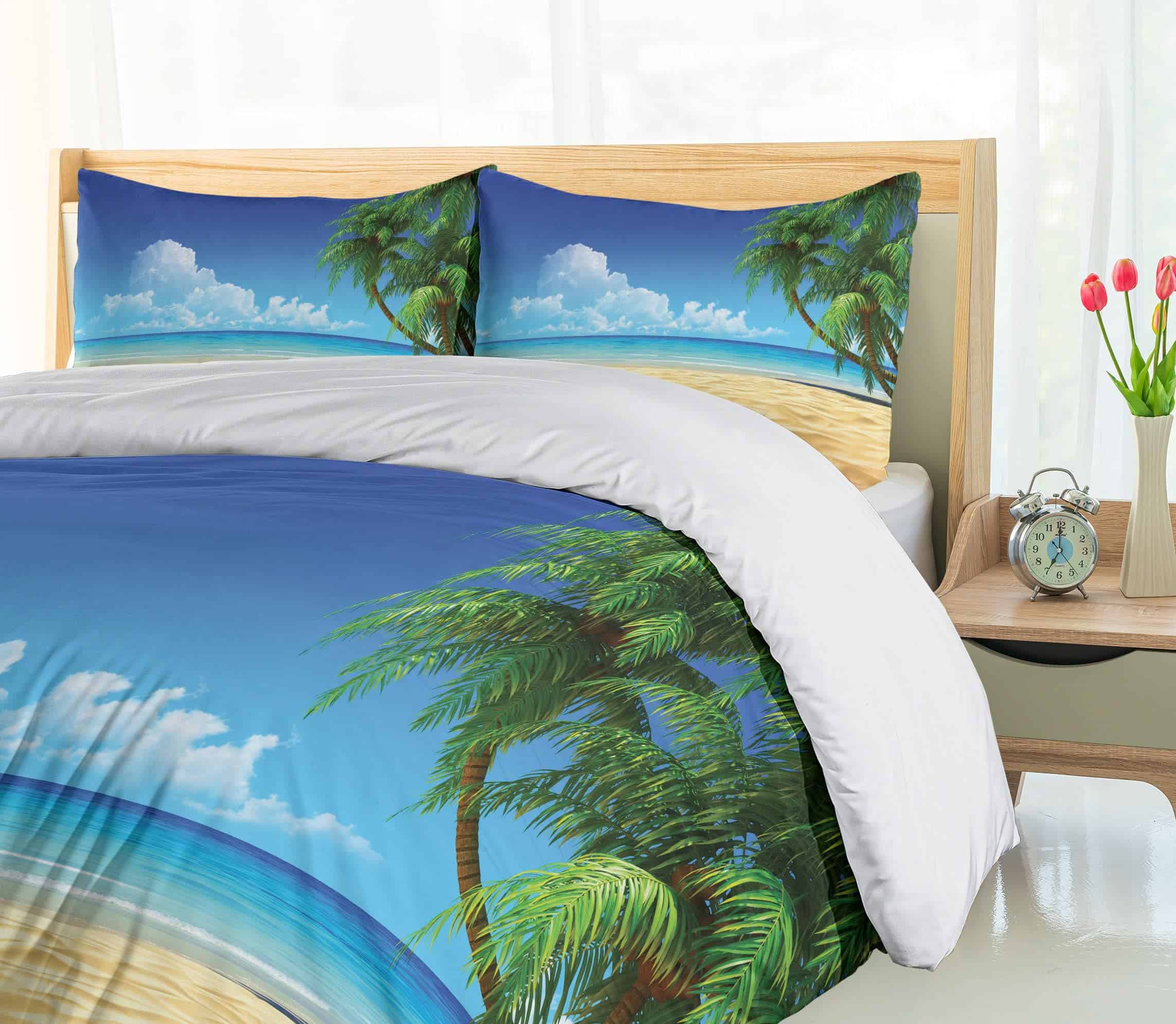 Juego de Funda Nórdica Ambesonne Ocean, Hojas de Palmera en